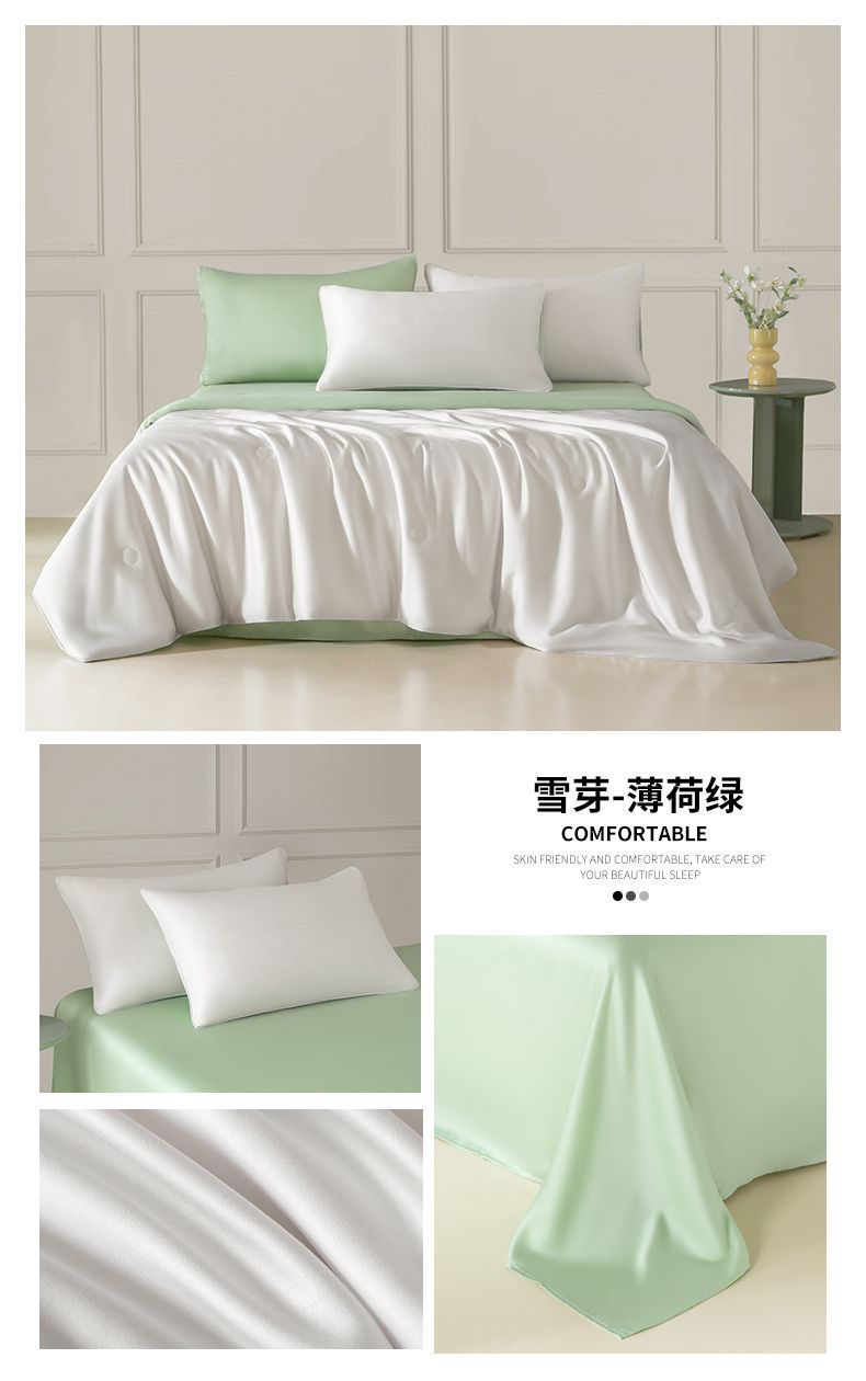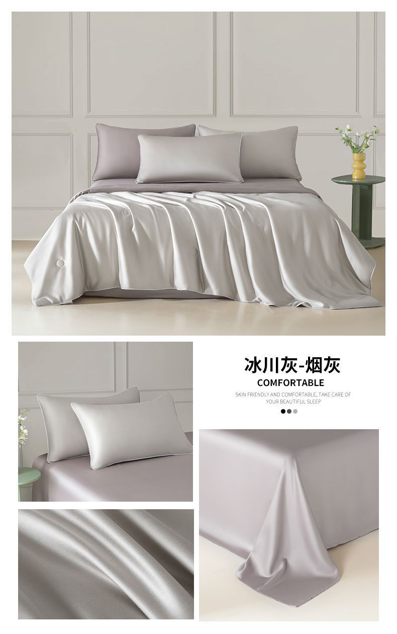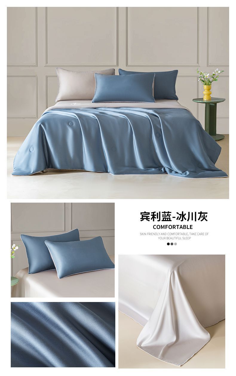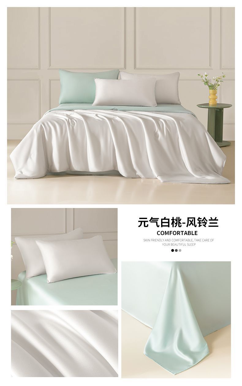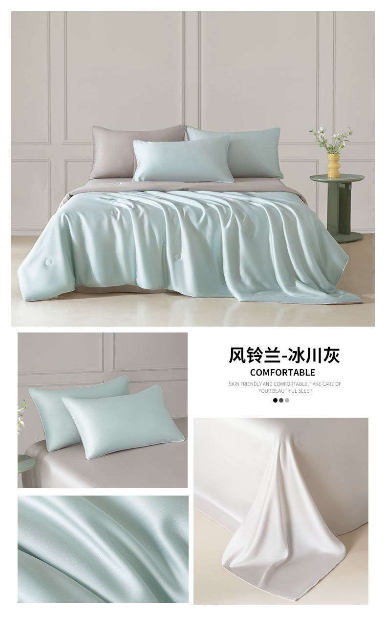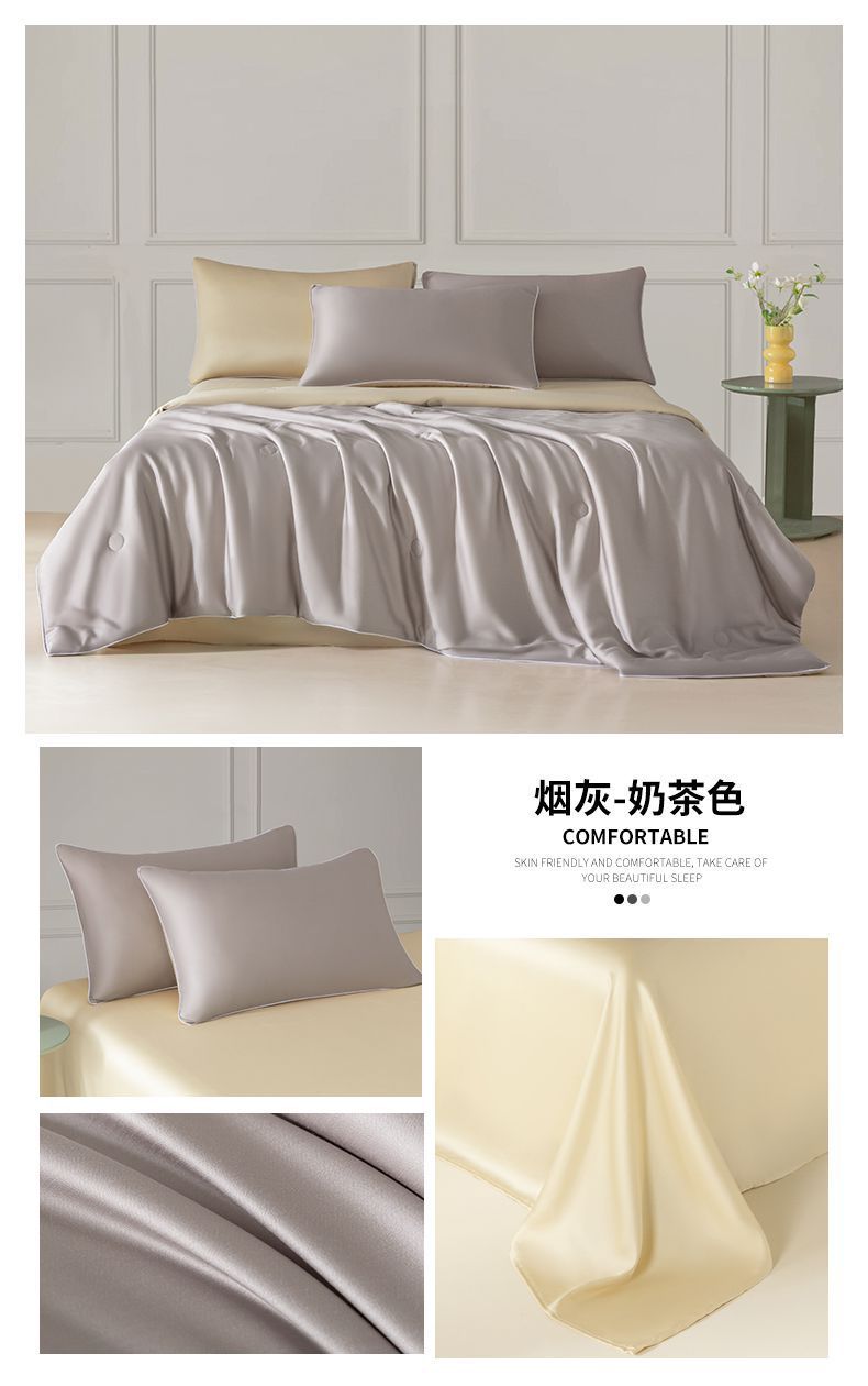 Летнее одеяло с кондиционером, летнее прохладное одеяло из мытого шелка, тонкое одеяло, одно прохладное летнее одеяло из ледяного шелка, комплект из трех или четырех предметов, можно стирать в машине.