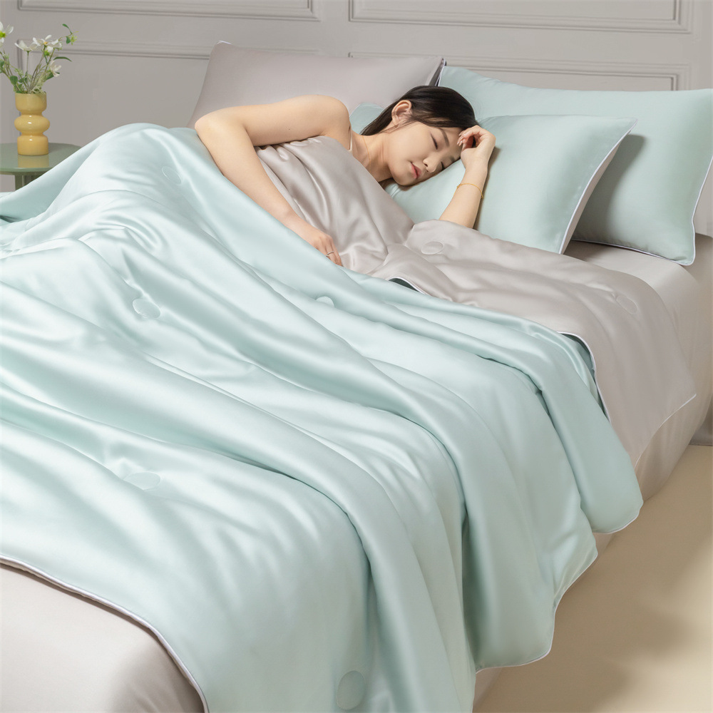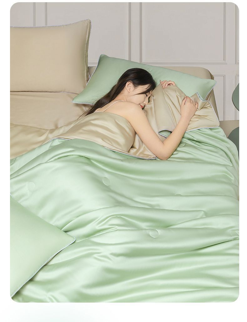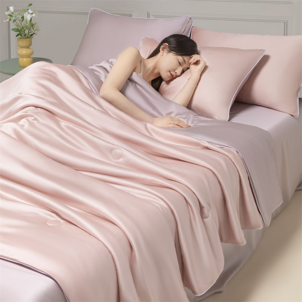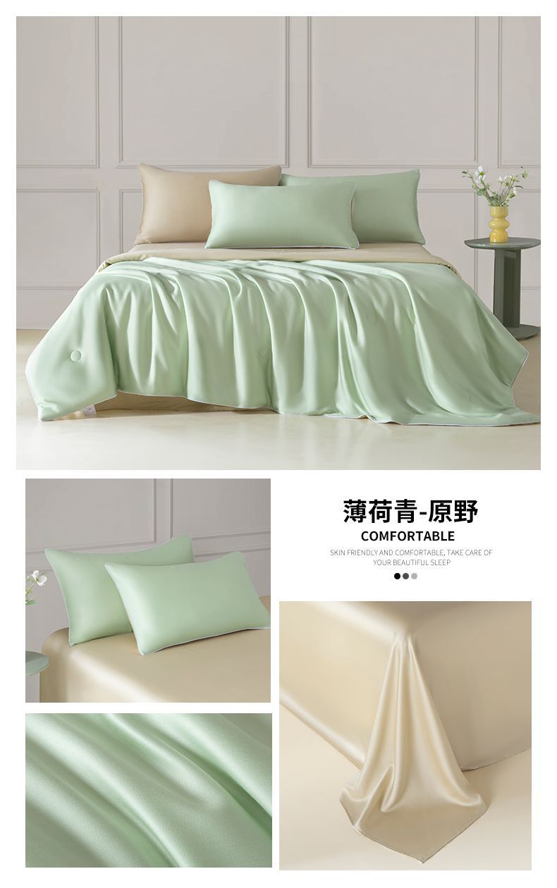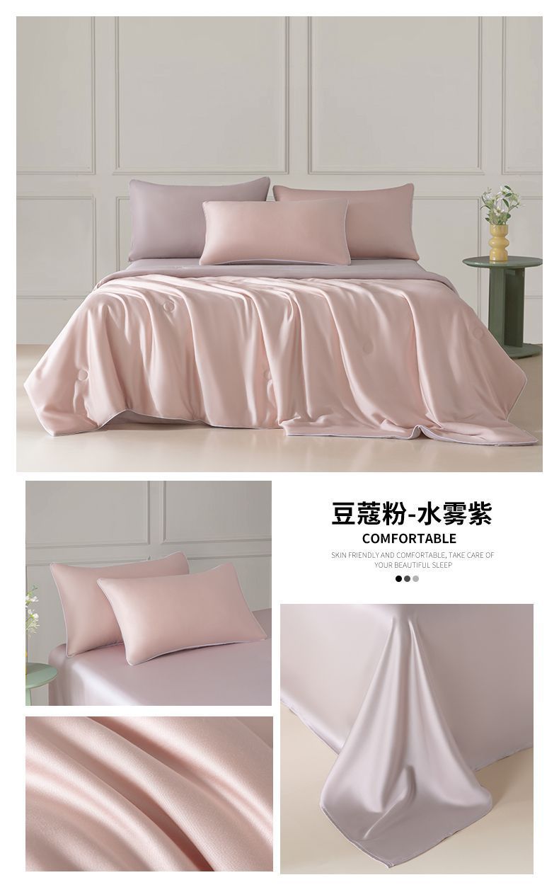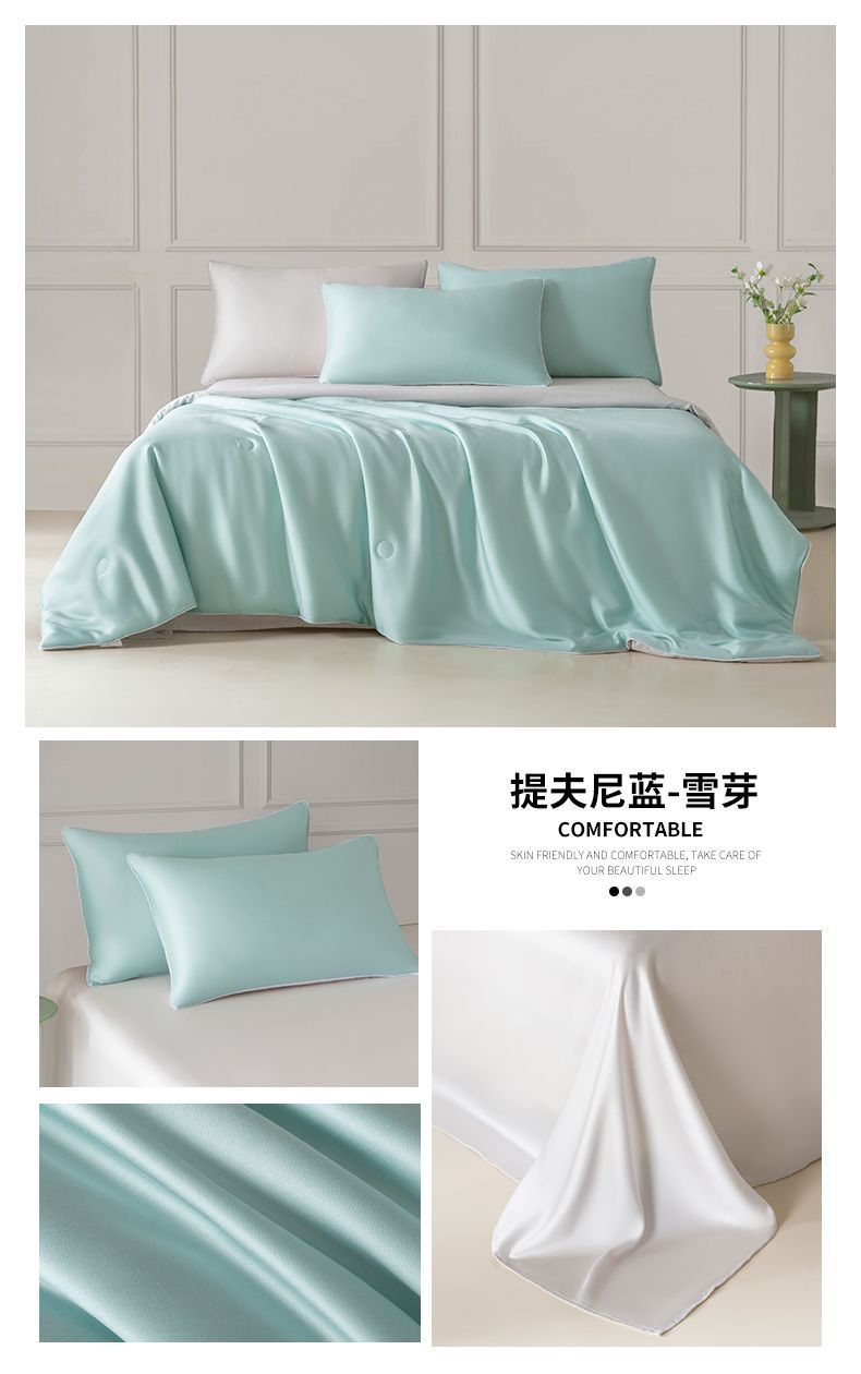 Летнее одеяло с кондиционером, летнее прохладное одеяло из мытого шелка, тонкое одеяло, одно прохладное летнее одеяло из ледяного шелка, комплект из трех или четырех предметов, можно стирать в машине.