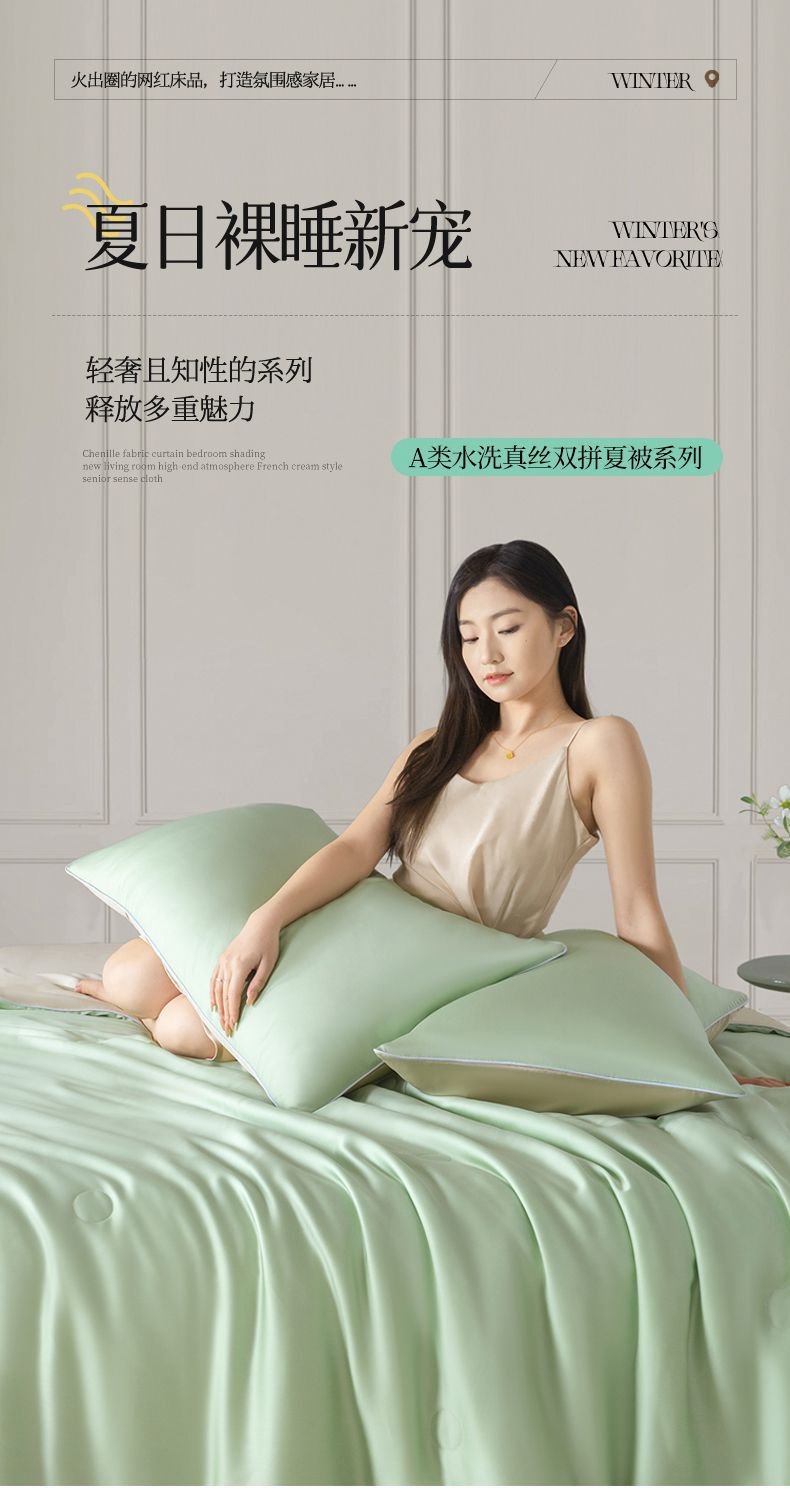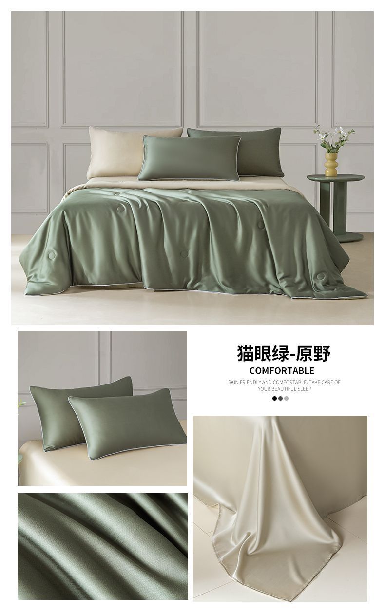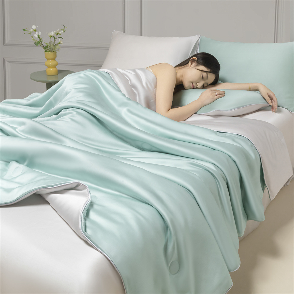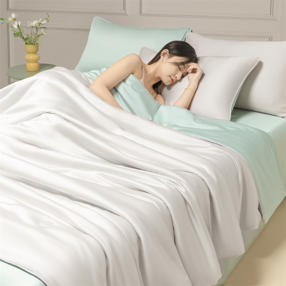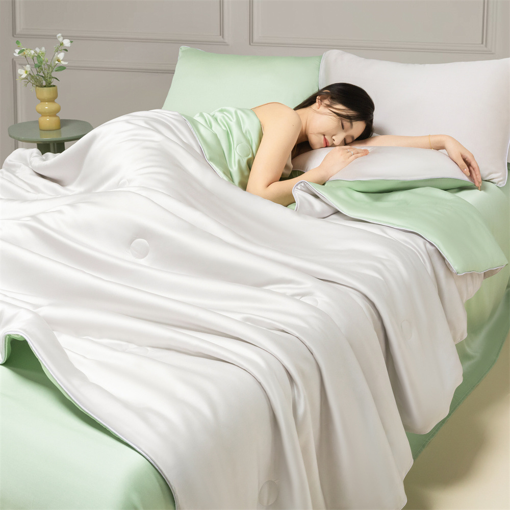 Летнее одеяло с кондиционером, летнее прохладное одеяло из мытого шелка, тонкое одеяло, одно прохладное летнее одеяло из ледяного шелка, комплект из трех или четырех предметов, можно стирать в машине.