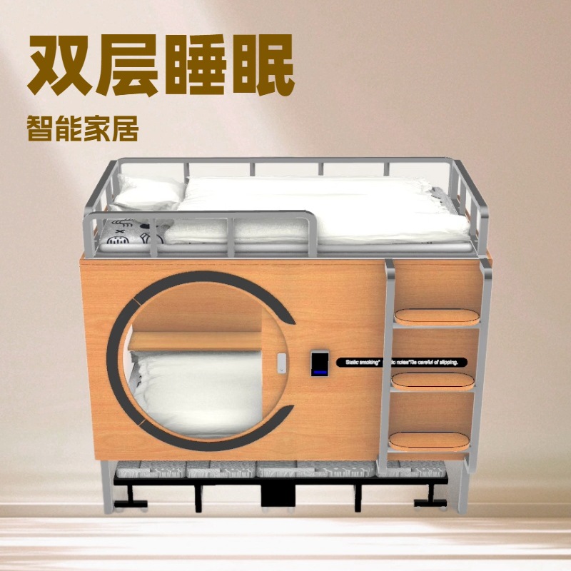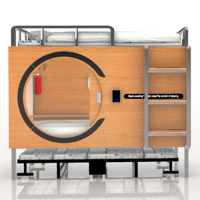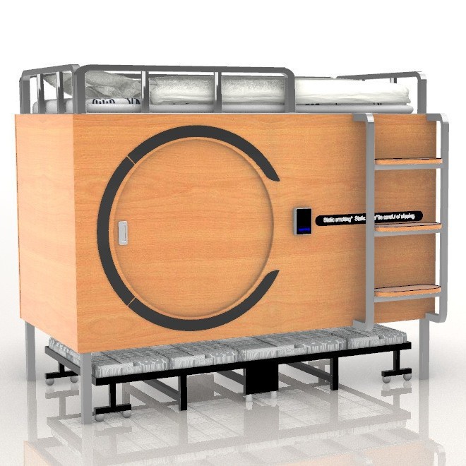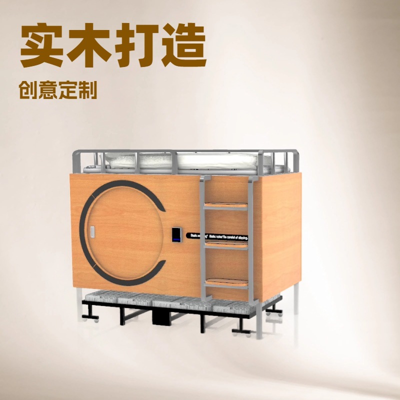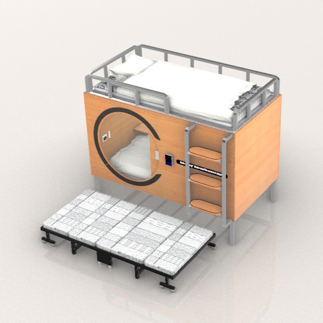 Деревянная космическая капсула может быть разобрана и собрана. Верхняя кровать представляет собой капсульную кровать, а нижняя — раскладной диван-кровать.