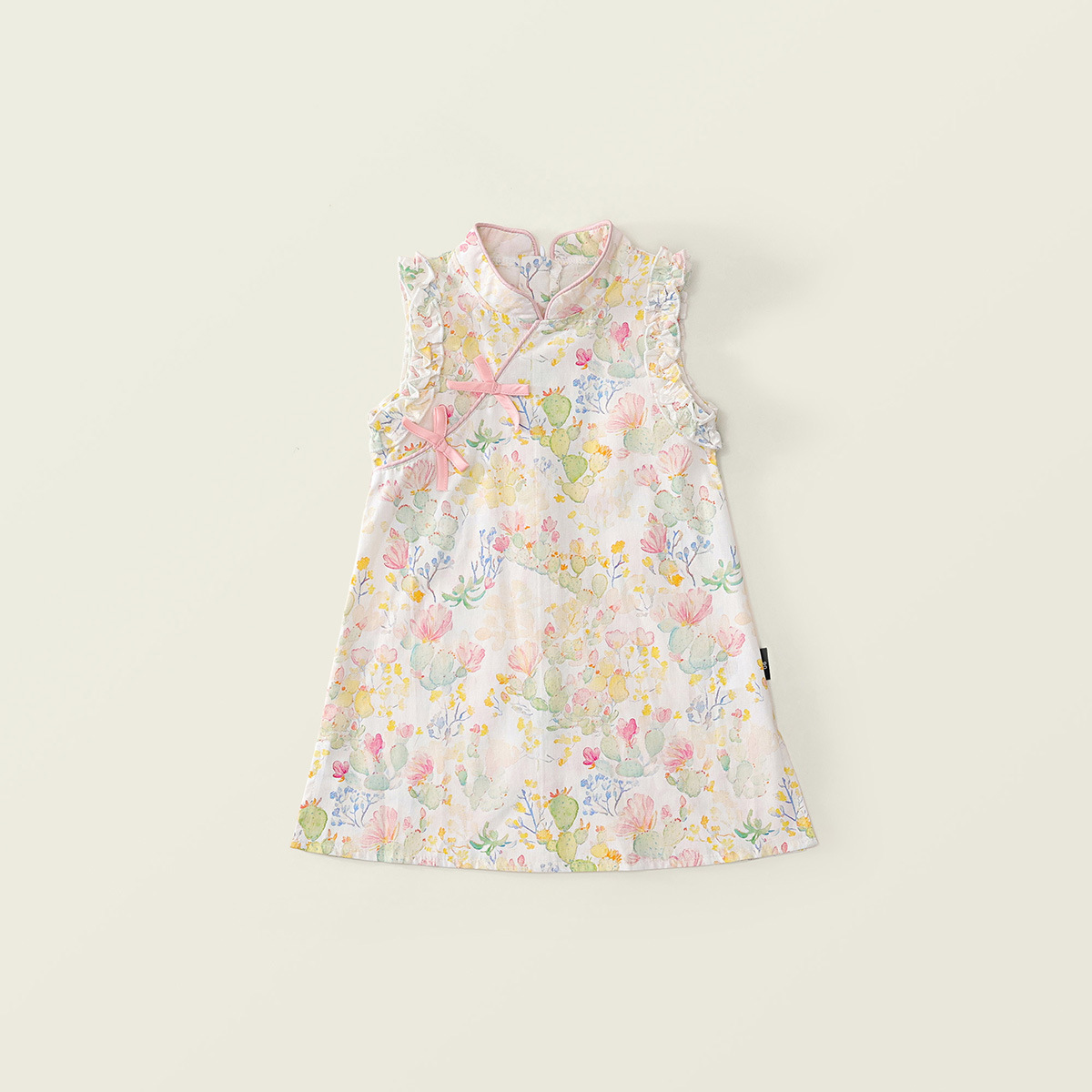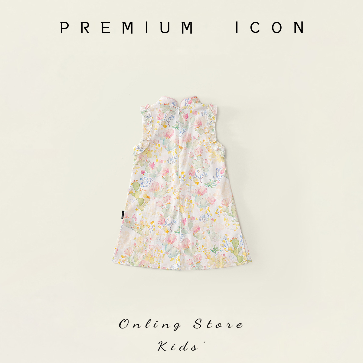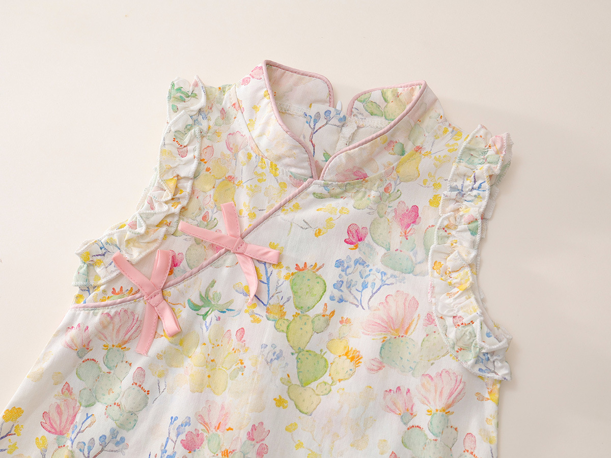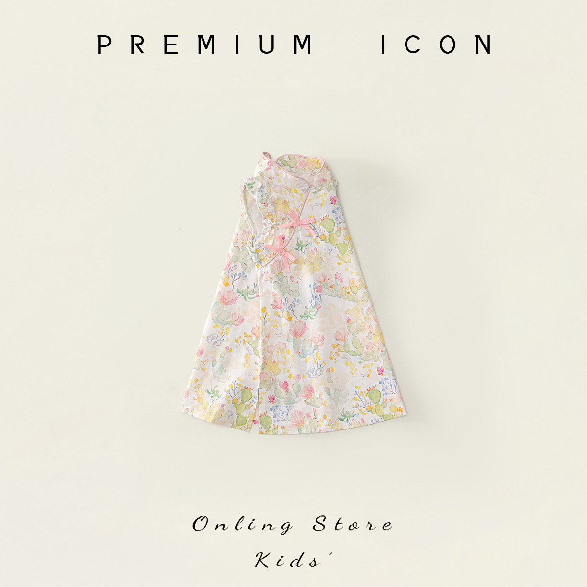 Летнее платье без рукавов с цветочным принтом для девочек, новинка 2025 года, детское тонкое платье в китайском стиле с принтом, дропшиппинг