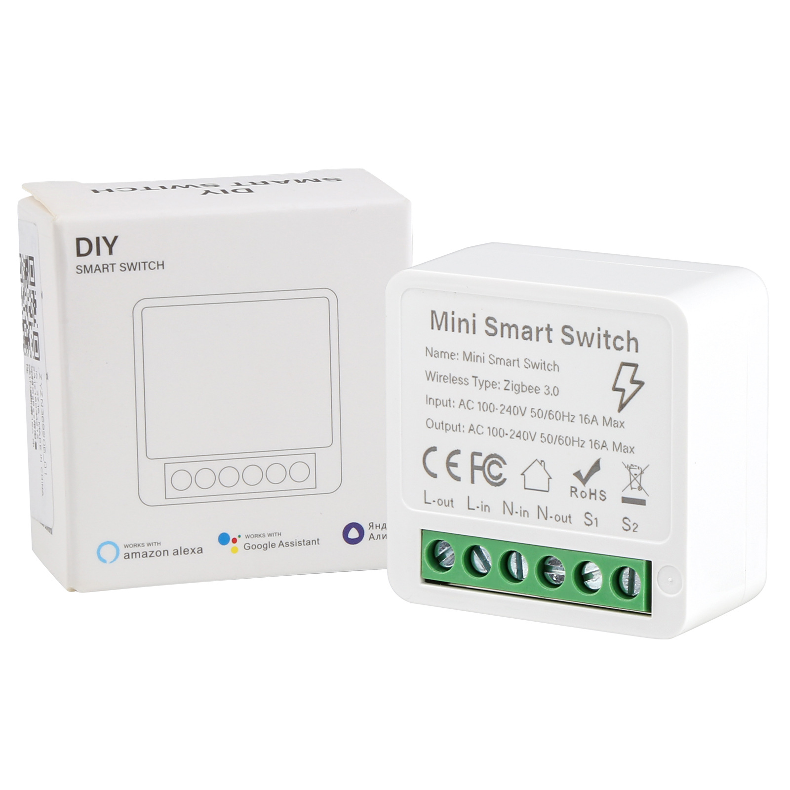 Умный выключатель eWelink Zigbee3.0, миниатюрный скрытый блок, с одиночным и двойным управлением, совместимый с голосовым управлением Alexa.