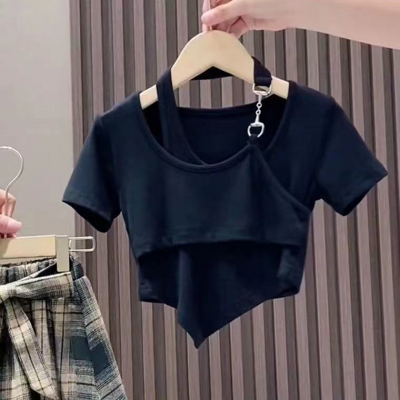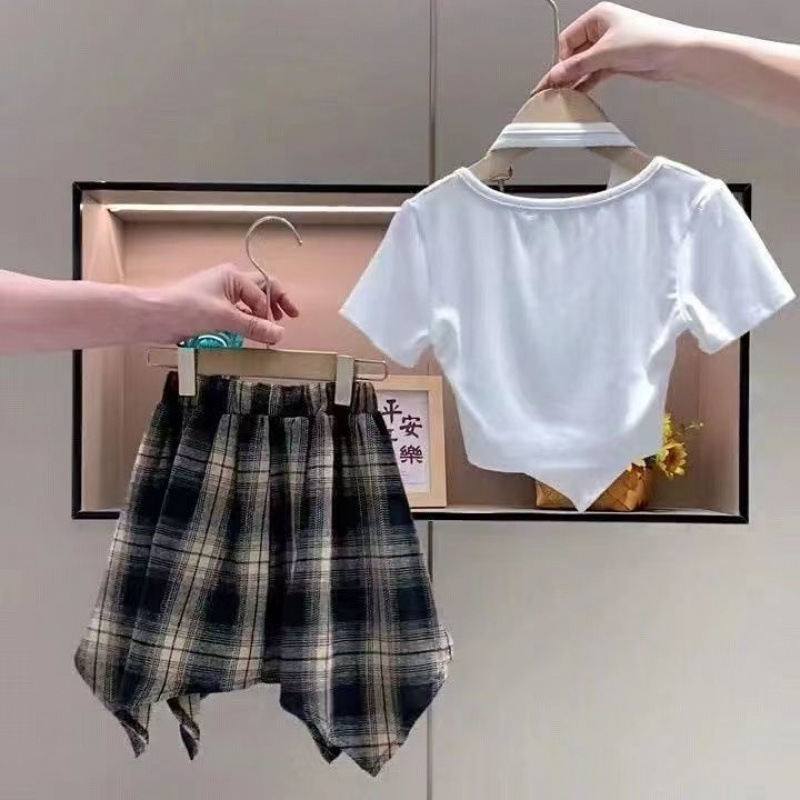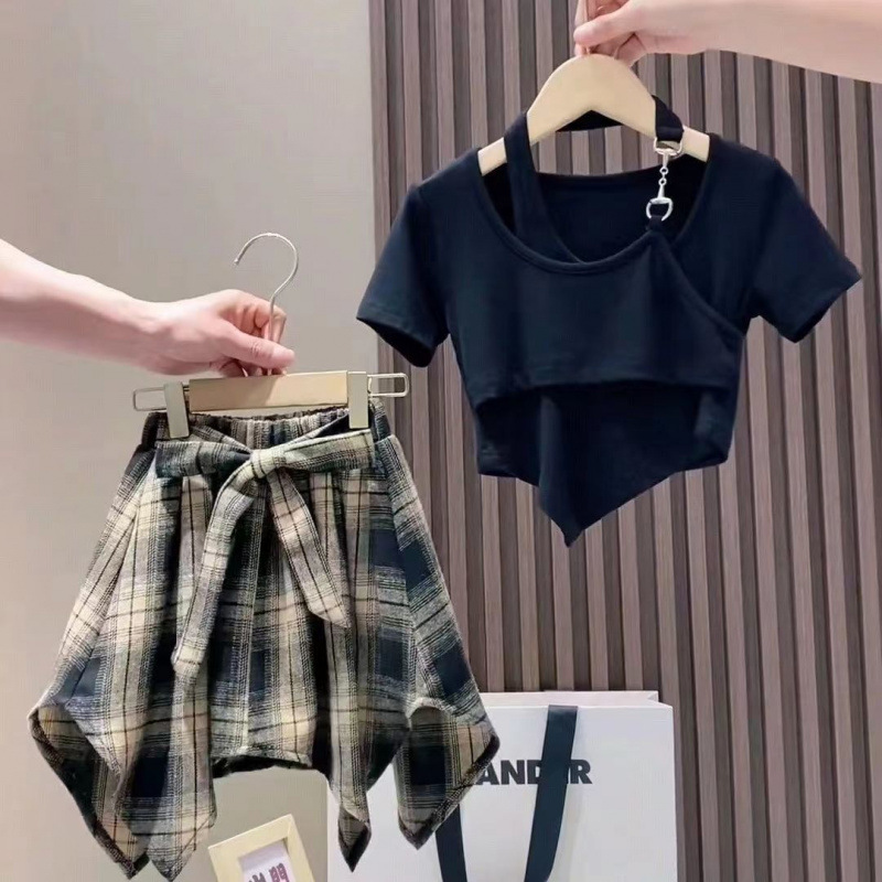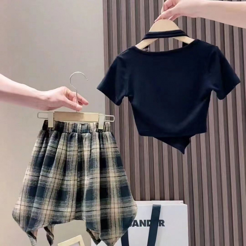 Летний костюм для девочек 2024, новый стиль, детский короткий рукав, популярный летний комплект из двух предметов для маленьких девочек