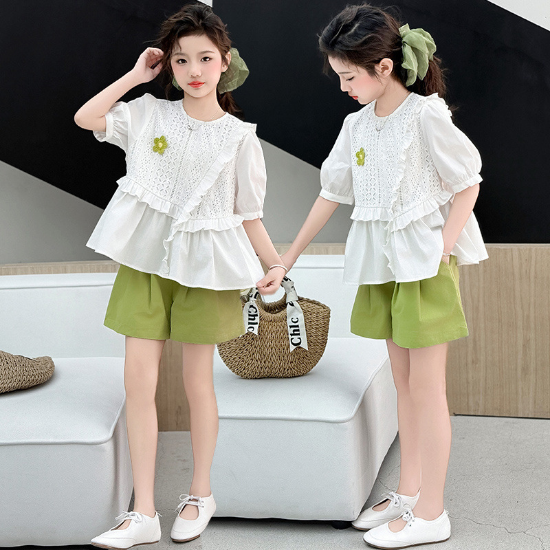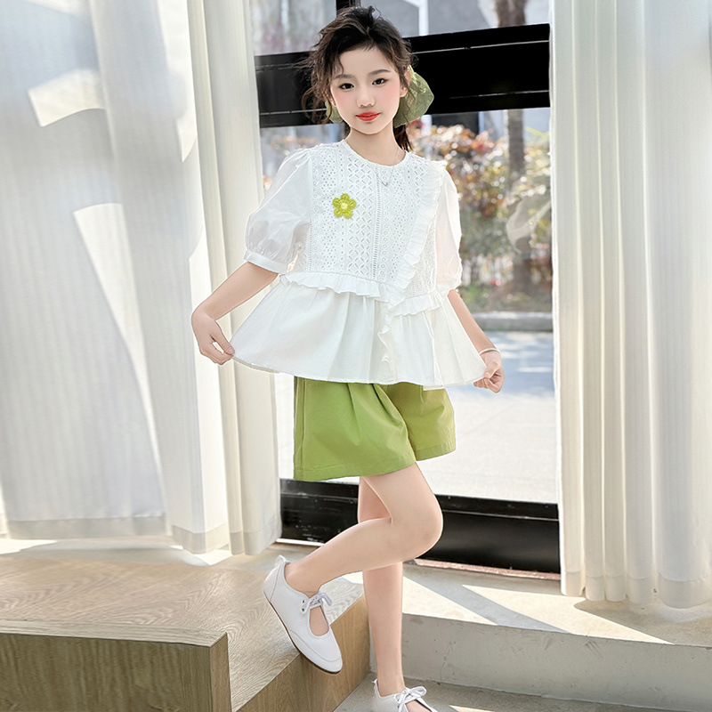 Детская хлопковая рубашка с коротким рукавом для девочек, белая, лето 2025, новый стиль, средний и большой размер, для маленьких девочек