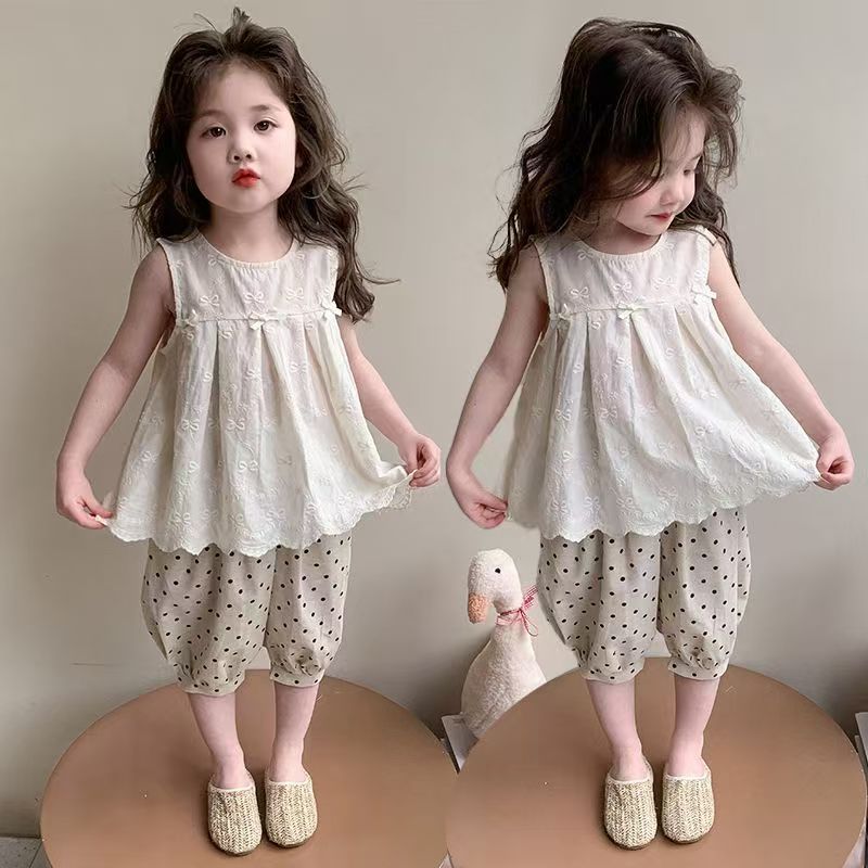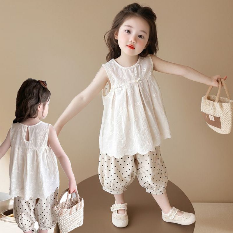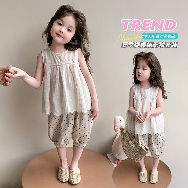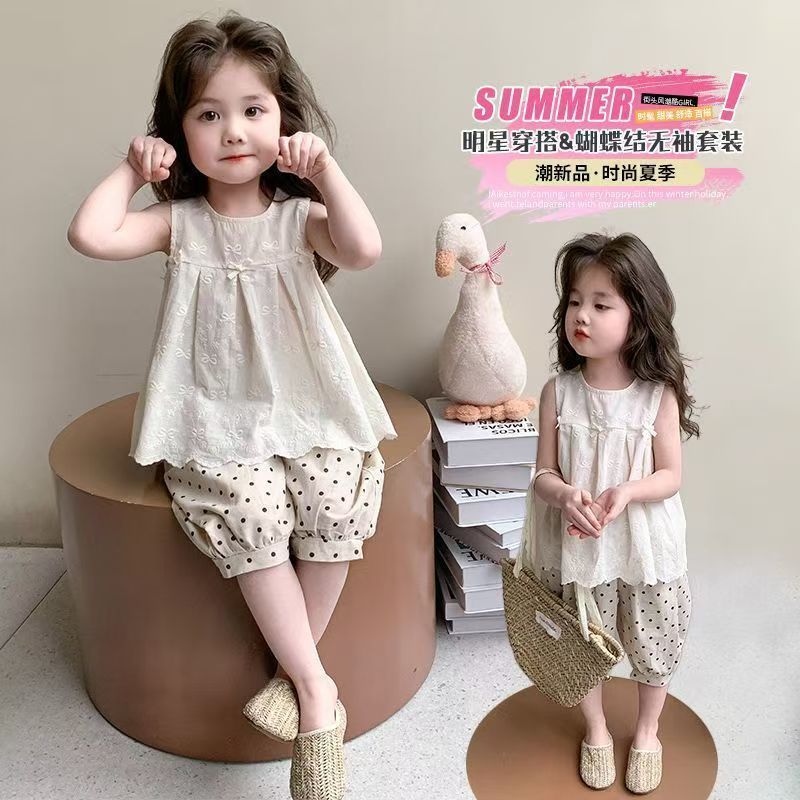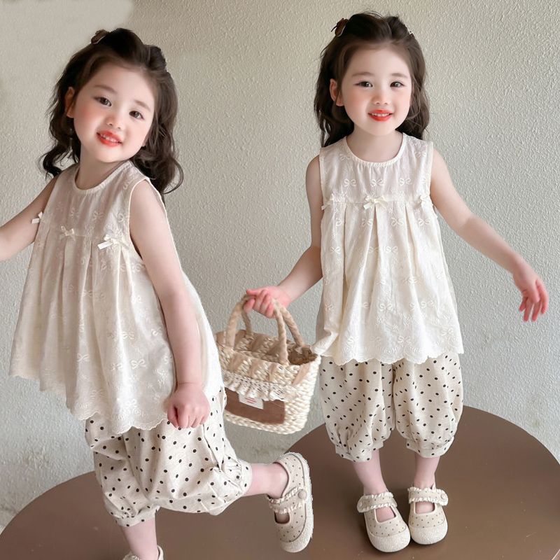 Летний костюм для девочек 2025, новый модный и стильный детский безрукавный жилет, летний костюм для малышей, тонкий комплект из двух предметов
