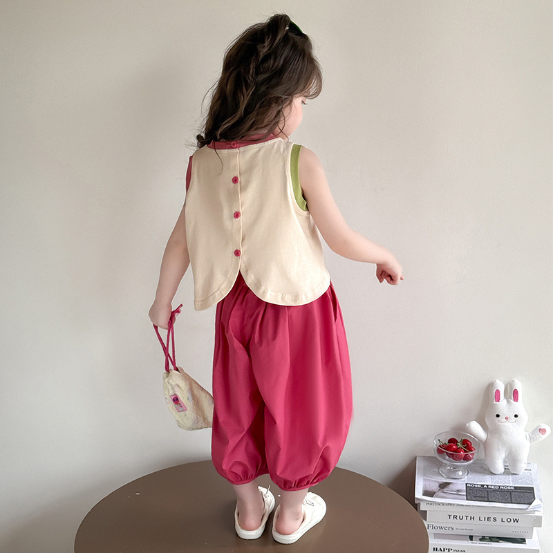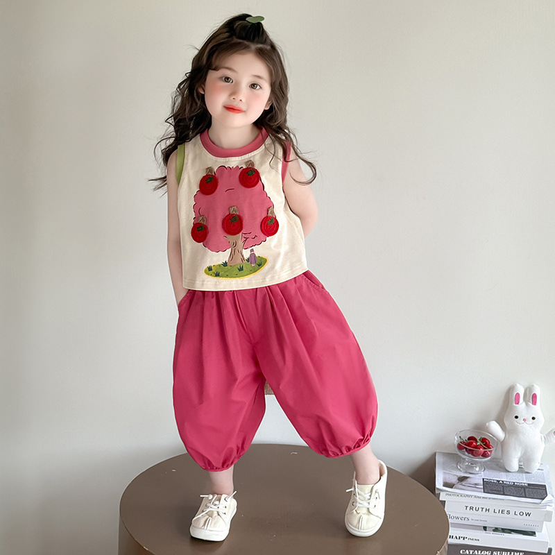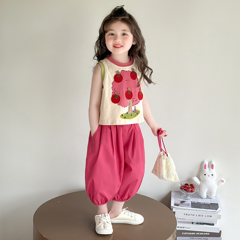Летний костюм для девочек 2025, новый суперпопулярный детский летний костюм, жилет и брюки для малышек, тонкий двухкомпонентный комплект, хит улицы