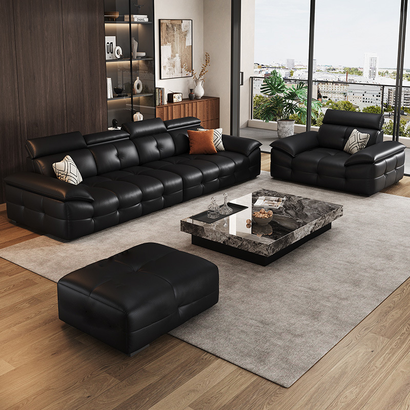 Кожаный диван Lawrence для гостиной, малогабаритной квартиры, цвет «черный клавишный», высокая спинка, прямой трехместный, минималистичный