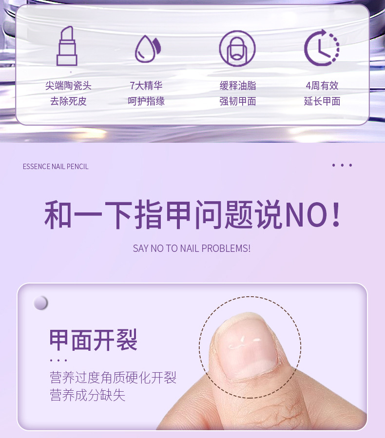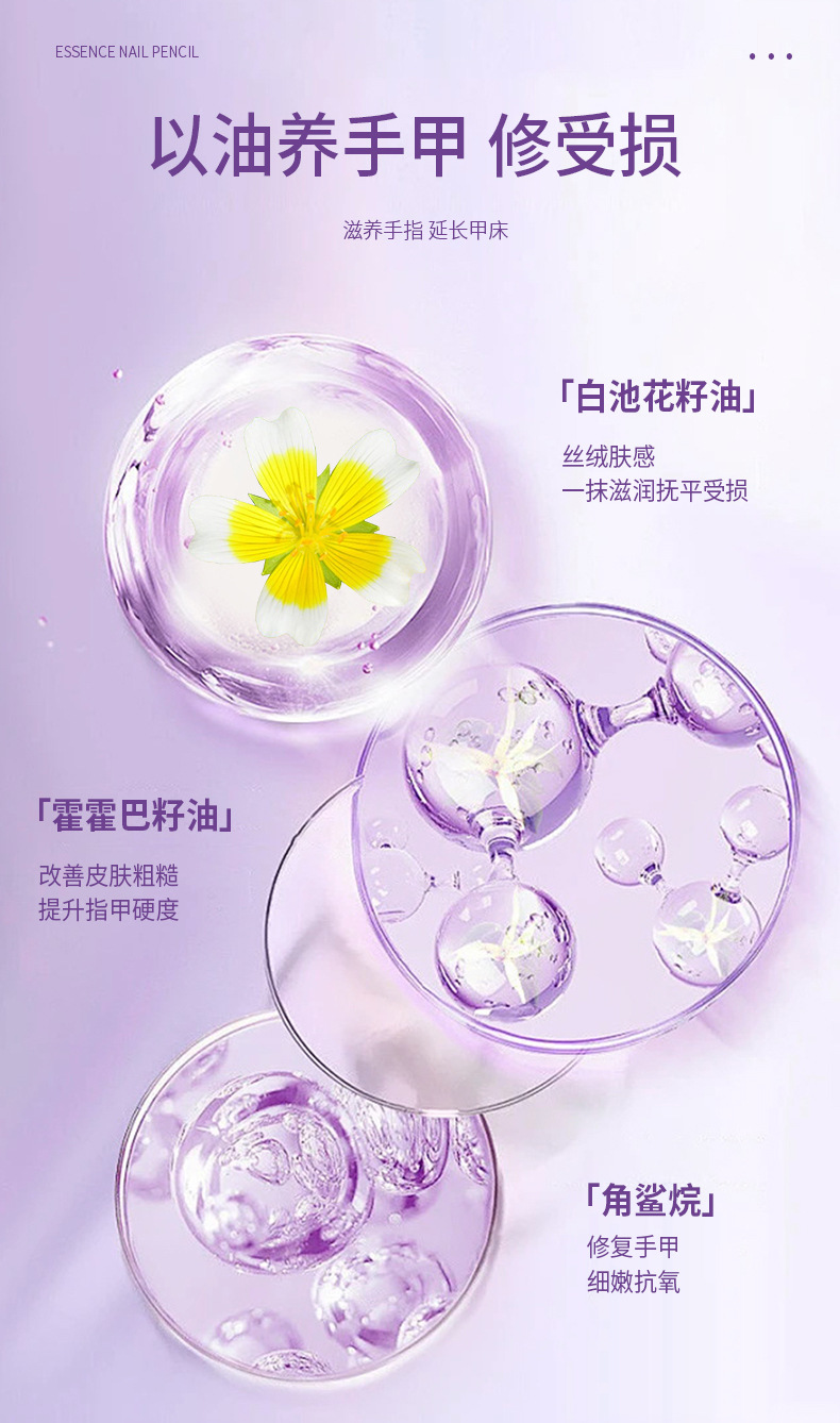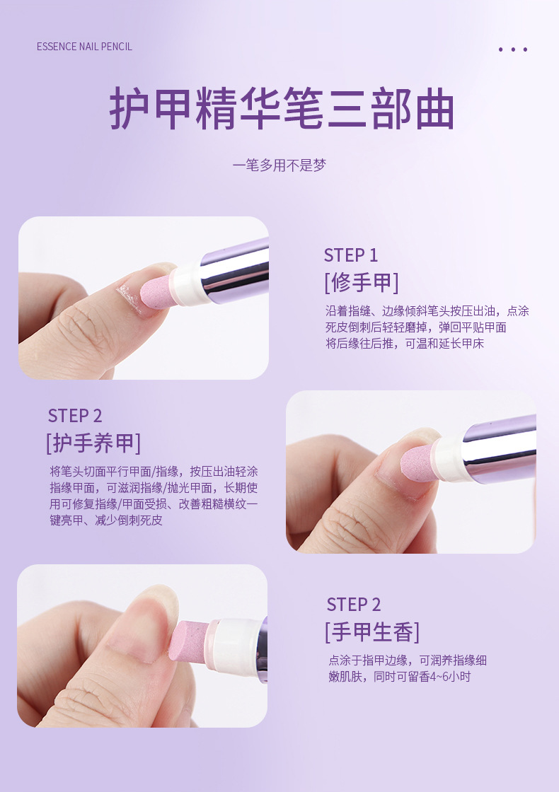 Эссенция-карандаш для ногтей восстанавливает и питает, полирует края ногтей, отшелушивает, предотвращает вросшие ногти, удаляет омертвевшую кожу и осветляет поверхность ногтей.