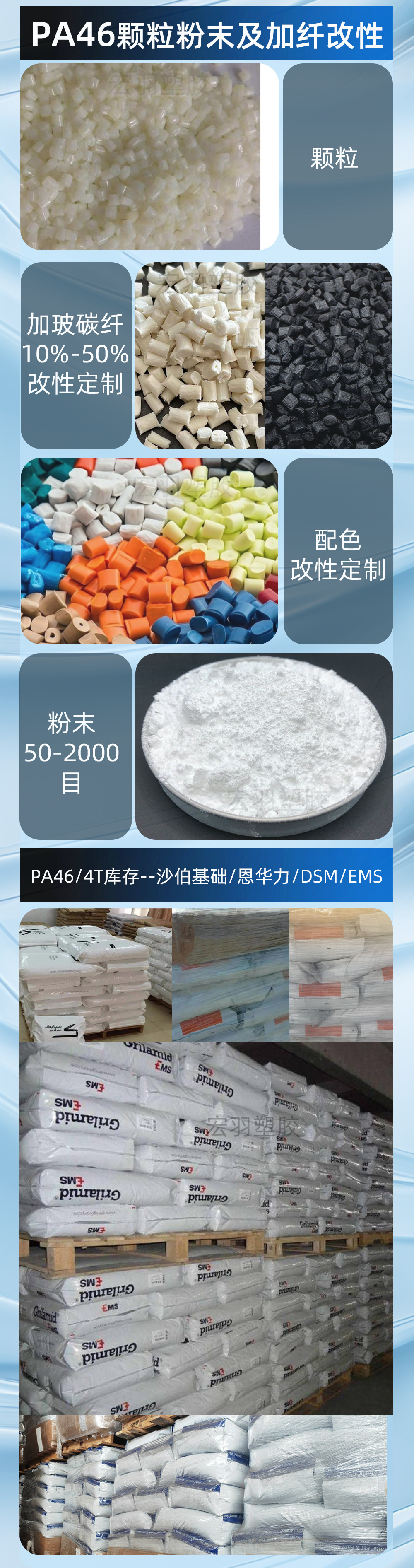 PA46/PA4T SABIC/Enhuali/DSM/EMS можно добавлять в высокотемпературный нейлон с частицами стекловолокна и пластиковой смолой.