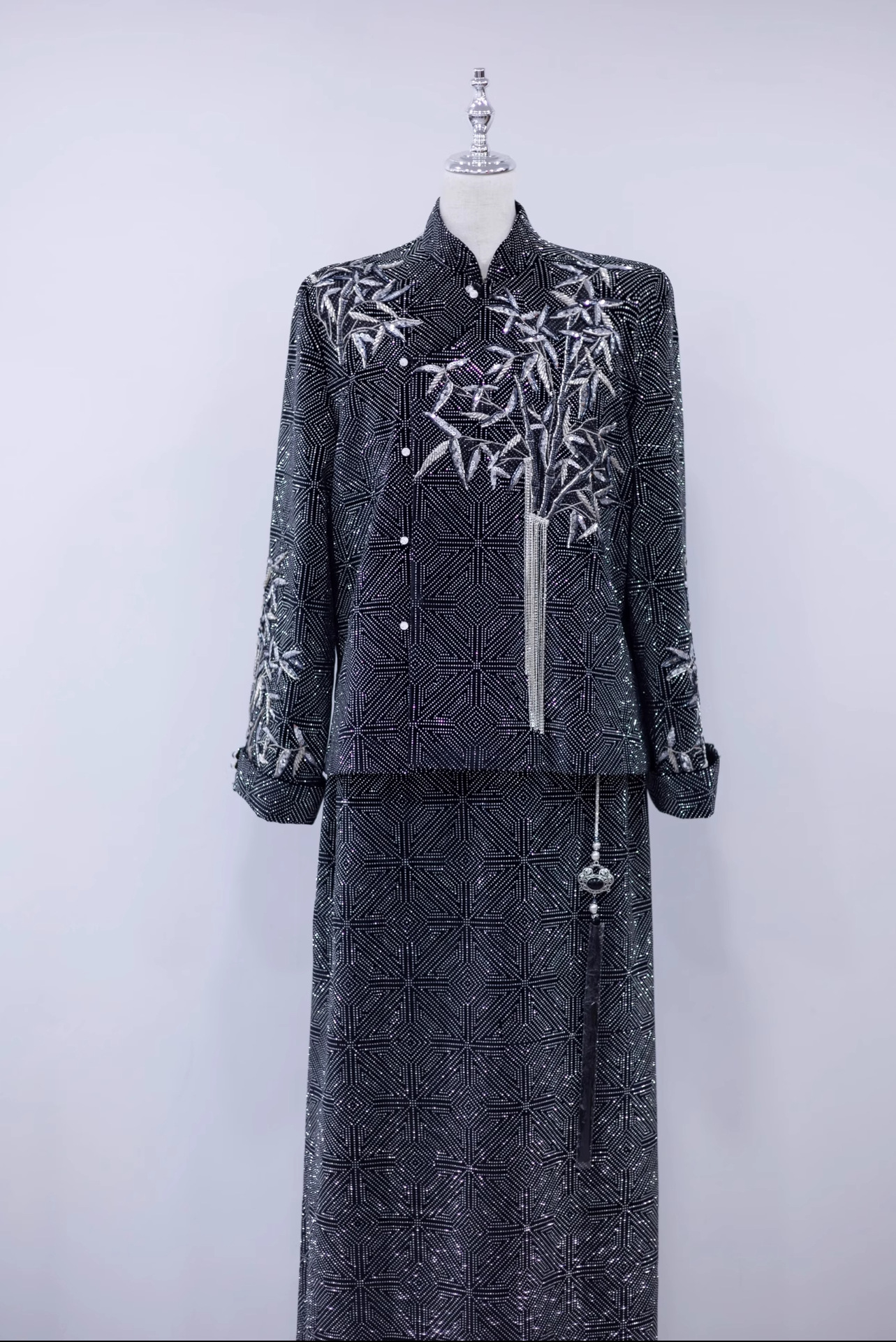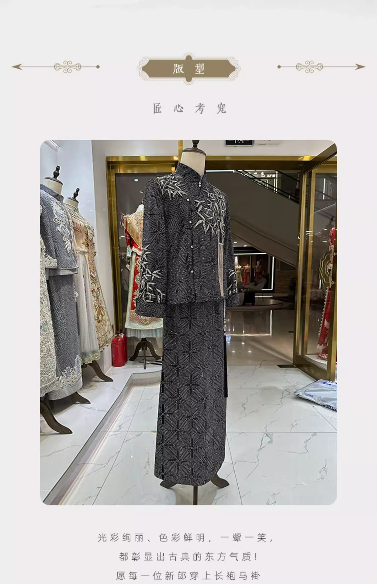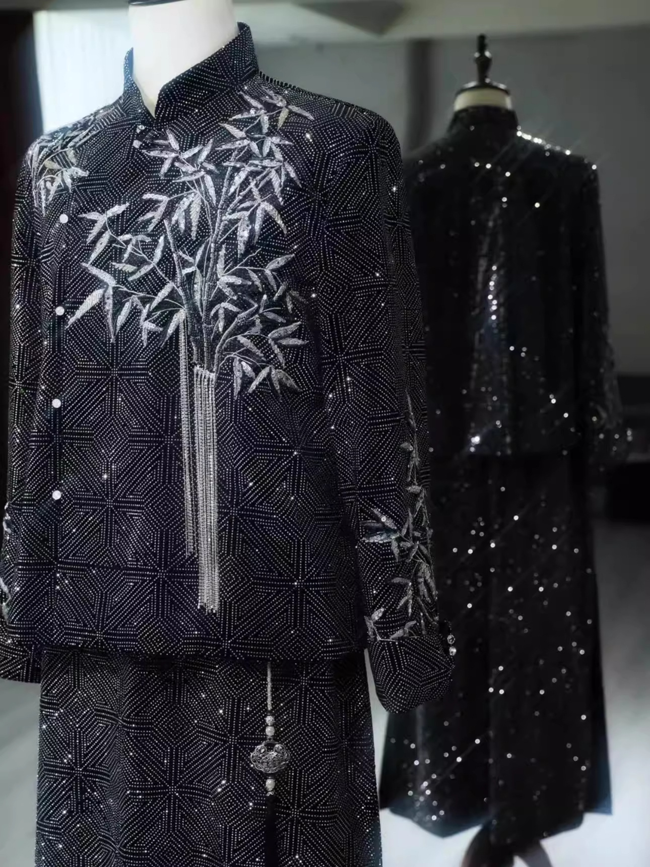 Свадебный наряд для мужчин, свадебный костюм жениха Xiuhe, наряд для свадебного торжества, костюм Тан, китайский стиль, черная вышивка, листья бамбука, национальный тренд.