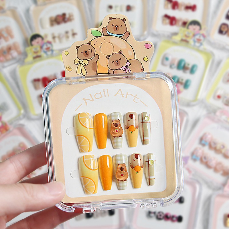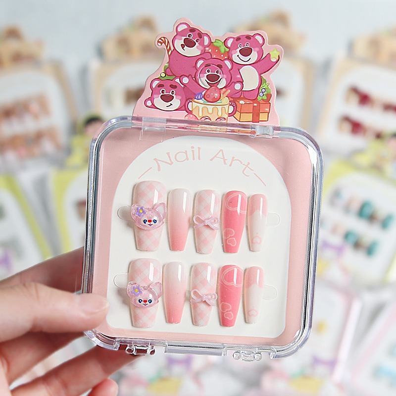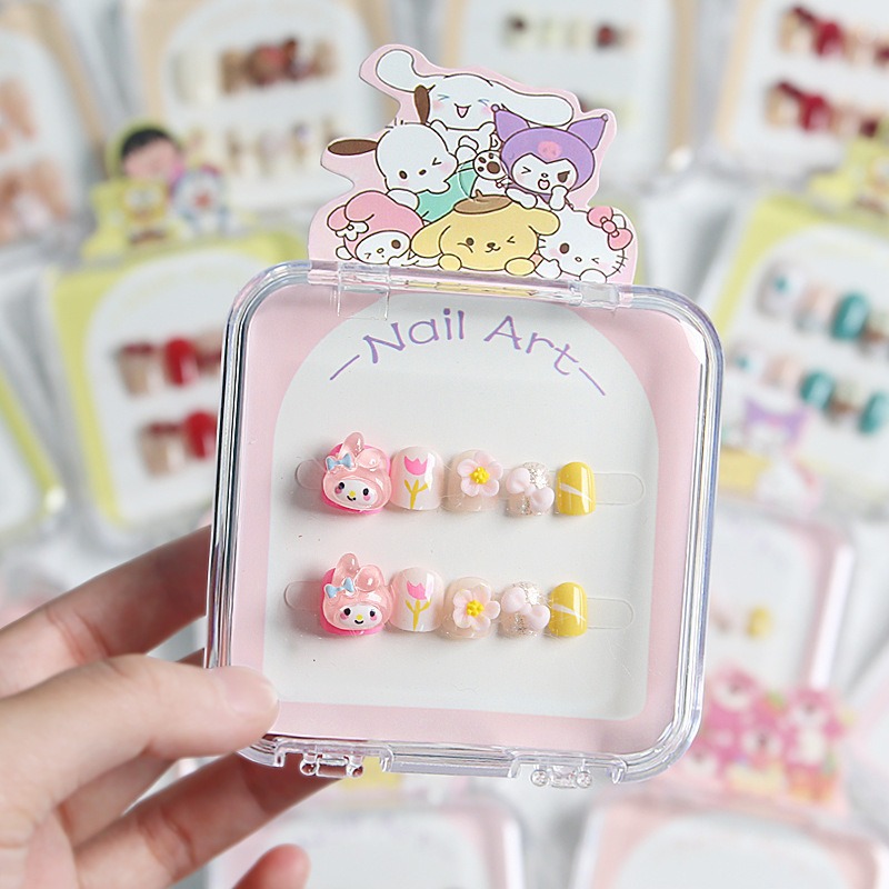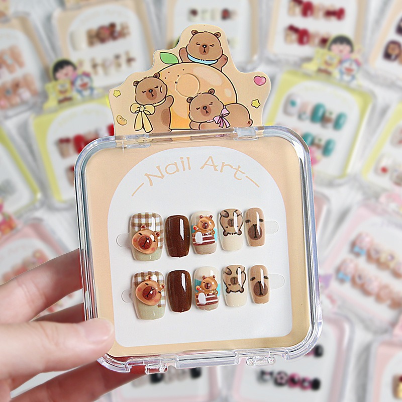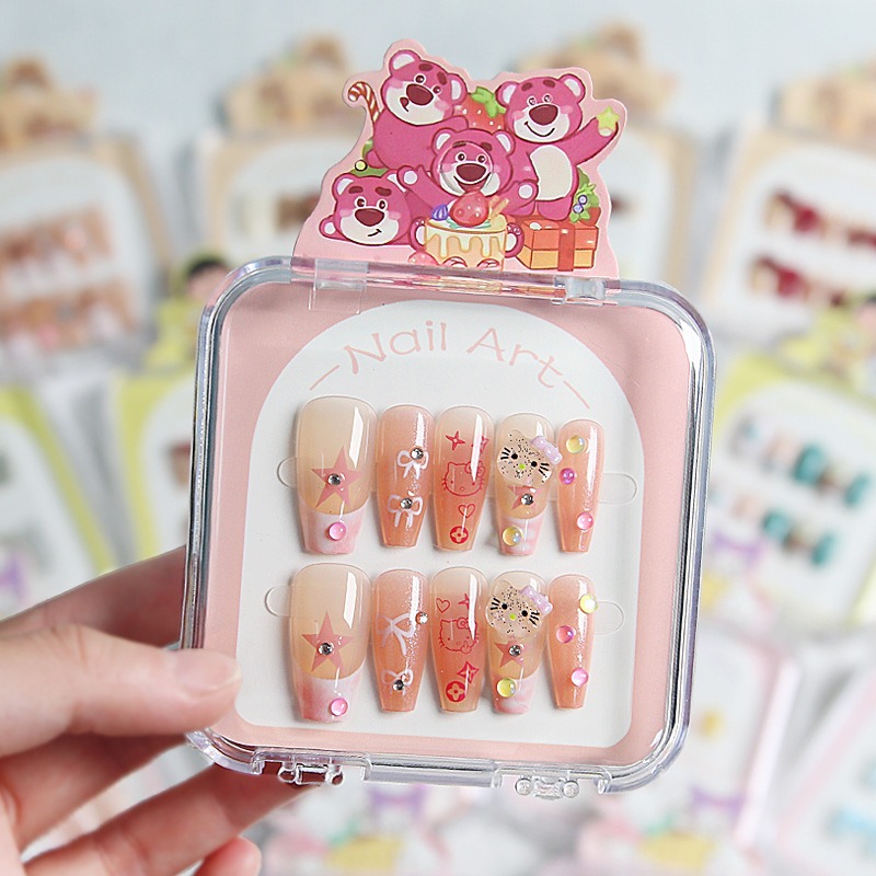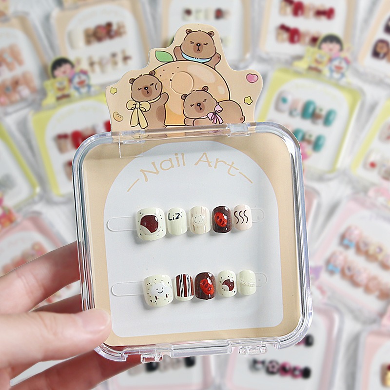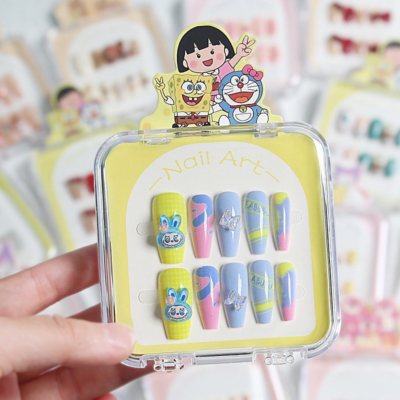 Популярные в TikTok детские короткие наклейки для ногтей с героями мультфильмов для девочек, милые студенческие накладки для ногтей в милом стиле.