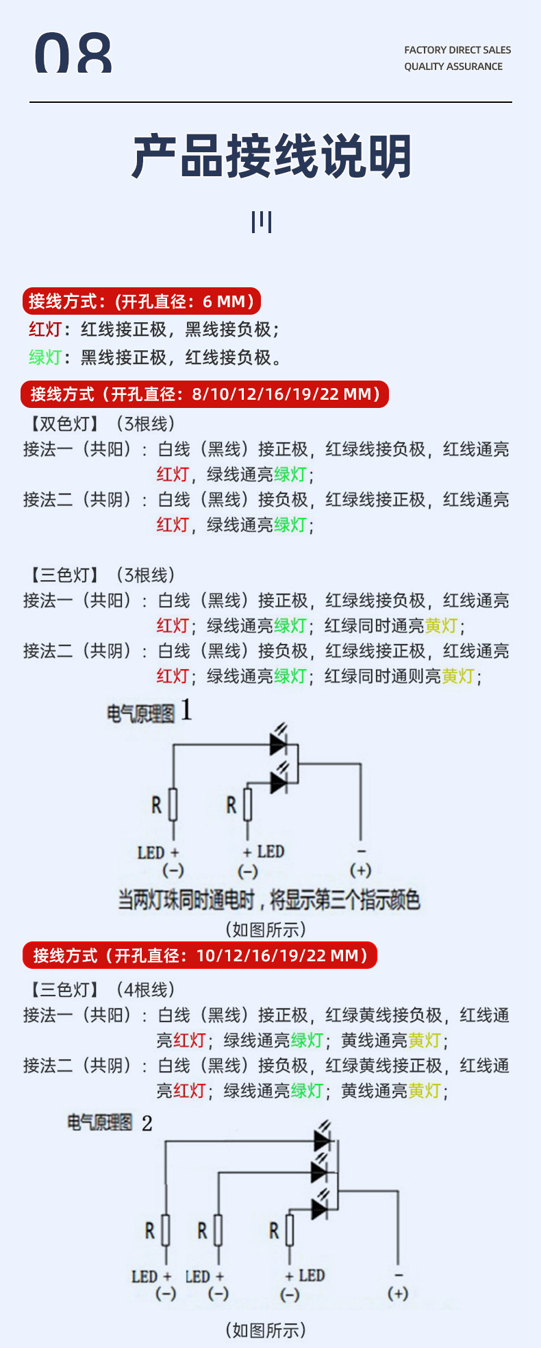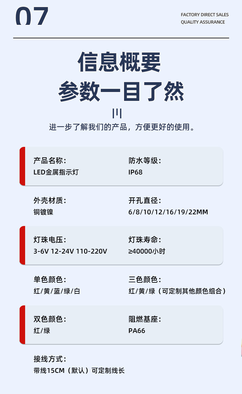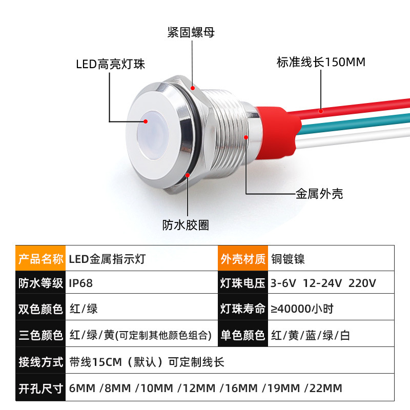 Красный свет [вывод 15 см] - независимо от положительного и отрицательного полюсов - 3-6 В; Зеленый свет [провод 15 см] - независимо от положительного и отрицательного полюсов - 3-6 В; Желтый свет [провод 15 см] - независимо от положительного и отрицательного полюсов - 3-6 В; Синий свет [вывод 15 см] - независимо от положительного и отрицательного полюсов - 3-6 В; Белый свет [провод 15 см] - независимо от положительного и отрицательного полюсов - 3-6 В; Красный/зеленый двухцветный свет [вывод 15 см] - независимо от положительного и отрицательного полюсов - 3-6 В; Красный/зеленый/желтый трехцветный свет [вывод 15 см] - независимо от положительного и отрицательного полюсов - 3-6 В; Красный свет [провод 15 см] - независимо от положительного и отрицательного полюсов - 12-24 В; Зеленый свет [провод 15 см] - независимо от положительного и отрицательного полюсов - 12-24 В; Желтый свет [провод 15 см] - независимо от положительного и отрицательного полюсов - 12-24 В; Синий свет [провод 15 см] - независимо от положительного и отрицательного полюсов - 12-24 В; Белый свет [вывод 15 см] - независимо от положительного и отрицательного полюсов - 12-24 В; Красный/зеленый двухцветный свет [вывод 15 см] - независимо от положительного и отрицательного полюсов - 12-24 В; Красный/зеленый/желтый трехцветный свет [вывод 15 см] - независимо от положительного и отрицательного полюсов - 12-24 В; Красный свет [провод 15 см] - независимо от положительного и отрицательного полюсов - 220 В; Зеленый свет [провод 15 см] - независимо от положительного и отрицательного полюсов - 220 В; Желтый свет [провод 15 см] - независимо от положительного и отрицательного полюсов - 220 В; Синий свет [провод 15 см] - независимо от положительного и отрицательного полюсов - 220 В; Белый свет [провод 15 см] - независимо от положительного и отрицательного полюса - 220 В; Красный/зеленый двухцветный свет [провод 15 см] - независимо от положительного и отрицательного полюсов - 220 В; Красный/зеленый/желтый трехцветный свет [провод 15 см] - независимо от положительного и отрицательного полюсов - 220 В; Красный свет [вывод 15 см] - общий положительный [общий положительный] - 3-6 В; Зеленый свет [Вывод 15 см] - Общий Ян [Общий положительный] - 3-6 В; Желтый свет [вывод 15 см] - общий положительный [общий положительный] - 3-6 В; Синий свет [вывод 15 см] - общий положительный [общий положительный] - 3-6 В; Белый свет [вывод 15 см] - общий положительный [общий положительный] - 3-6 В; Красный/зеленый двухцветный свет [вывод 15 см] - общий положительный [общий положительный] - 3-6 В; Красный/зеленый/желтый трехцветный свет [вывод 15 см] - общий положительный [общий положительный] - 3-6 В; Красный свет [вывод 15 см] - общий положительный [общий положительный] - 12-24 В; Зеленый свет [Вывод 15 см] - Общий Ян [Общий положительный] - 12-24 В; Желтый свет [вывод 15 см] - общий положительный [общий положительный] - 12-24 В; Синий свет [вывод 15 см] - общий положительный [общий положительный] - 12-24 В; Белый свет [вывод 15 см]-общий положительный [общий положительный]-12-24 В; Красный/зеленый двухцветный свет [вывод 15 см]-Ганъюнь [Гунчжэн]-12-24 В; Красный/зеленый/желтый трехцветный свет [вывод 15 см] - общий положительный [общий положительный] - 12-24 В; Красный свет [вывод 15 см] - общий положительный [общий положительный] - 220 В; Зеленый свет [Вывод 15 см] - Общий Ян [Общий положительный] - 220 В; Желтый свет [вывод 15 см] - общий положительный [общий положительный] - 220 В; Синий свет [вывод 15 см