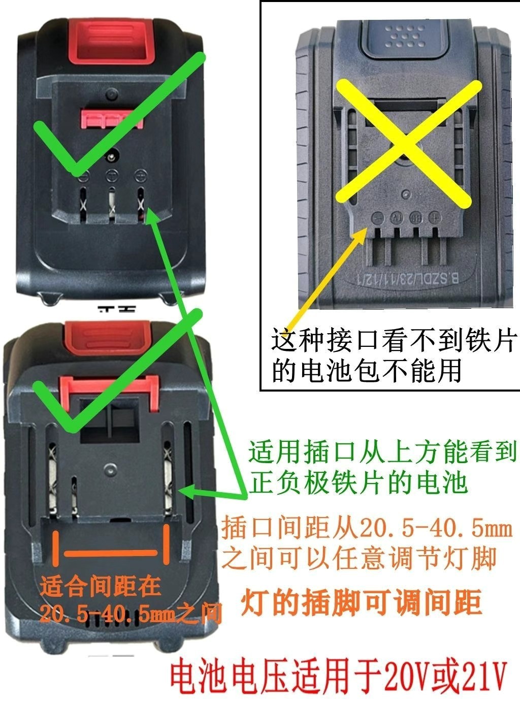 Литиевая батарея для электроинструмента 21 В, различные универсальные светодиодные рабочие фонари, прожекторы, наружное строительство, длительное использование.