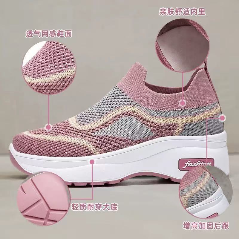 2025 женская обувь, универсальная повседневная обувь в корейском стиле на толстой подошве, производитель, оптовая продажа, обувь, увеличивающая рост, трансграничная дышащая обувь с вязаным узором, оптовая продажа