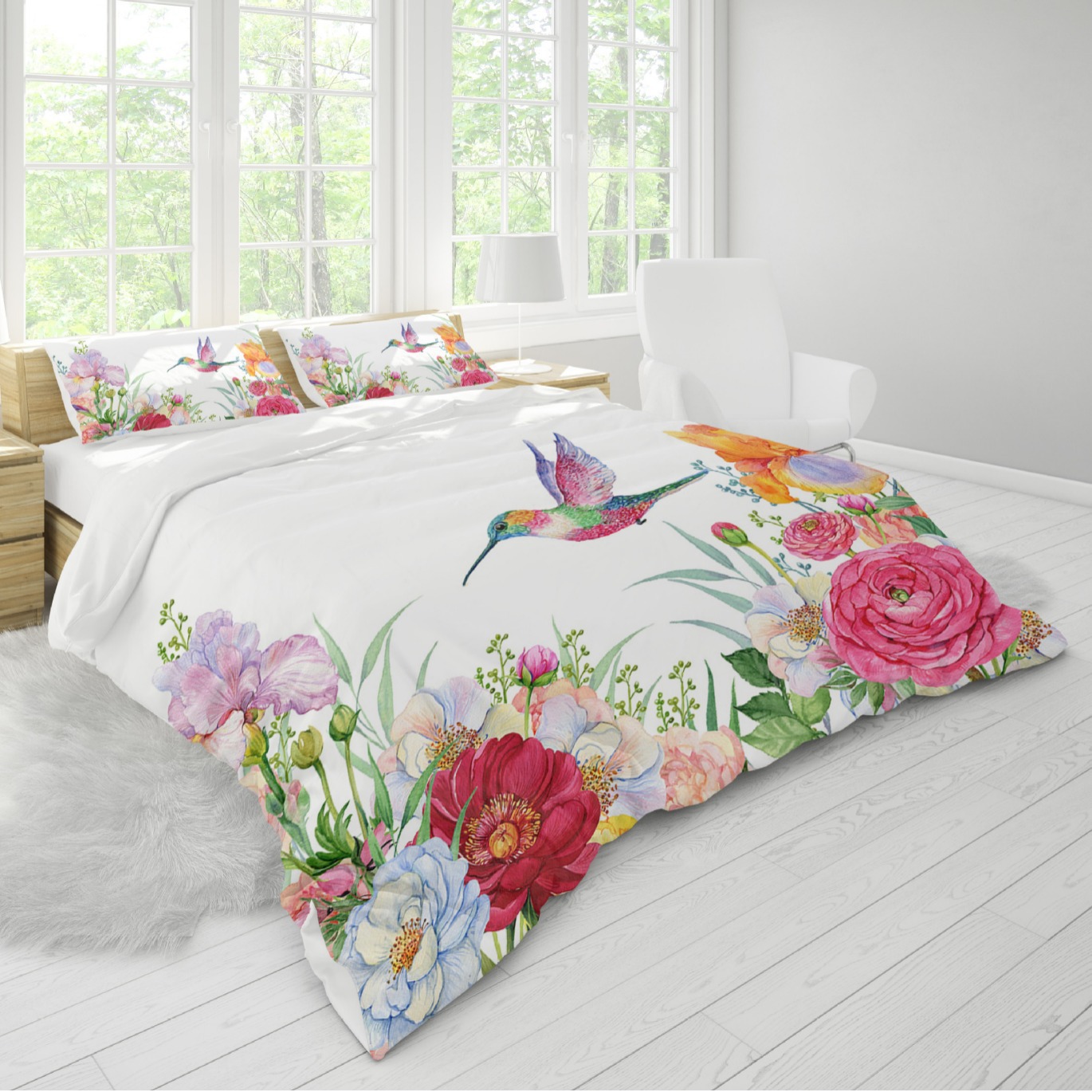 Внешняя торговля, трансграничный комплект из трех или четырех предметов с красочными цветами, мультяшная анимация, цифровая печать, одеяло, наволочка, постельное белье Amazon