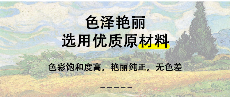 义乌市墨雅文化用品厂是专业生产高品质数字画丙稀颜料, 本系列产品专门为数字油画设计开发高品质填料。环保丙稀树脂,多种环保添加剂加工而成。厂家热销2ML,3ML,5ML6连体数字油画丙稀颜料。本产品具有环保安全,覆盖性好。色彩鲜艳,储存稳定等优点,适合多种绘画。