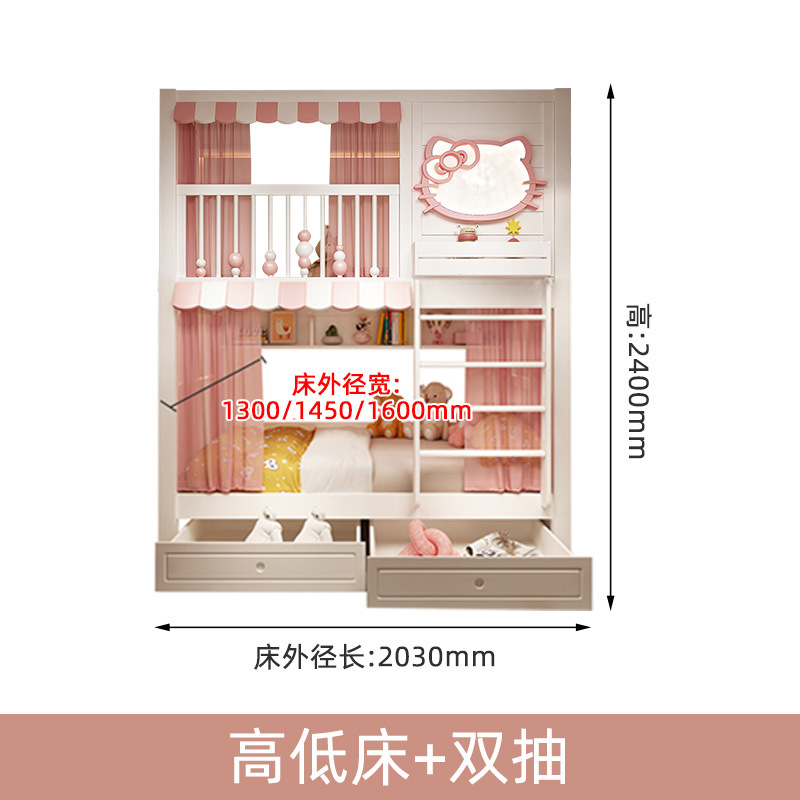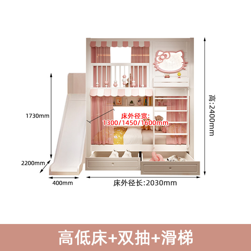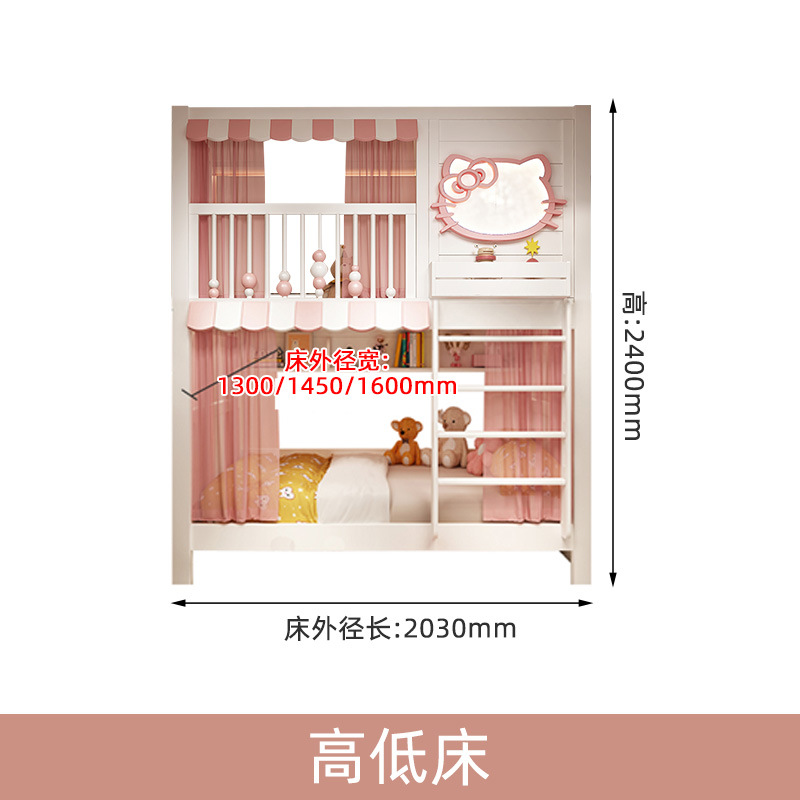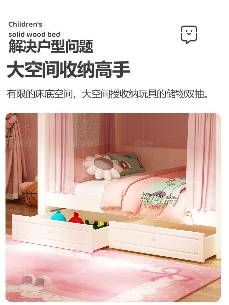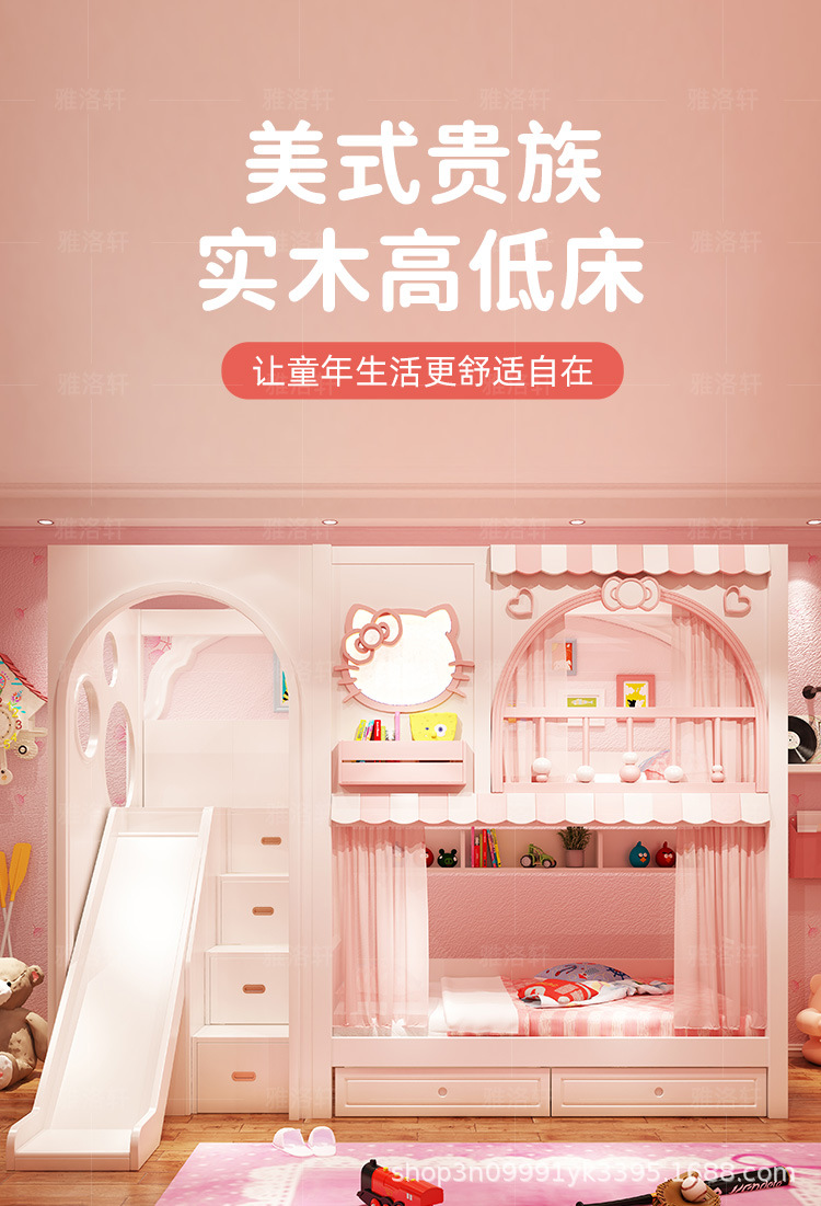 Детская кровать из цельного дерева для девочек, двухэтажная двухъярусная кровать с высокими перилами, одинаковой ширины, горка для маленькой квартиры, кровать для мамы, домик на дереве-замке.