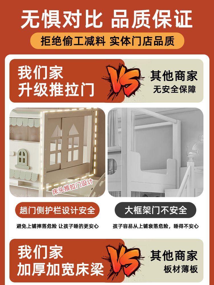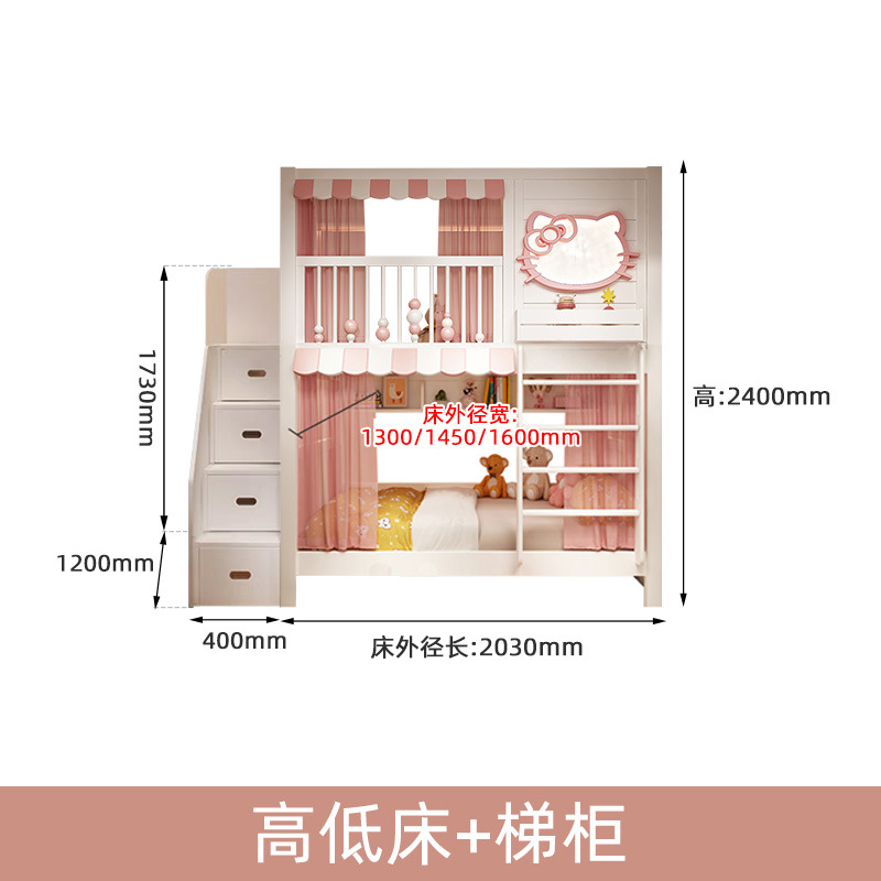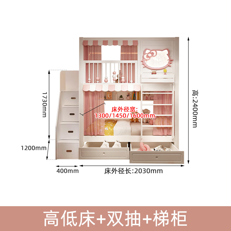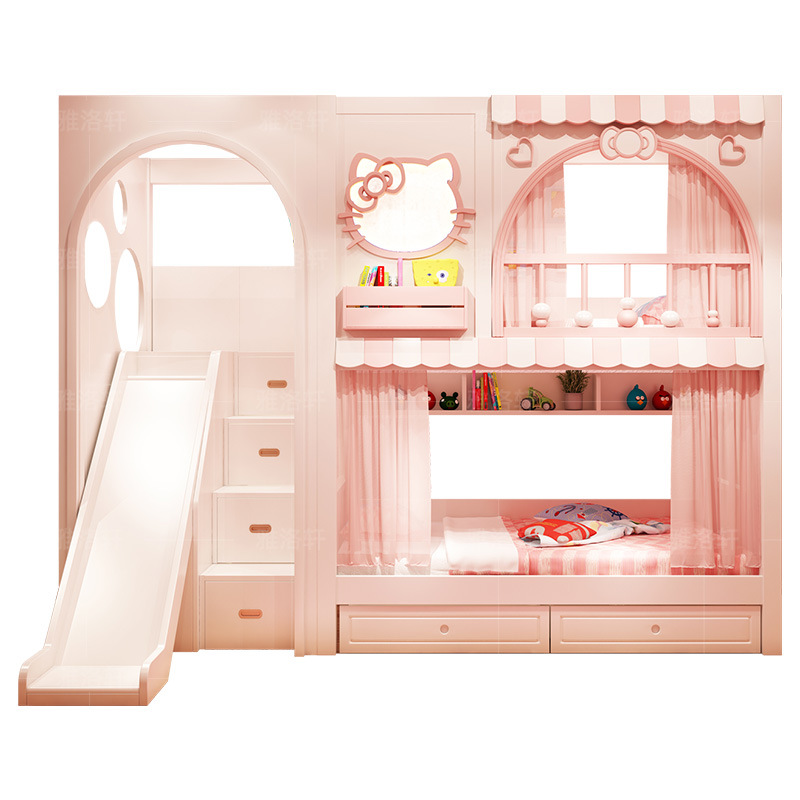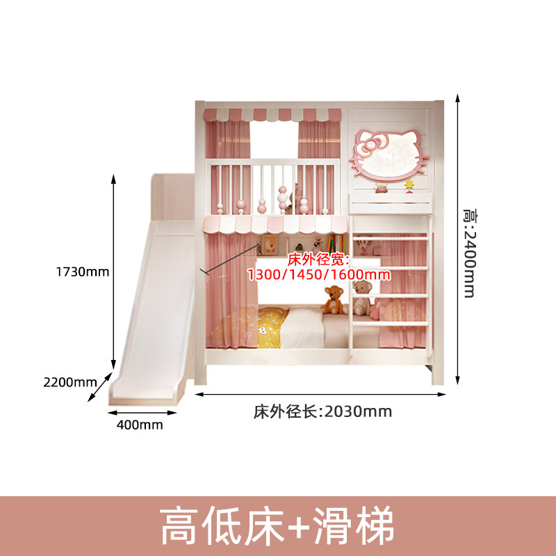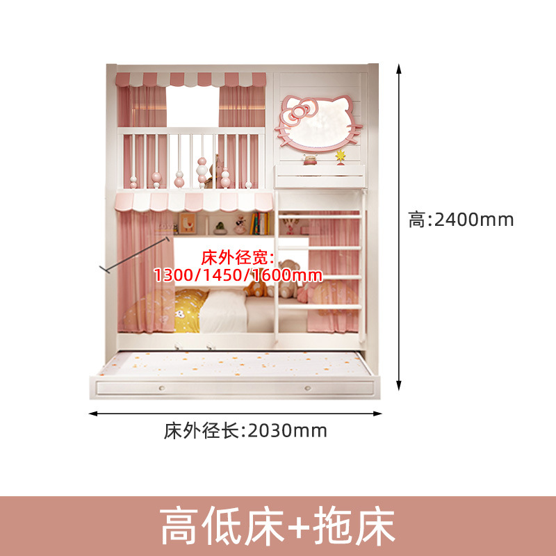 Детская кровать из цельного дерева для девочек, двухэтажная двухъярусная кровать с высокими перилами, одинаковой ширины, горка для маленькой квартиры, кровать для мамы, домик на дереве-замке.