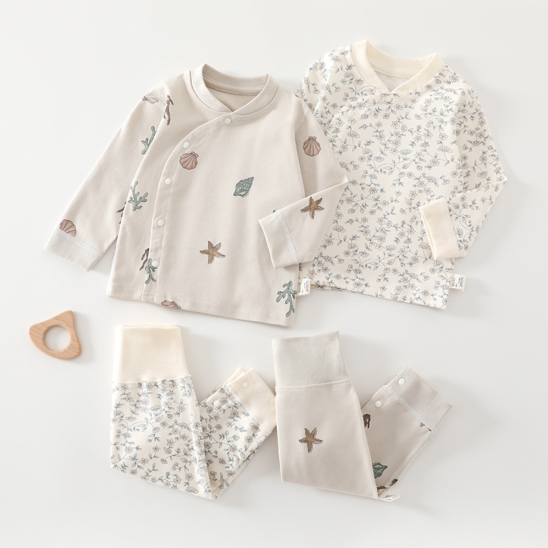Комплект нижнего белья для новорожденных, осенняя одежда и штаны, пижамы с длинными рукавами, длинные штаны, базовый слой из чистого хлопка, осенняя одежда и штаны