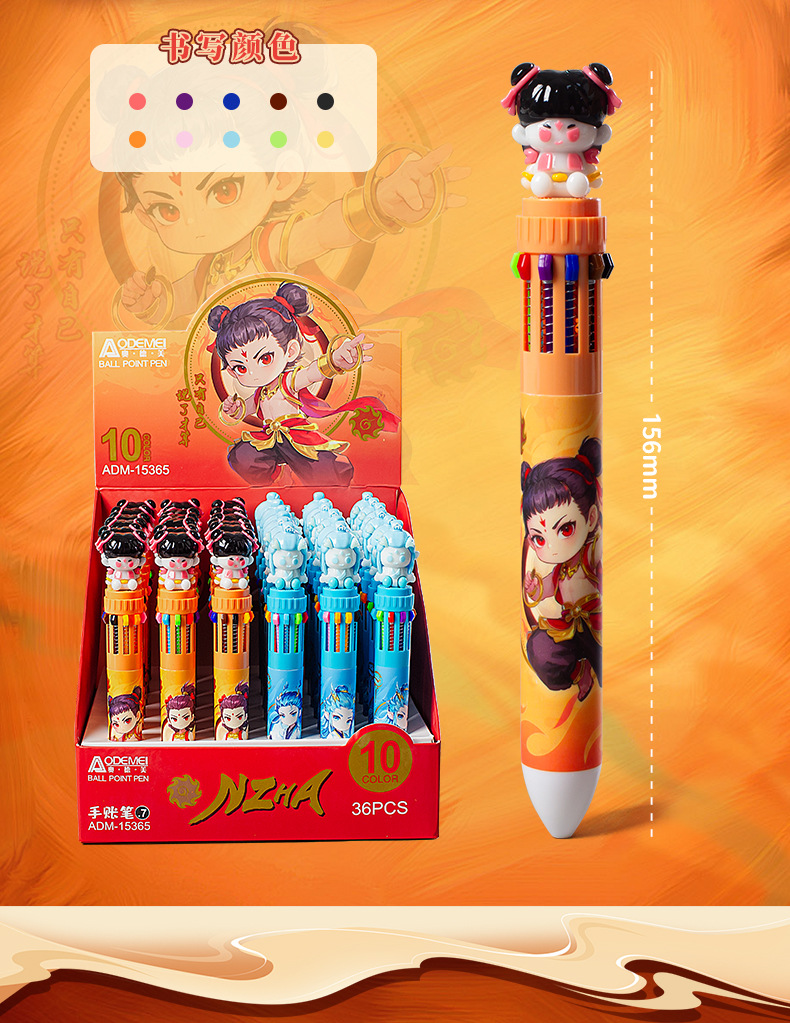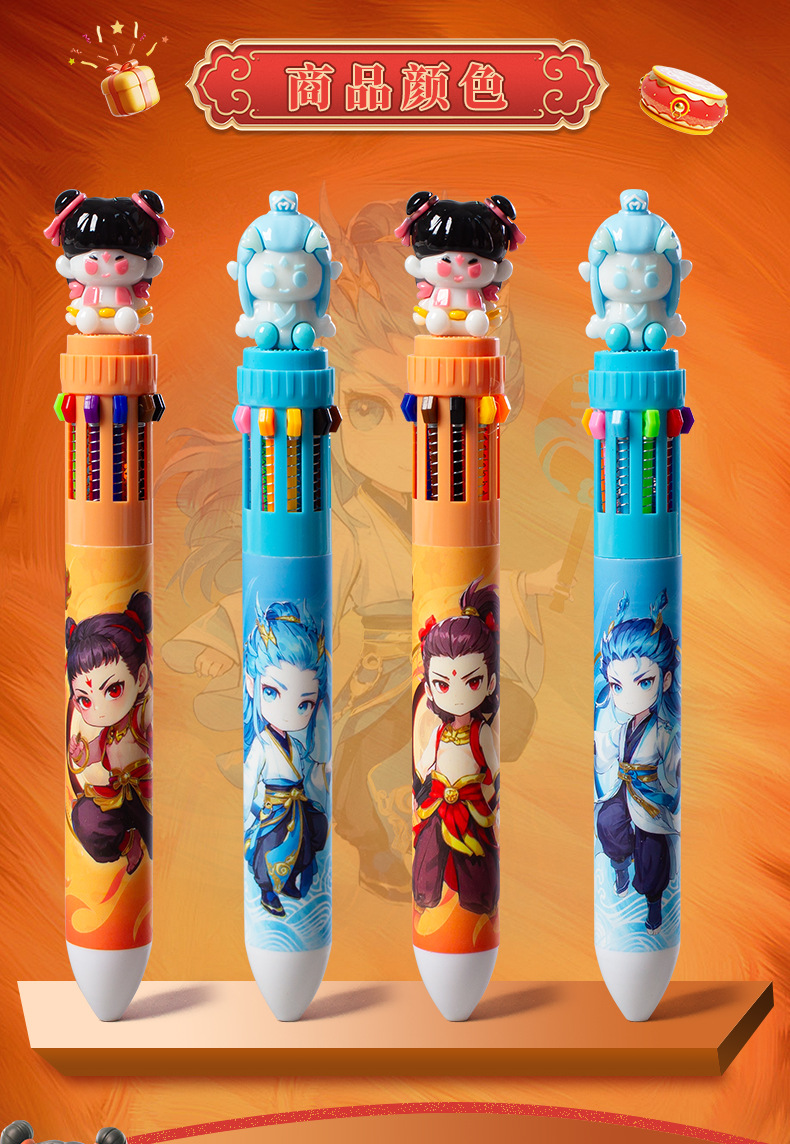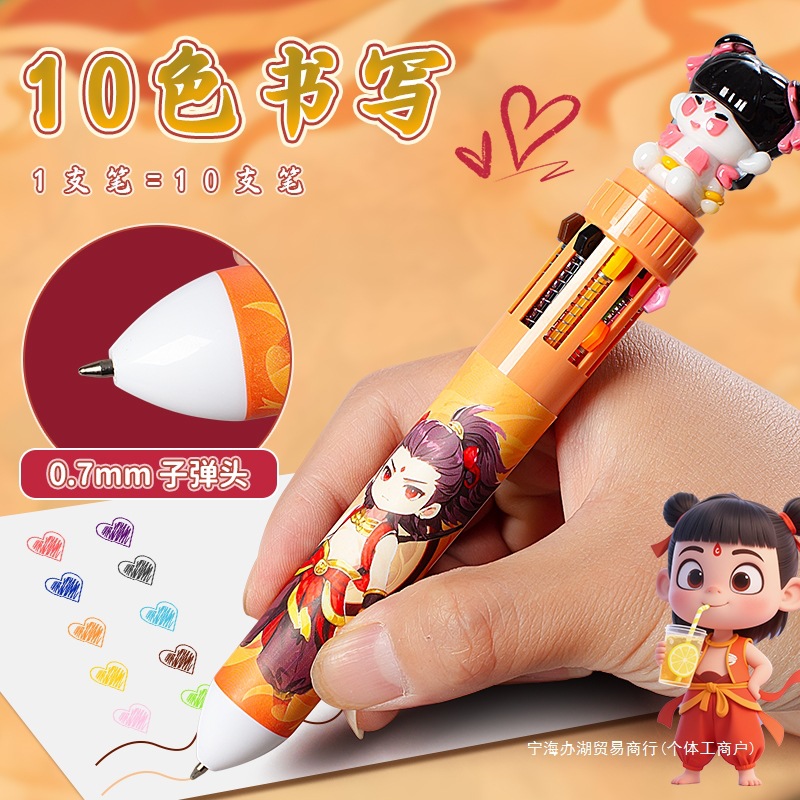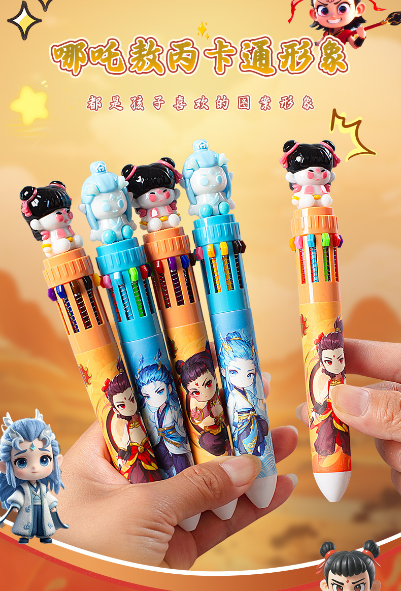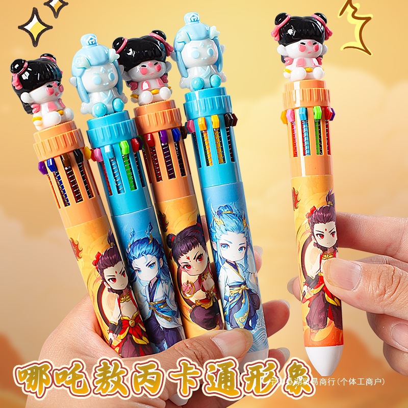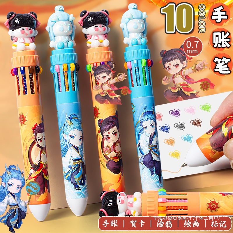Nezha Ao Bing, десятицветная шариковая ручка, мультяшная китайская стильная креативная многоцветная ручка, выдвижная красочная ручка для журнала, DIY multi
