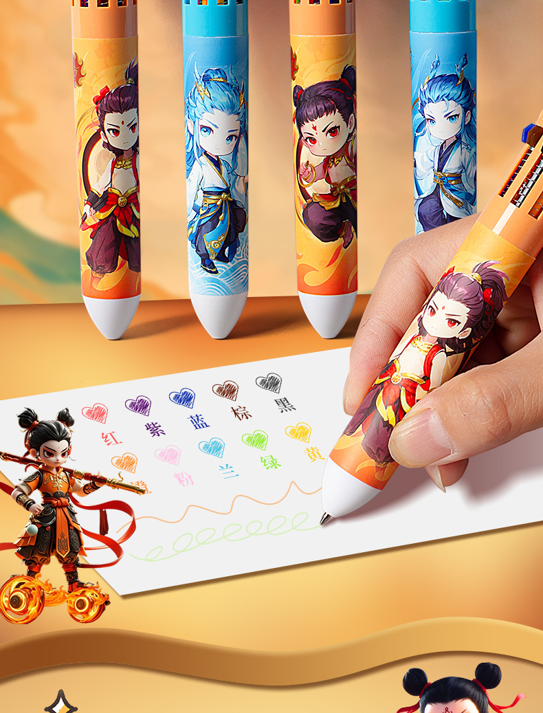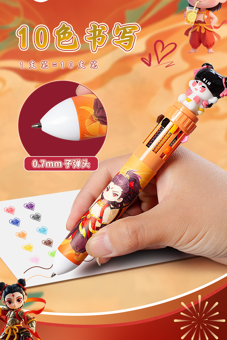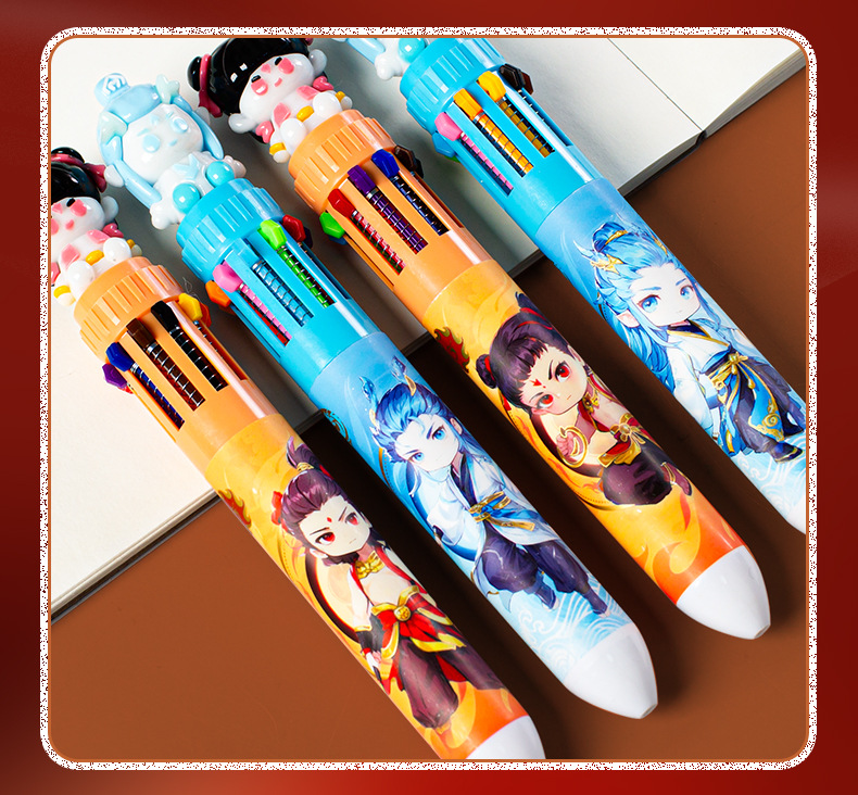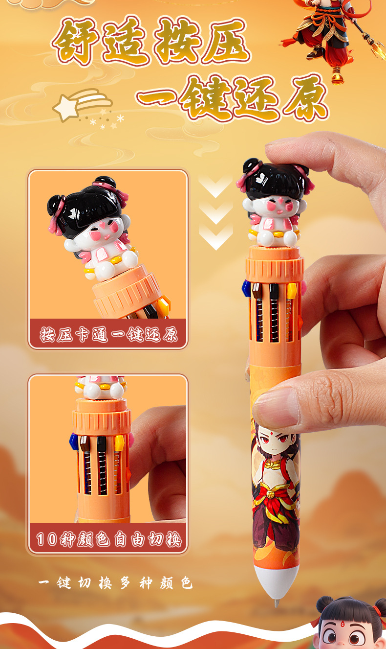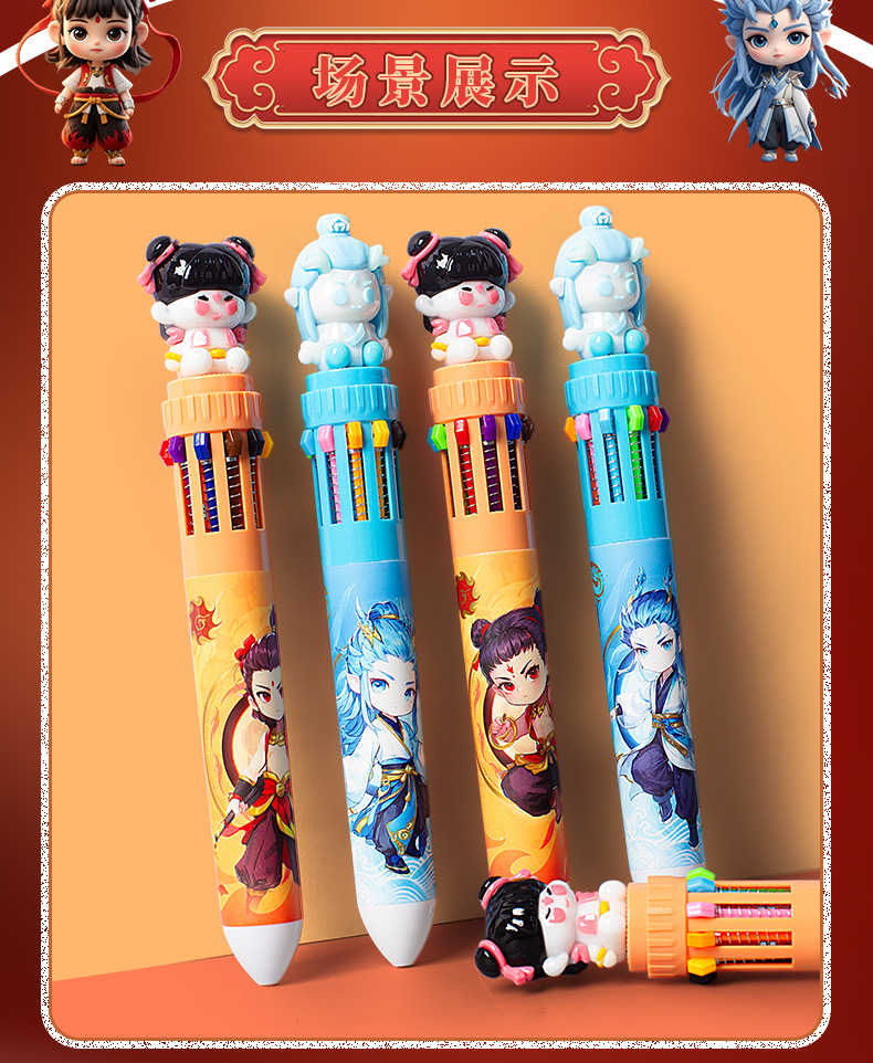 Nezha Ao Bing, десятицветная шариковая ручка, мультяшная китайская стильная креативная многоцветная ручка, выдвижная красочная ручка для журнала, DIY multi