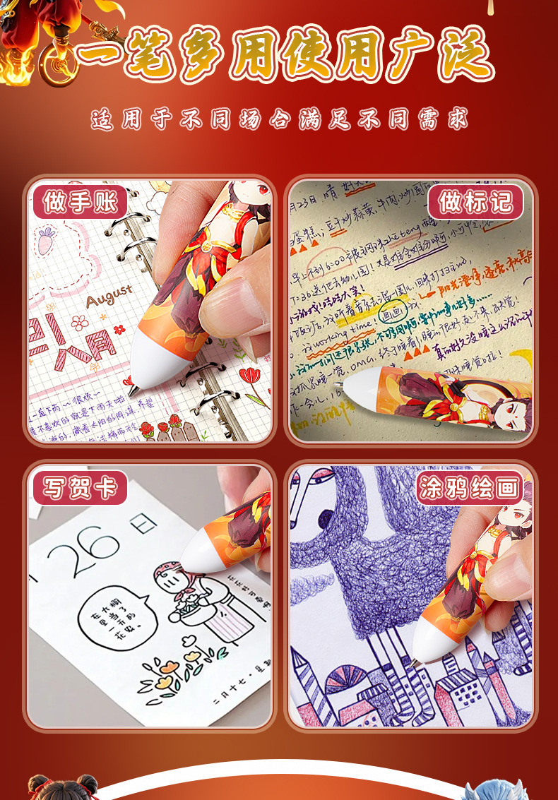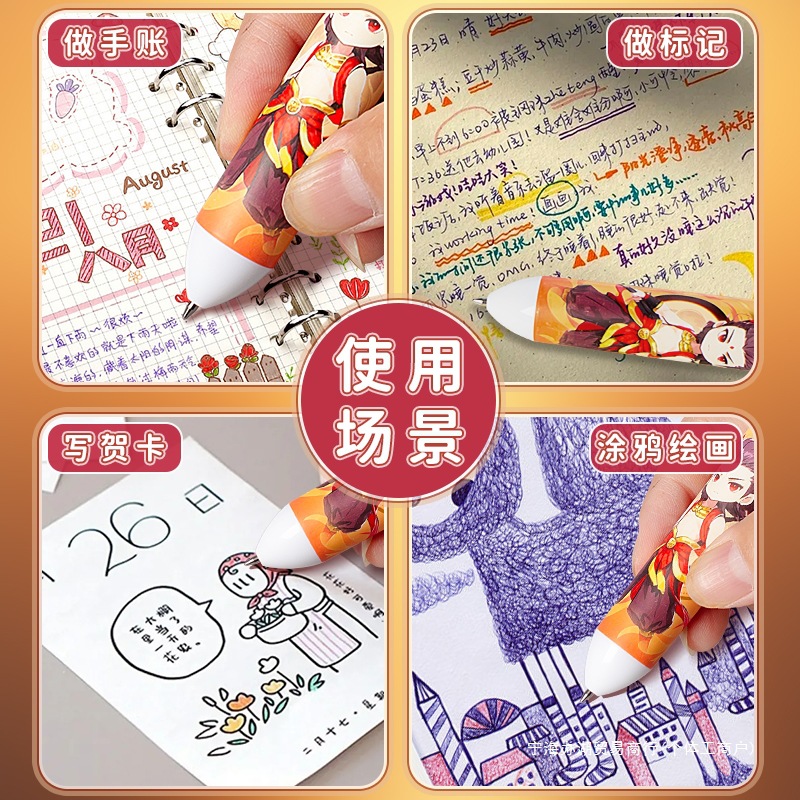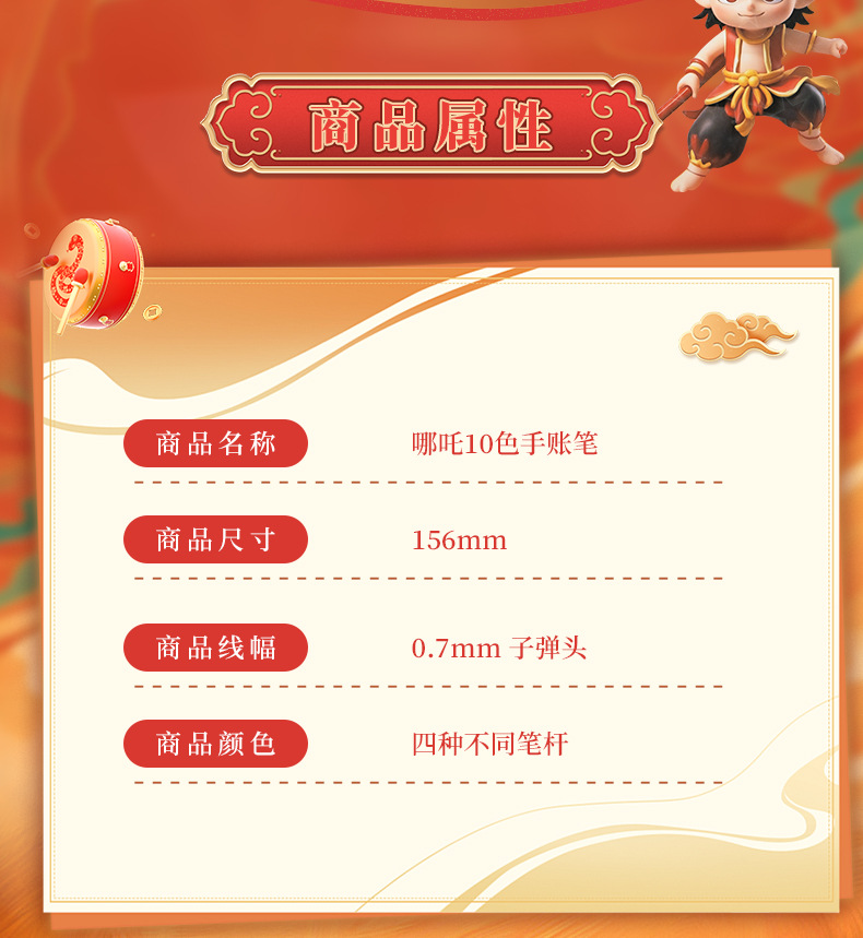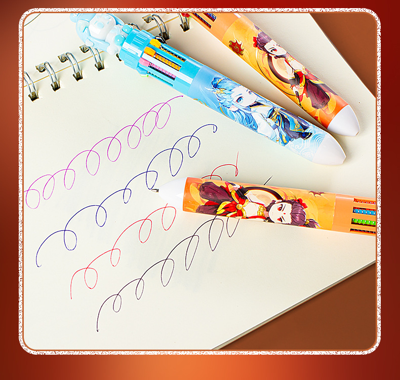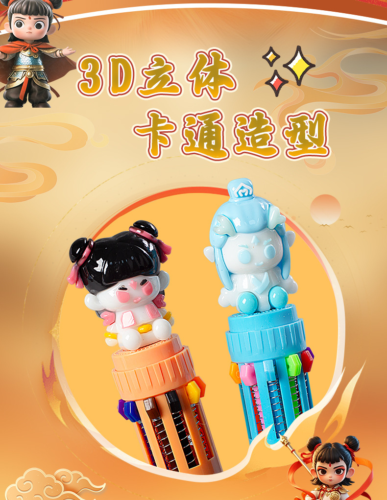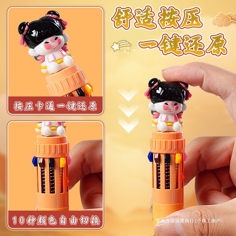 Nezha Ao Bing, десятицветная шариковая ручка, мультяшная китайская стильная креативная многоцветная ручка, выдвижная красочная ручка для журнала, DIY multi