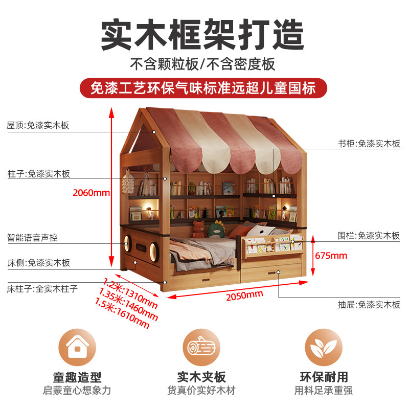 детская односпальная кровать; детский книжный шкаф-кровать; Детский книжный шкаф-кровать + двойной ящик; 3cm матрас из кашемировой ткани*1; 5cm матрас из ткани Tencel*1; 5cm матрас из джутового коричневого латекса*1; 10cm полностью разобранный матрас из джутового коричневого латекса.