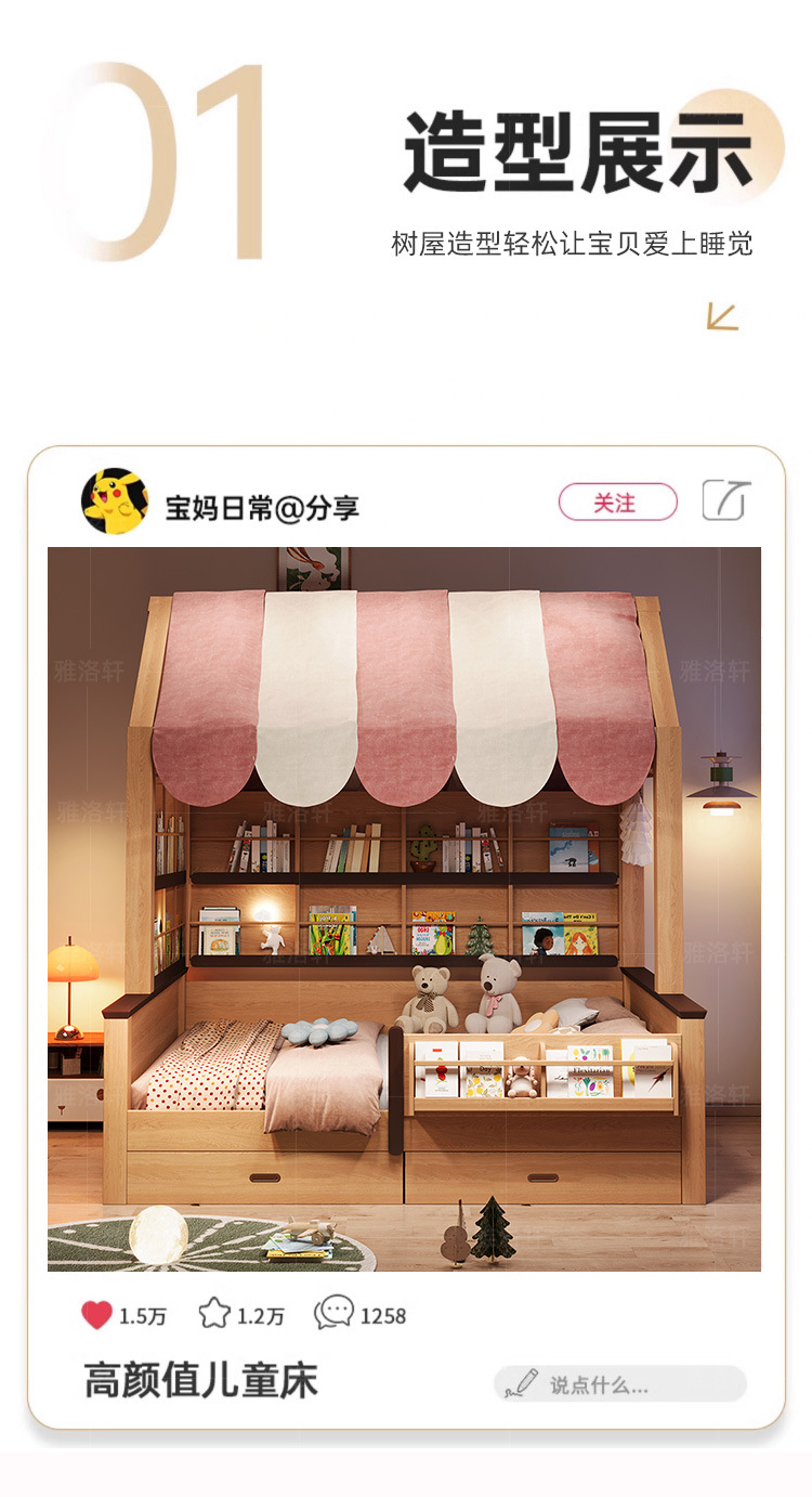 Детская двухъярусная кровать-палатка в виде домика на дереве с подсветкой, кровать-мороженое, шкаф-кровать Монтессори из массива дерева, двухъярусная кровать с двойной высотой