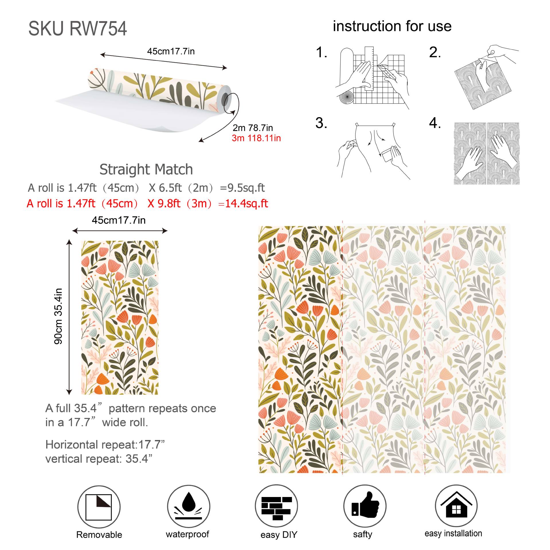 Оригинальный дизайн, авторизованные ретро богемные ботанические сады, самоклеящиеся обои, водонепроницаемые обои с дикими цветами и растениями