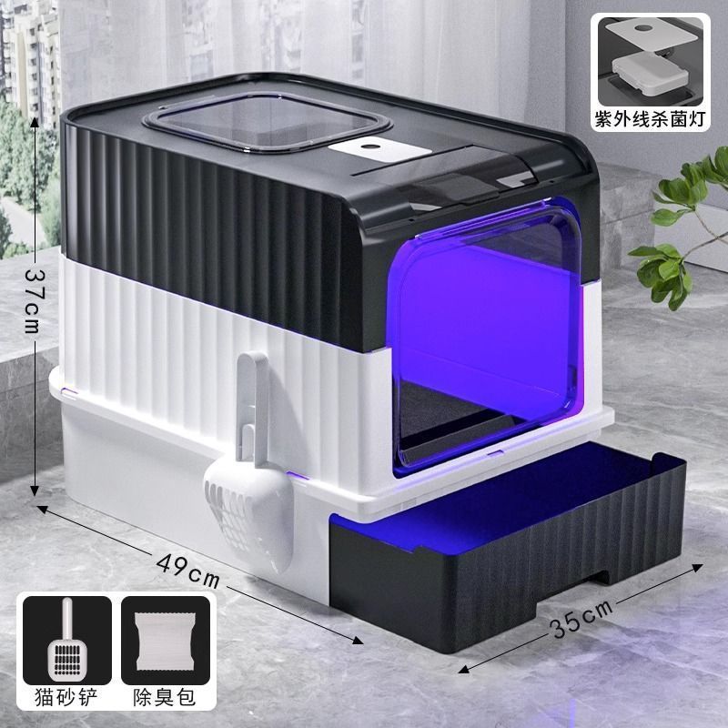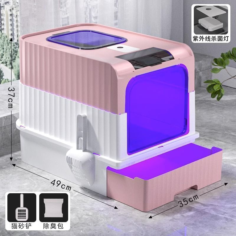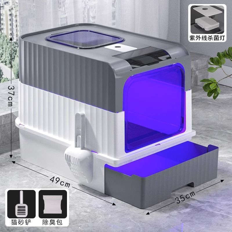Ящик для кошачьего туалета УФ-дезодорация и стерилизация выдвижного типа, полностью закрытая верхняя крышка, дезодорант и брызгозащищенный кошачий туалет, автоматическая очистка