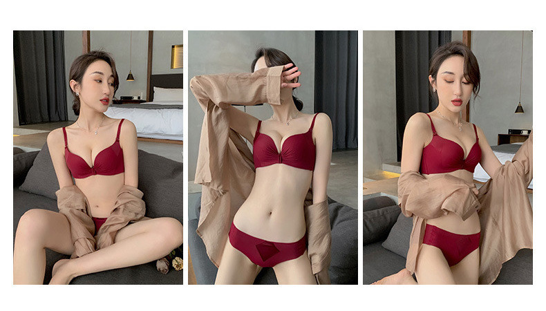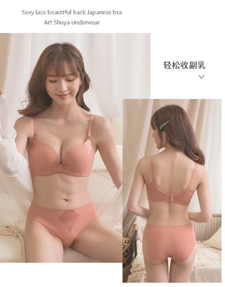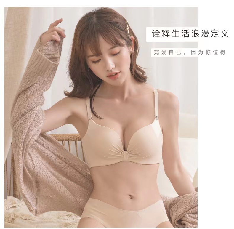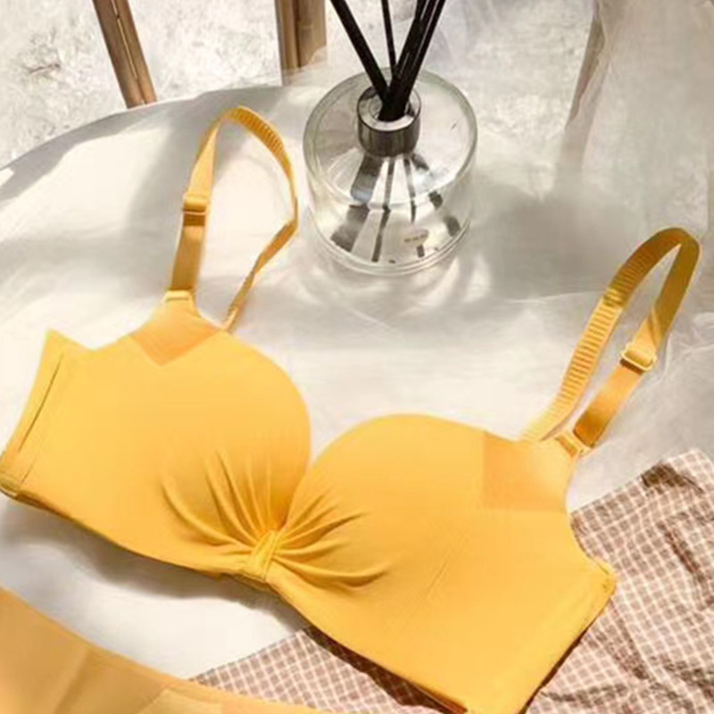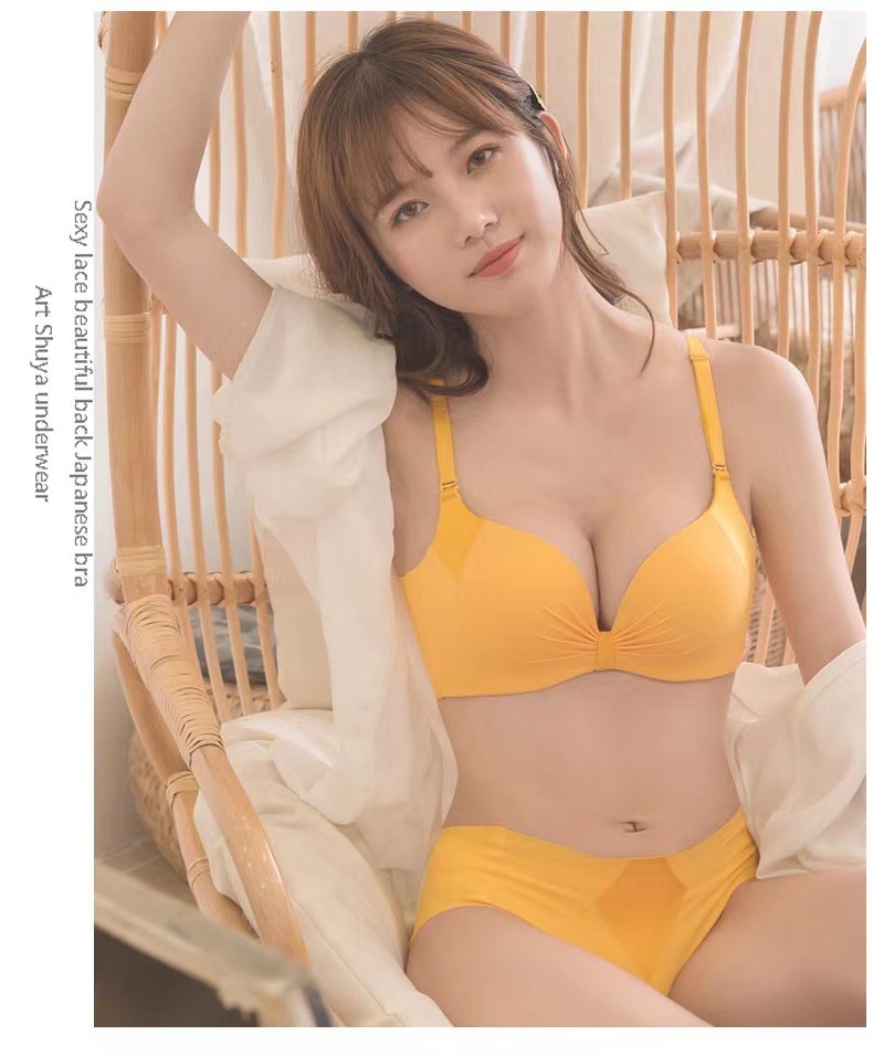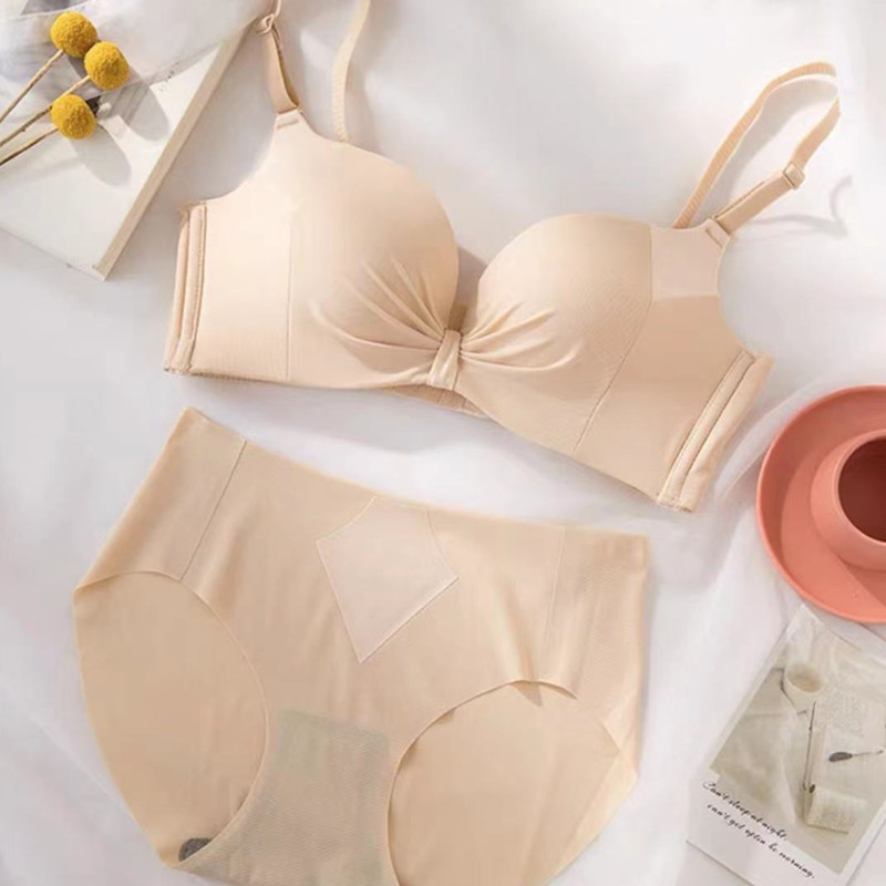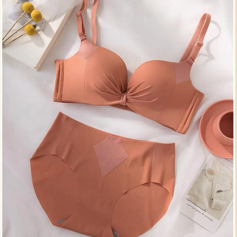 Популярный 098 глянцевый плиссированный мягкий приятный для кожи хлопок дышащий комплект нижнего белья без ободков с небольшим бюстгальтером пуш-ап