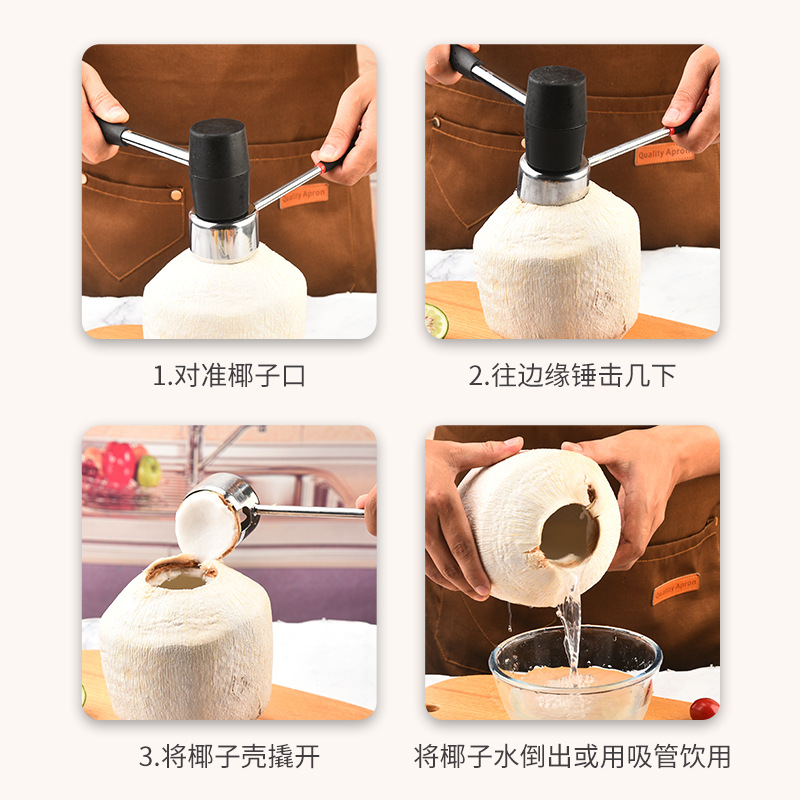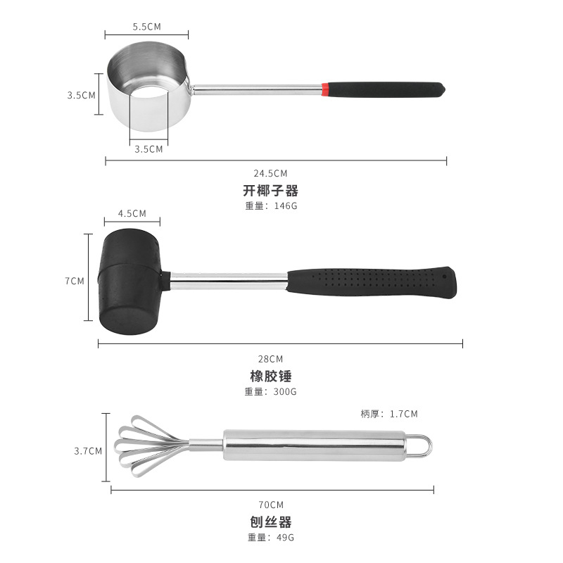 Ручной открывалка для кокосов, набор из трех предметов, открывалка для кокосовой скорлупы из нержавеющей стали, нож для кокоса, зеленый открывалка для кокоса, оптовая продажа