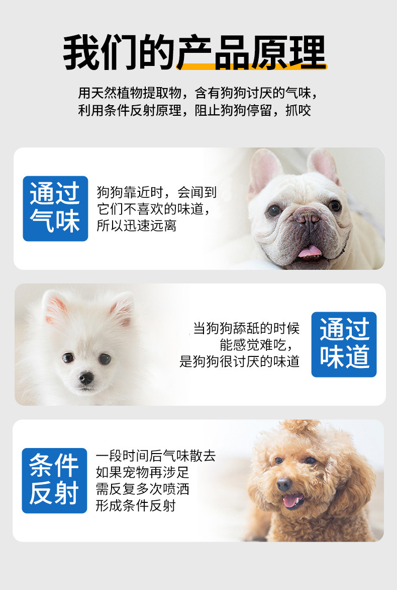 Репеллент для собак, спрей против укусов собак, автомобильные шины для предотвращения мочеиспускания и какания собак, специальный долговечный репеллент для собак в запретных зонах на открытом воздухе, поддержка дропшиппинга, горячие продажи Tmall, Taobao,