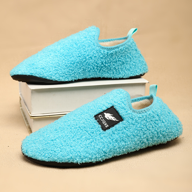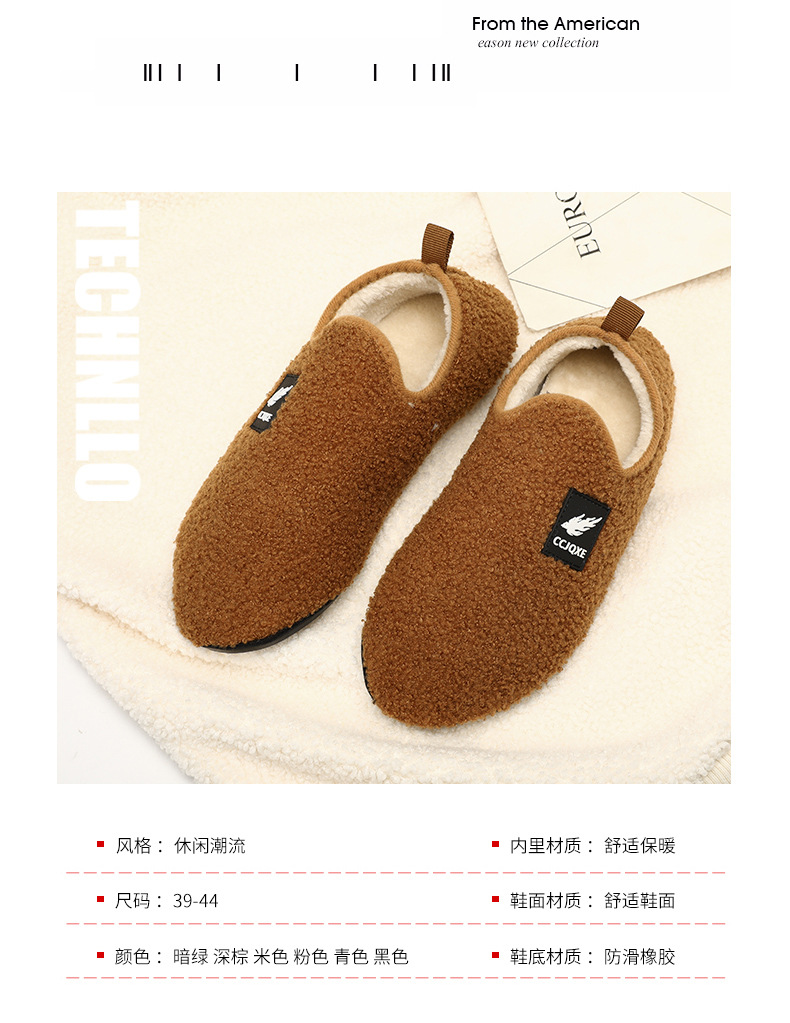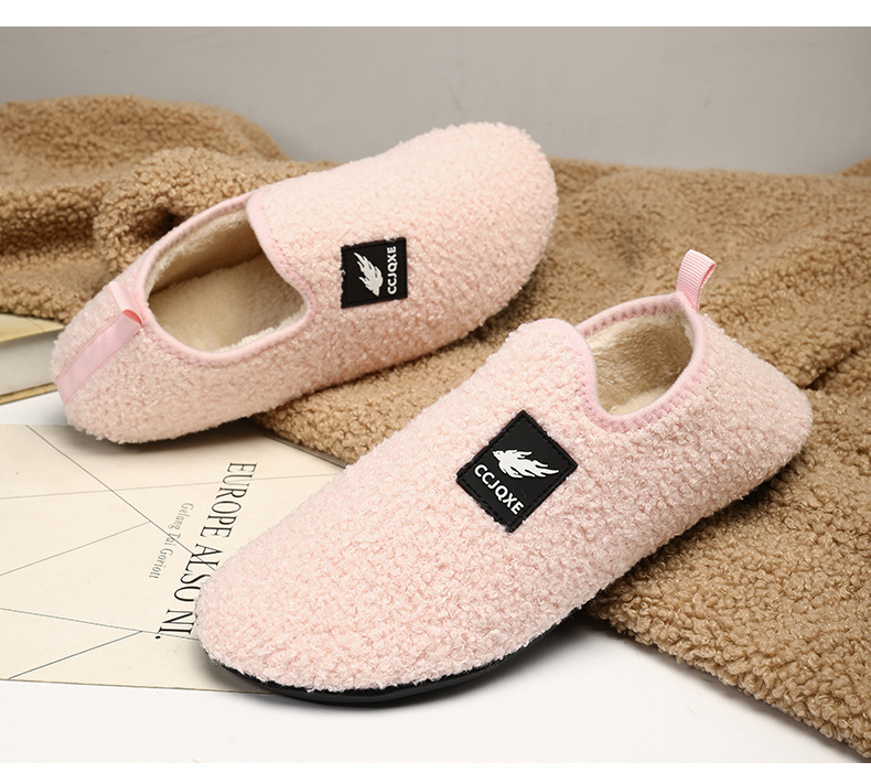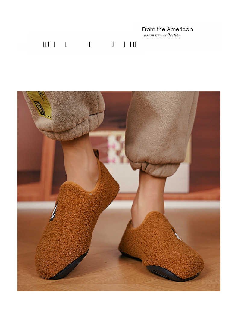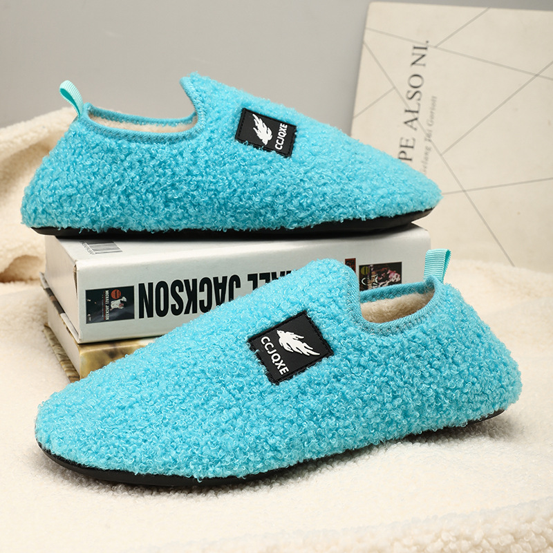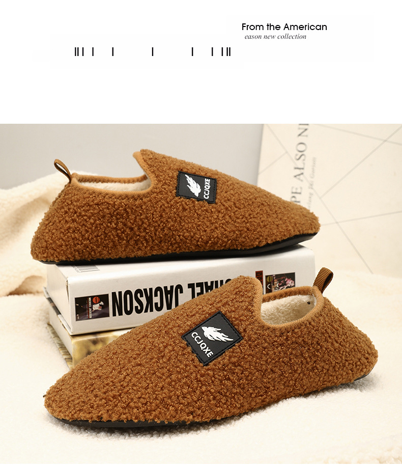 Домашняя хлопчатобумажная обувь для женщин, домашние плюшевые тапочки для зимнего тепла, мужские парные уличные водонепроницаемые хлопчатобумажные тапочки с закрытой спинкой.