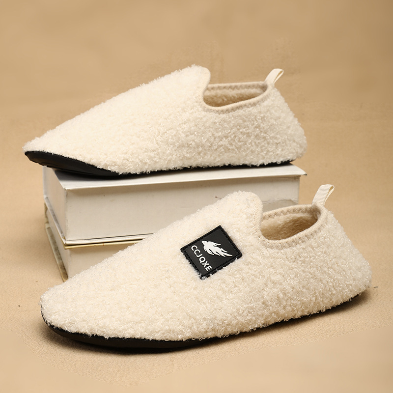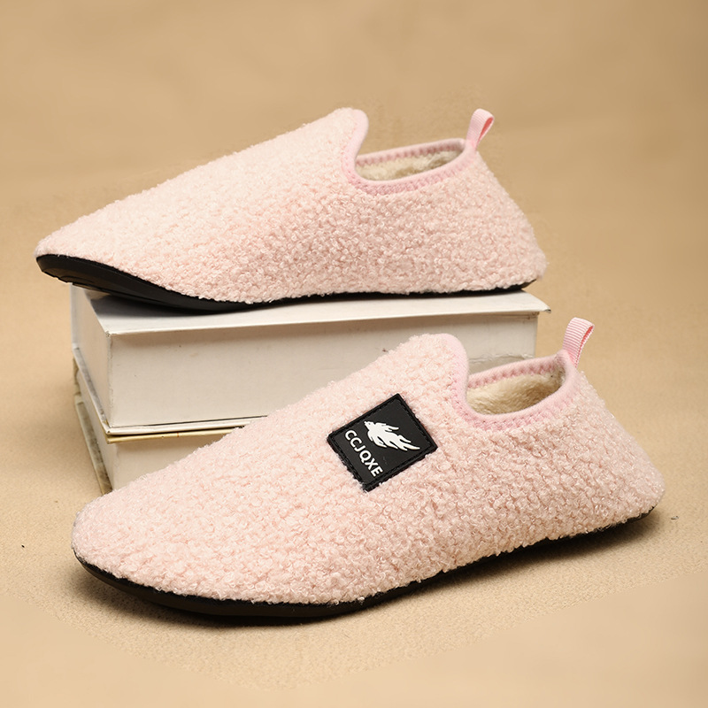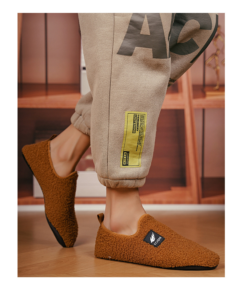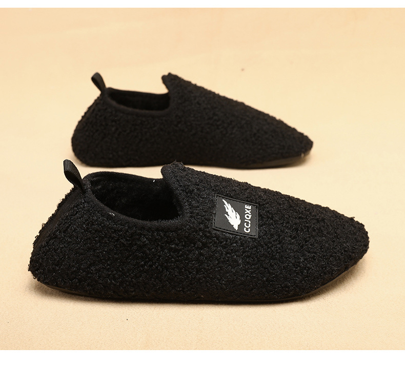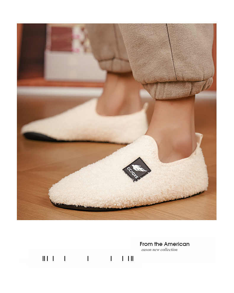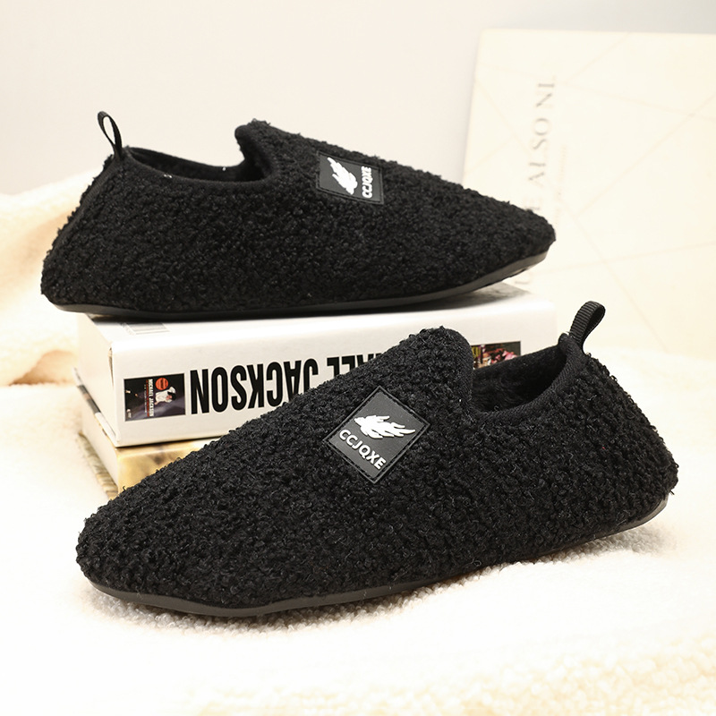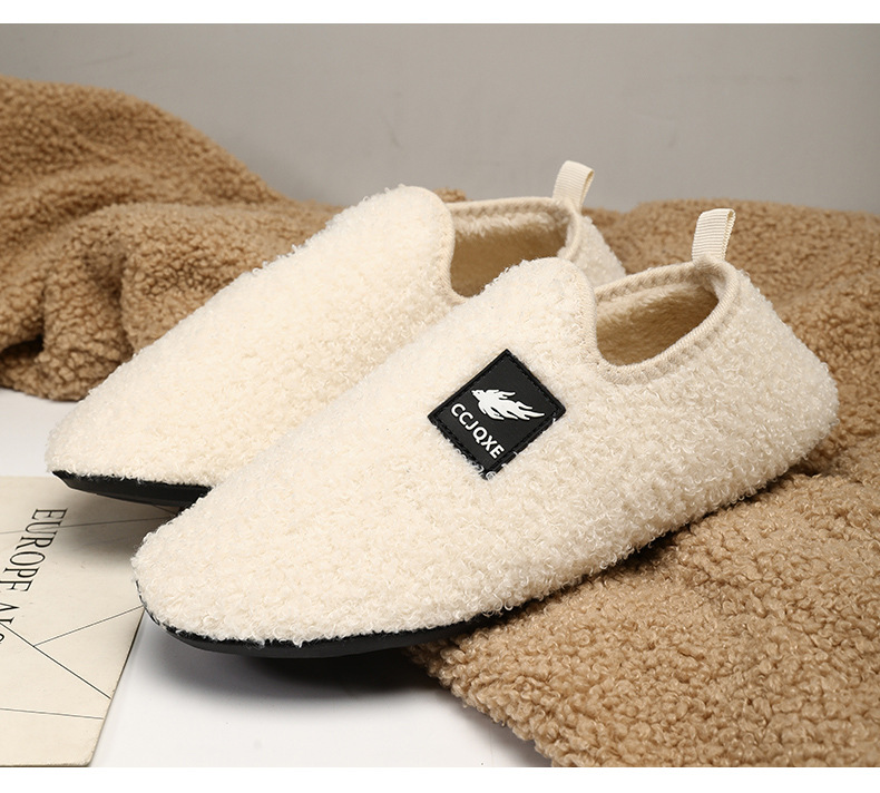 Домашняя хлопчатобумажная обувь для женщин, домашние плюшевые тапочки для зимнего тепла, мужские парные уличные водонепроницаемые хлопчатобумажные тапочки с закрытой спинкой.