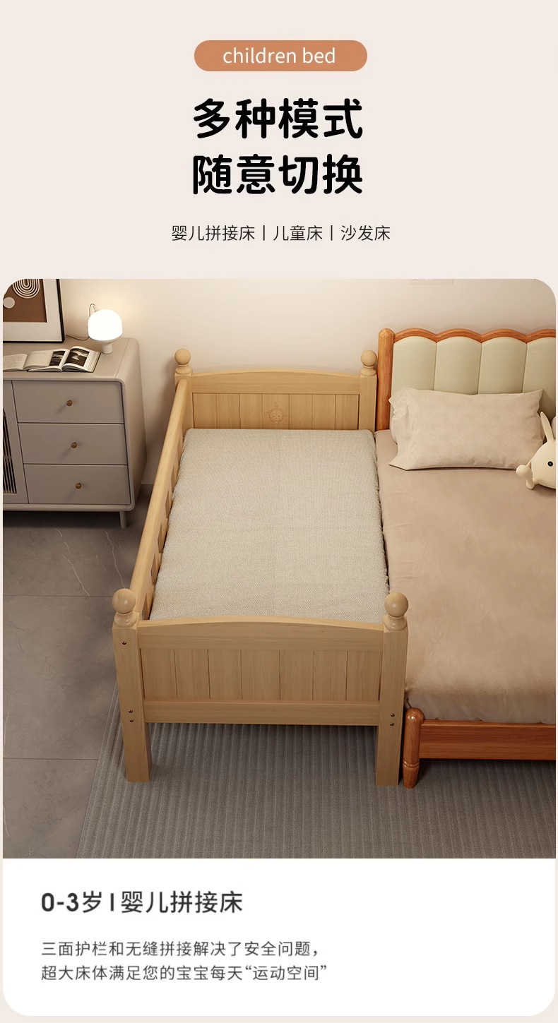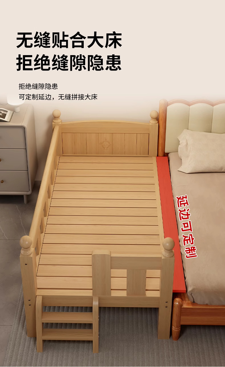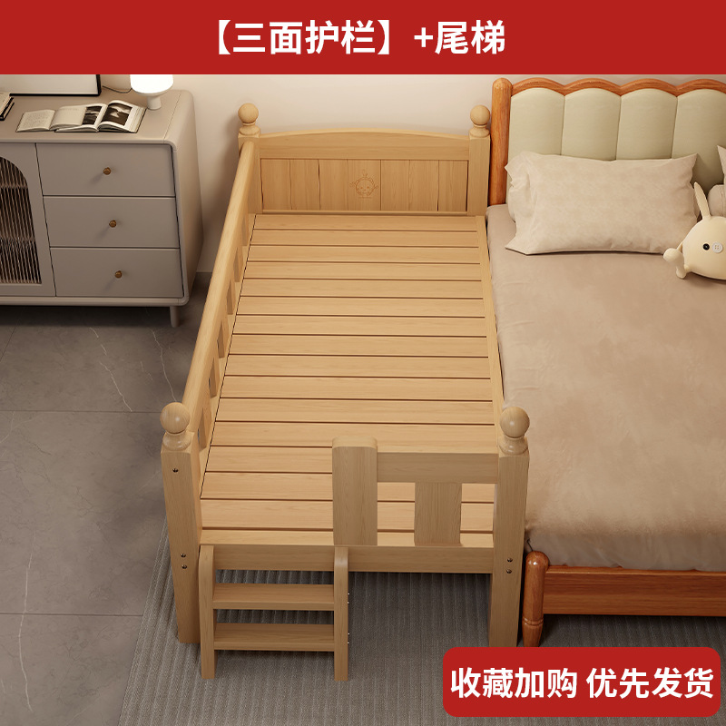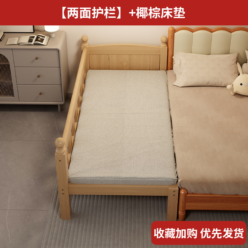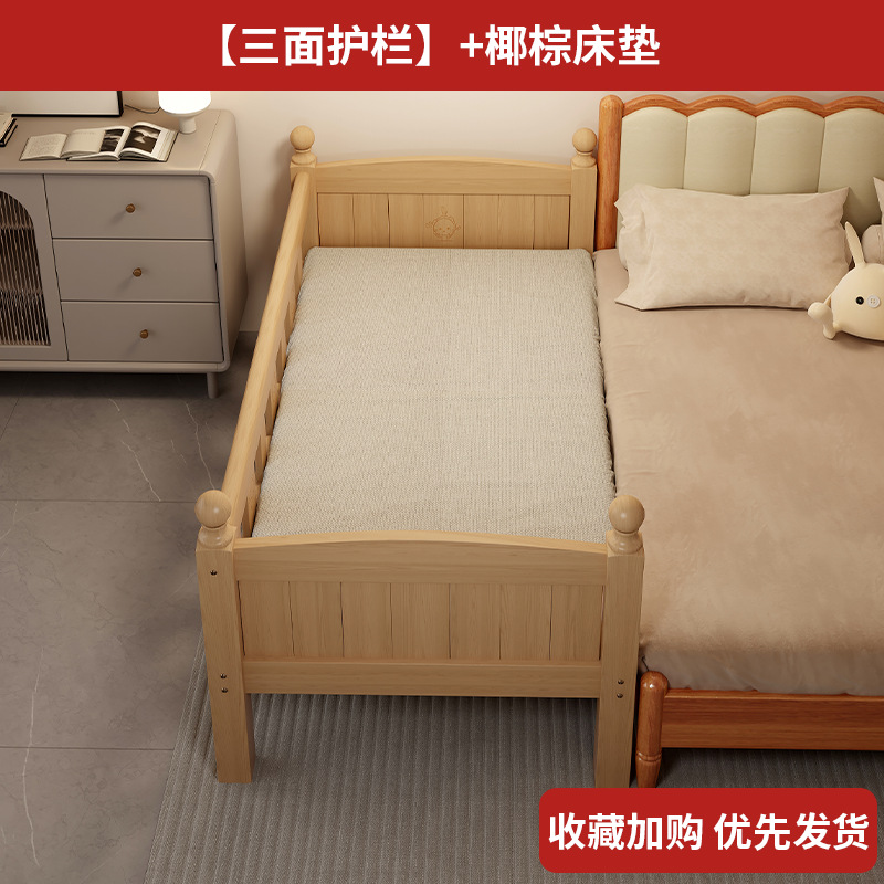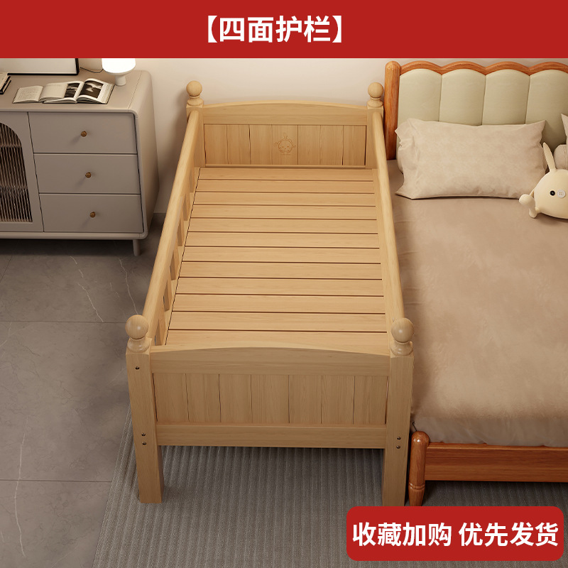 Детская кровать с ограждением, неокрашенная, кровать из цельного дерева, детская кроватка, бесшовное плоское соединение с большой кроватью, кровать с расширенным расширенным краем.