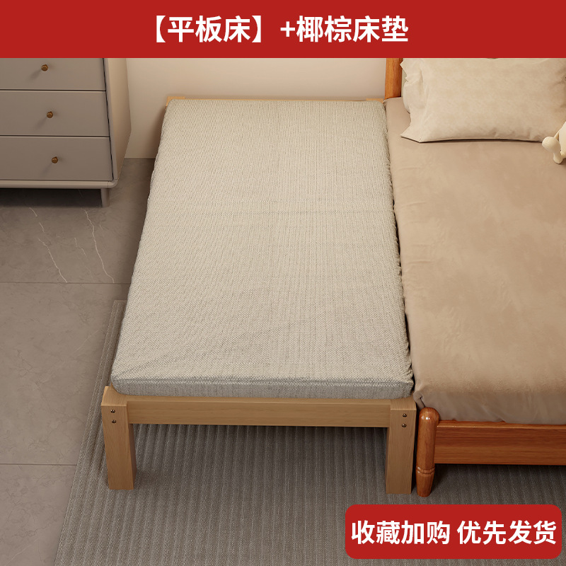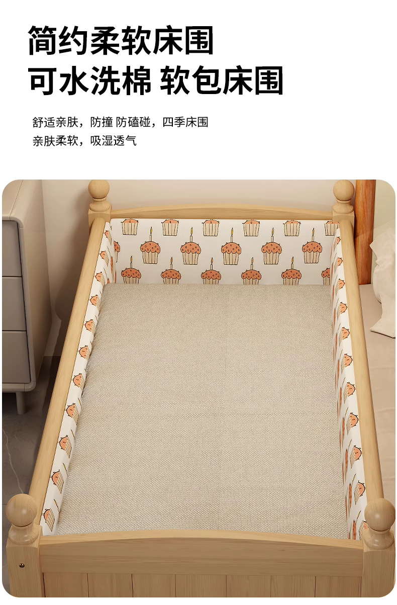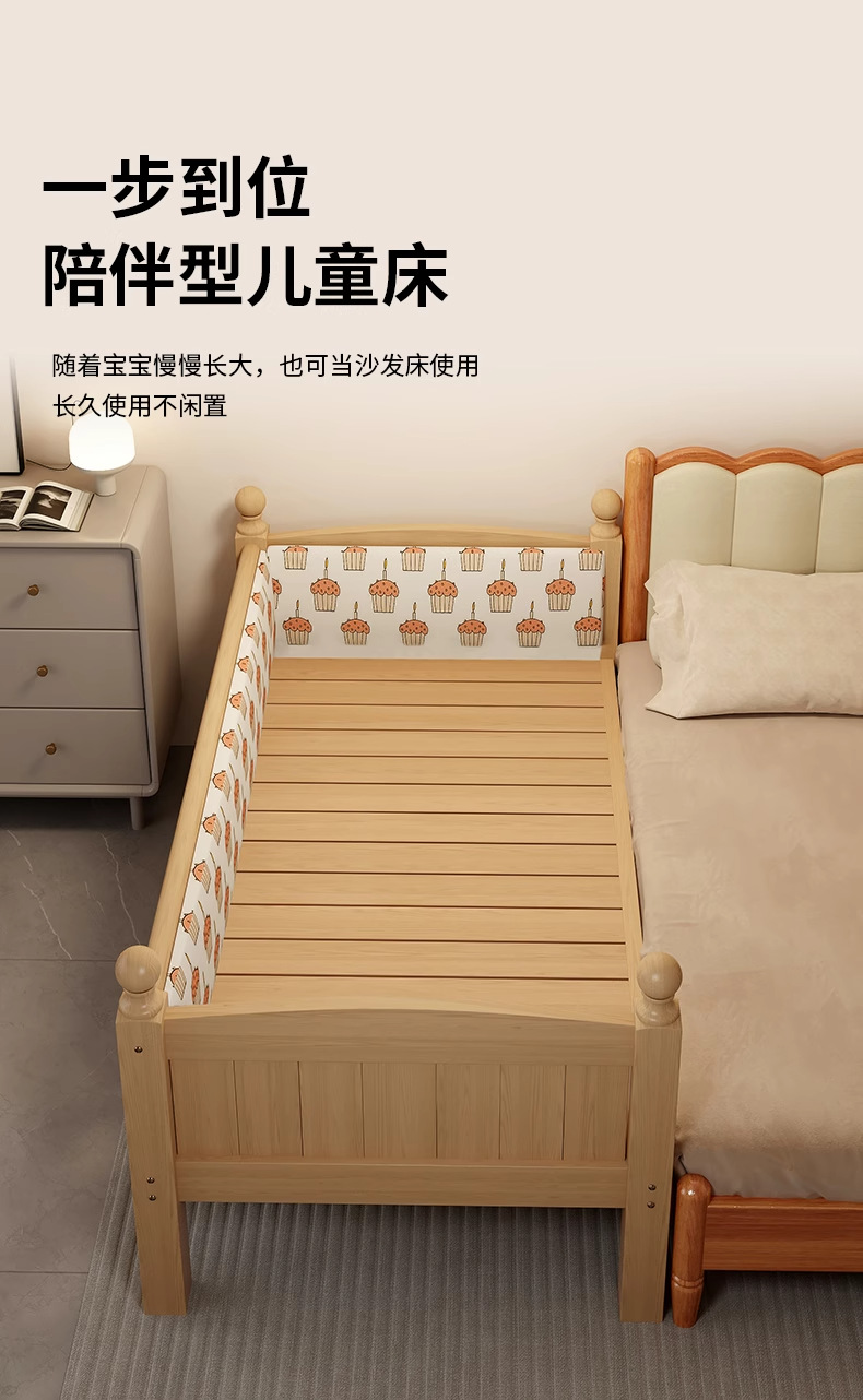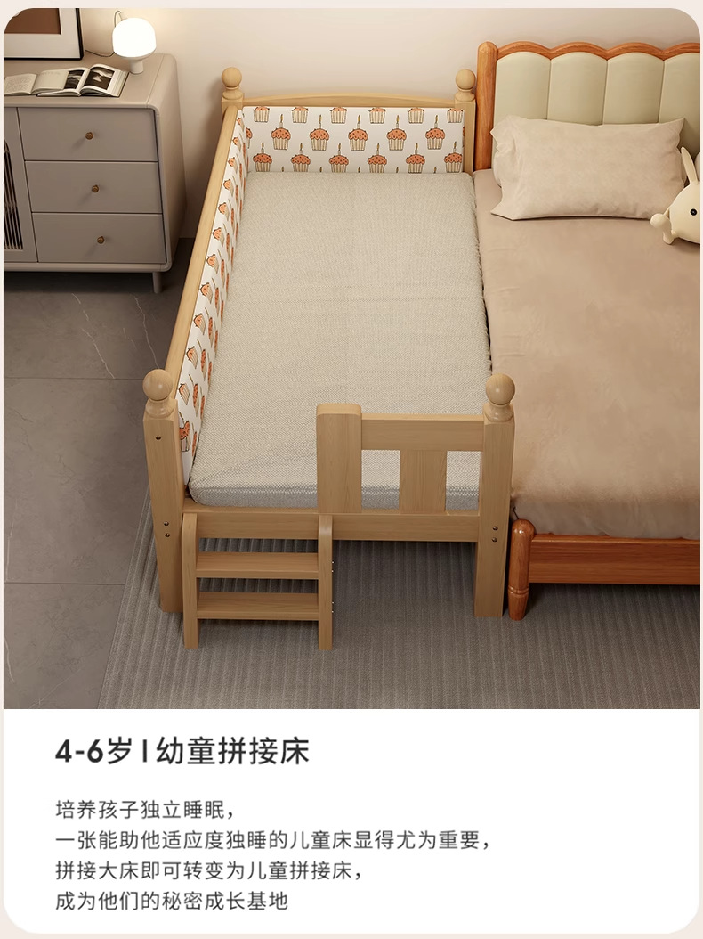 Детская кровать с ограждением, неокрашенная, кровать из цельного дерева, детская кроватка, бесшовное плоское соединение с большой кроватью, кровать с расширенным расширенным краем.