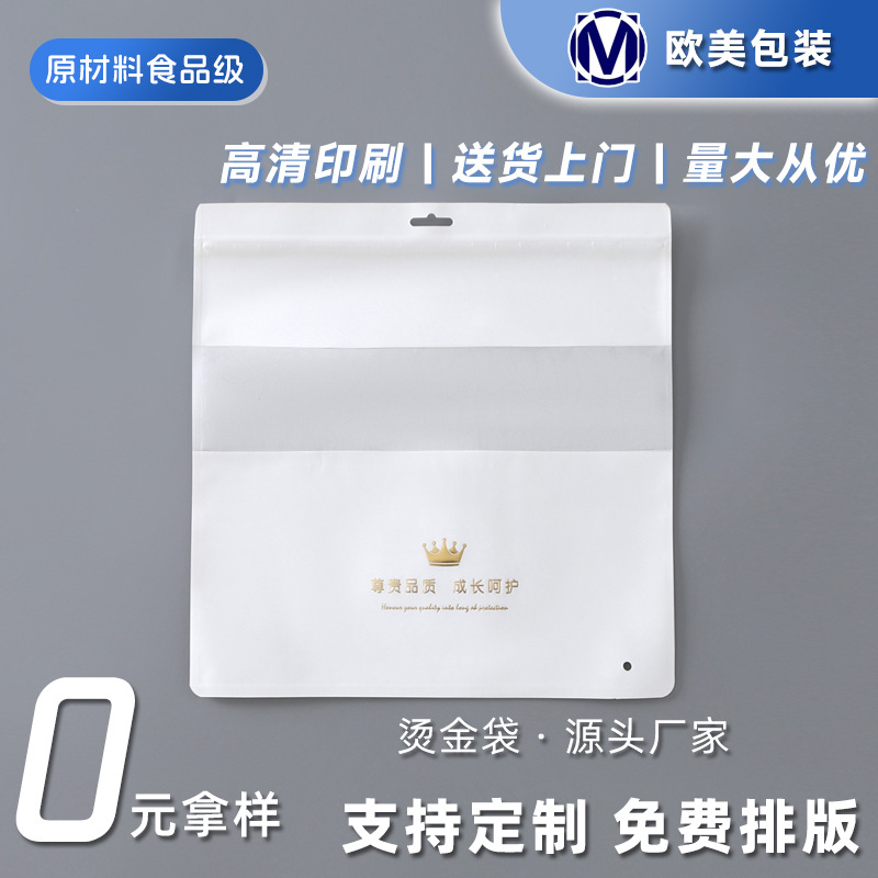 Матовый белый крафт-пакет с zip-замком, самостоящий крафт-пакет с окном и узором, подвесная упаковка с горячим тиснением
