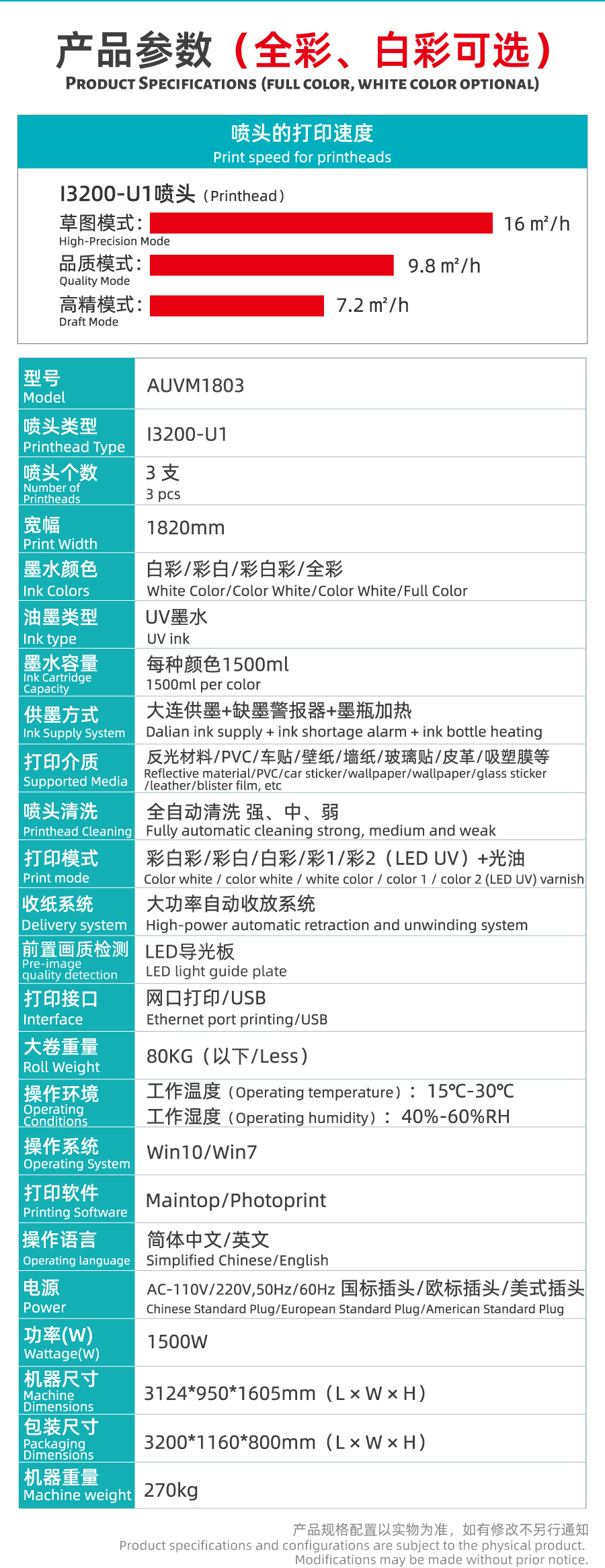 1.8m УФ-цвет белый, три головки I3200; депозит
