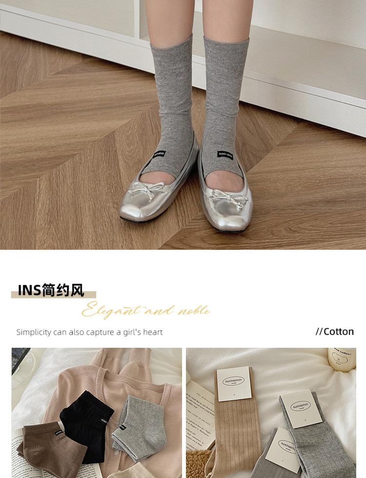 Черные носки Suxinaimin, весенне-летние тонкие кружевные утягивающие носки в рубчик, женские носки средней длины до середины трубки