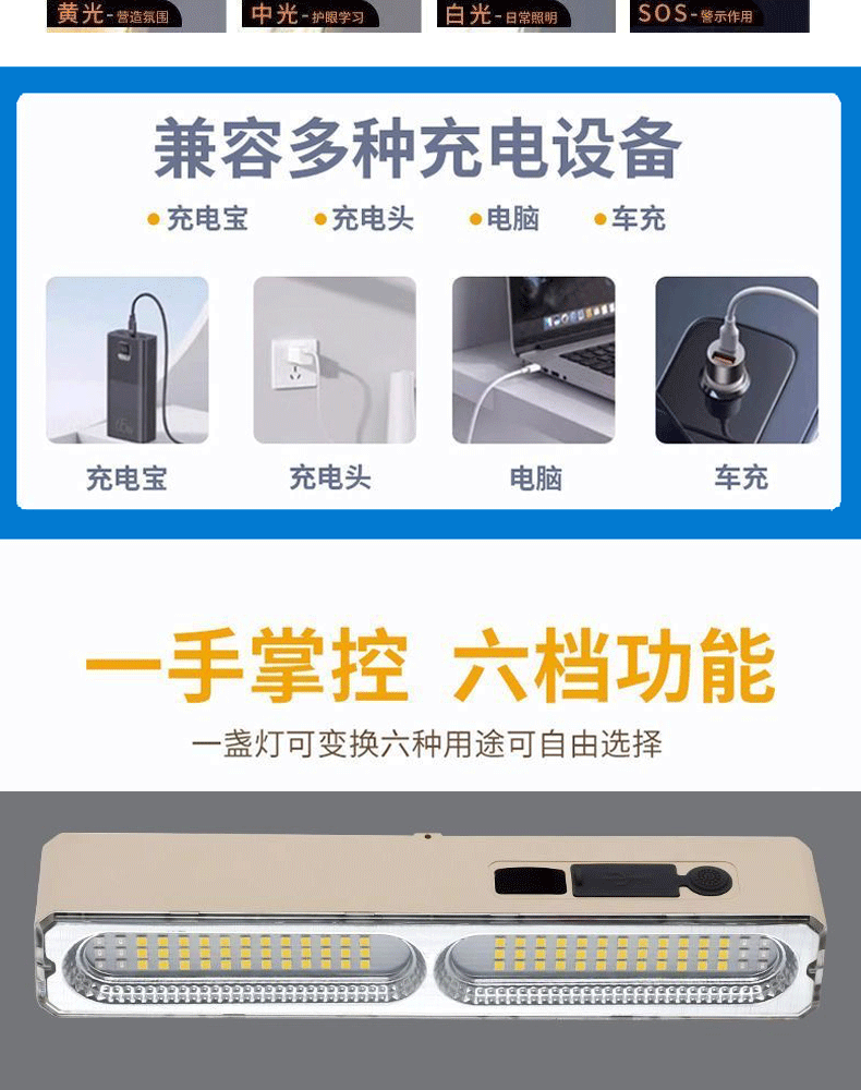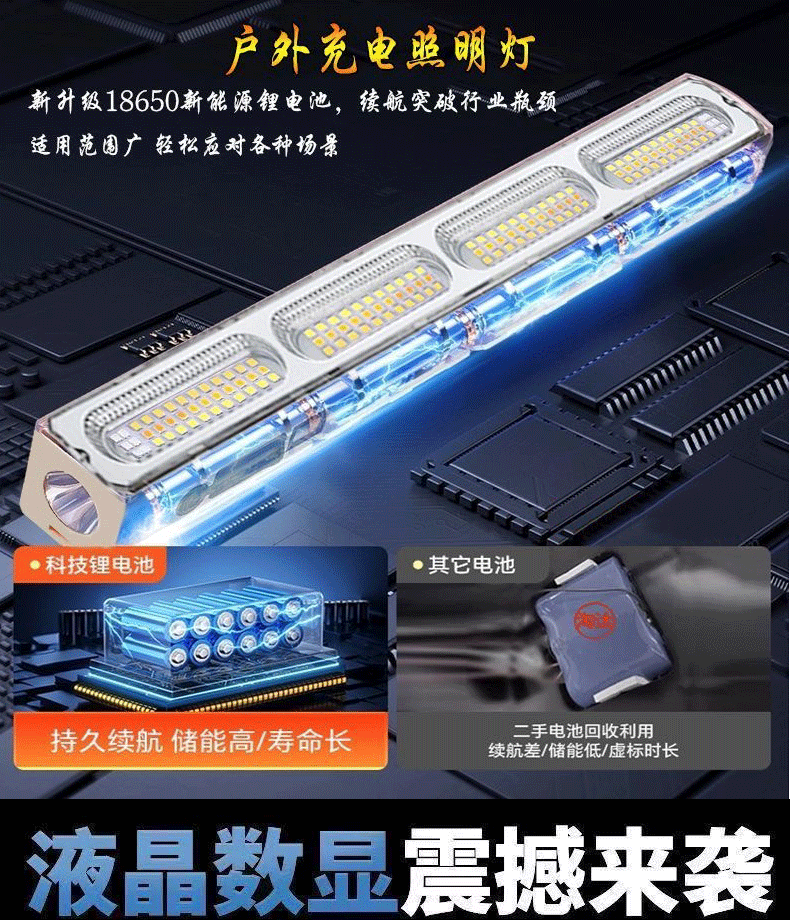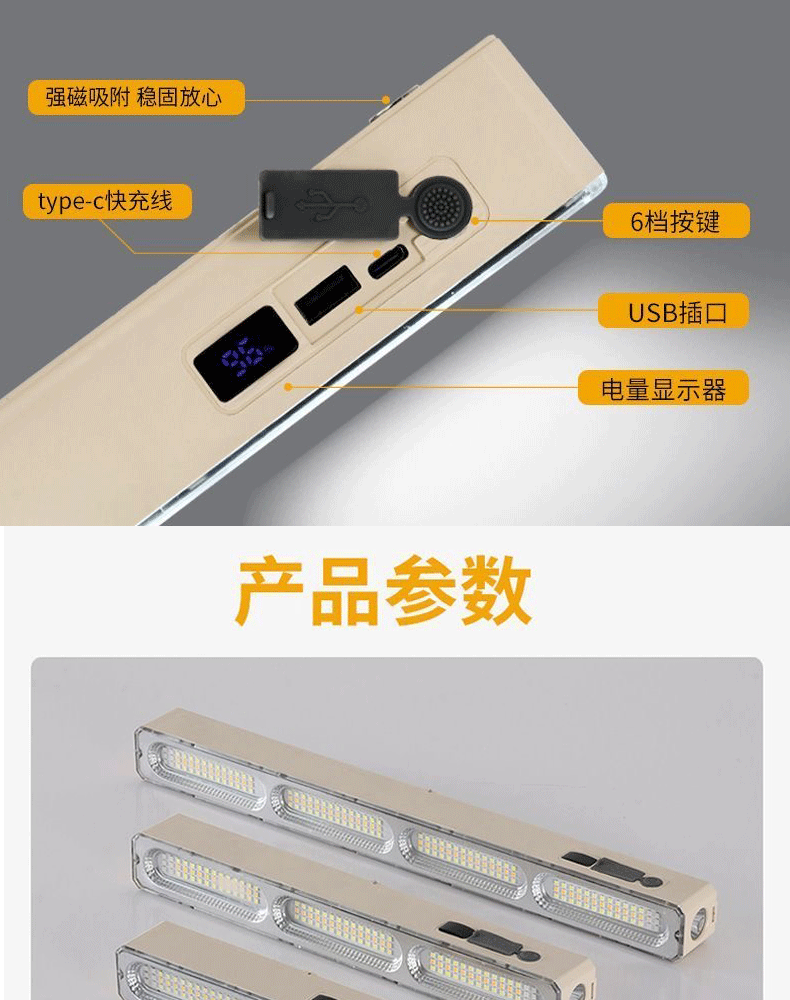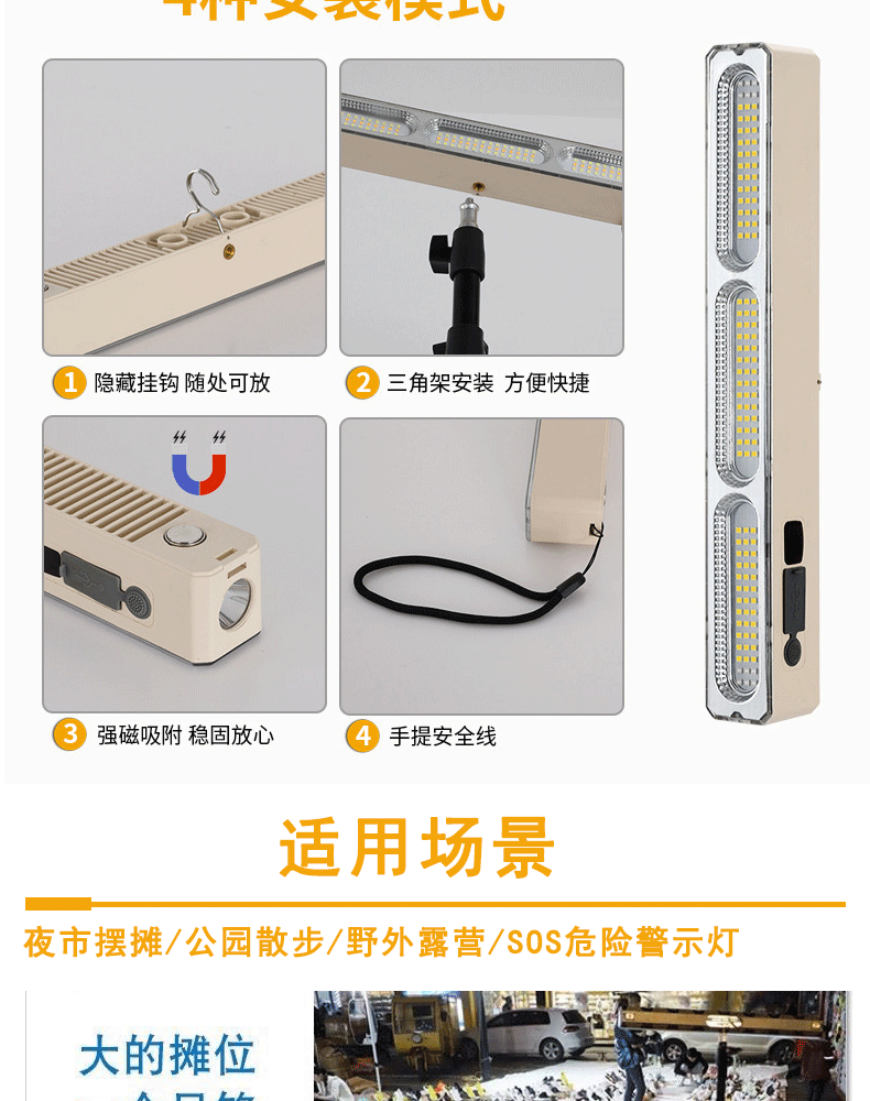 Новый светодиодный многофункциональный магнитный прожектор, уличный ларек, ночной рынок, перезаряжаемое освещение, USB аварийный светильник, трубка для кемпинга
