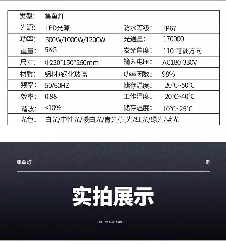 Наружный водонепроницаемый светодиодный светильник для привлечения рыбы и сбора рыбы на лодке, синий свет 4000K, морская рыбалка, лампа для привлечения рыбы и кальмара