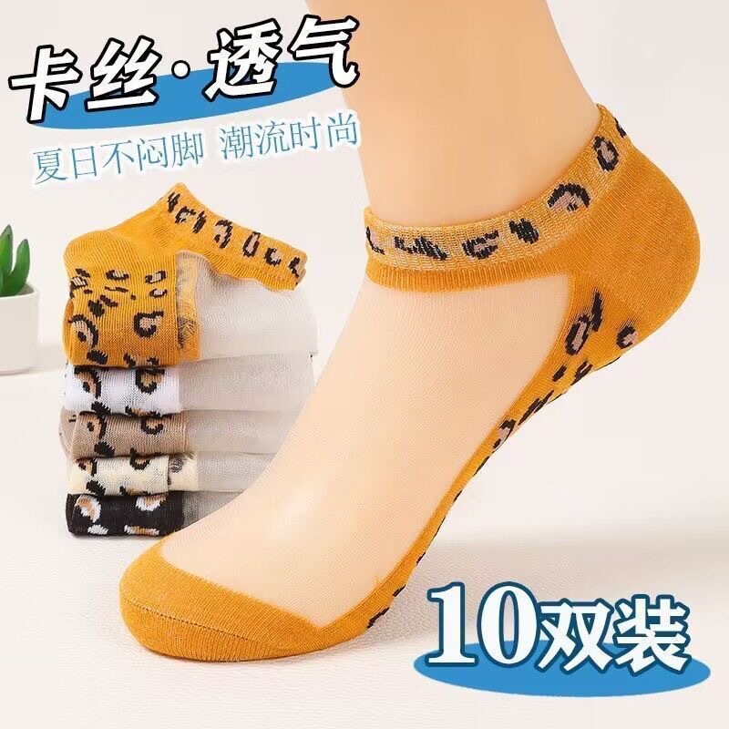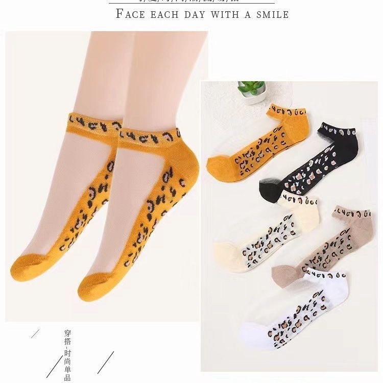 Женские впитывающие пот летние прозрачные сетчатые шелковые носки-лодочки с леопардовым принтом, тонкие кристаллические шелковые короткие чулки с низким вырезом, женские носки
