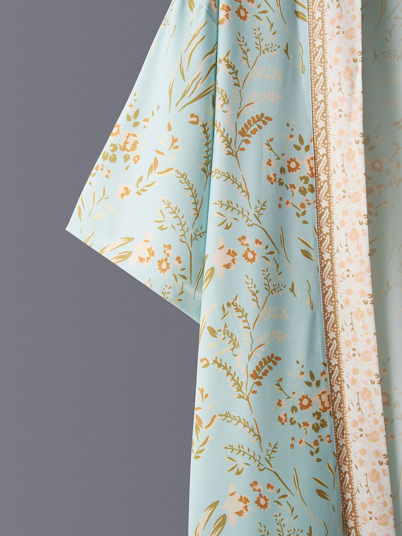 Весенне-летняя женская одежда в европейском и американском стиле: элегантный ретро-кардиган-кимоно средней длины с перьями и цветочным принтом в стиле бохо.