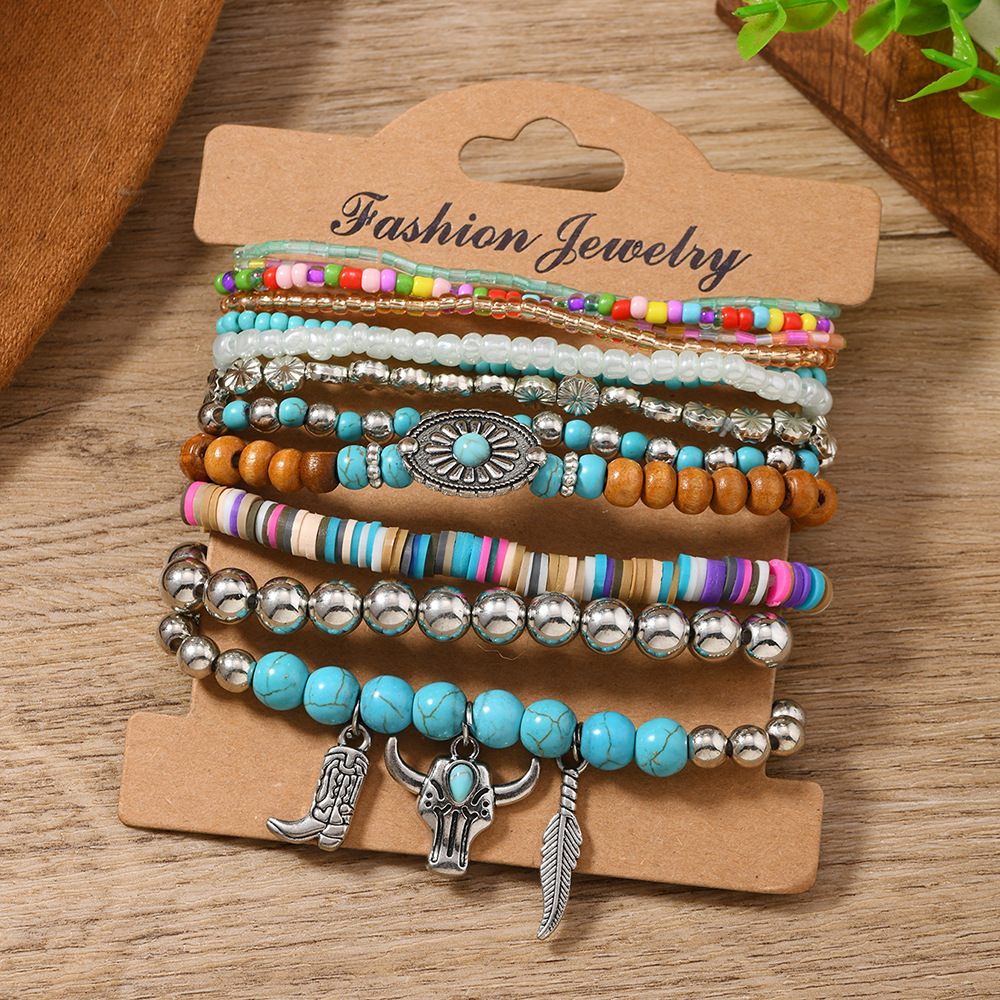 Трансграничная поддержка маркировки и доставки-TEMU Xiyin трансграничная горячая распродажа аксессуаров из цинкового сплава, браслет из 6 предметов, браслет из 11 предметов
