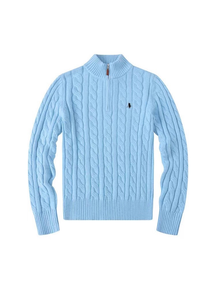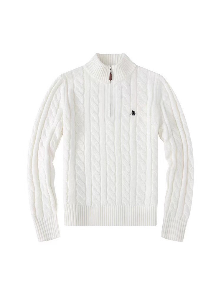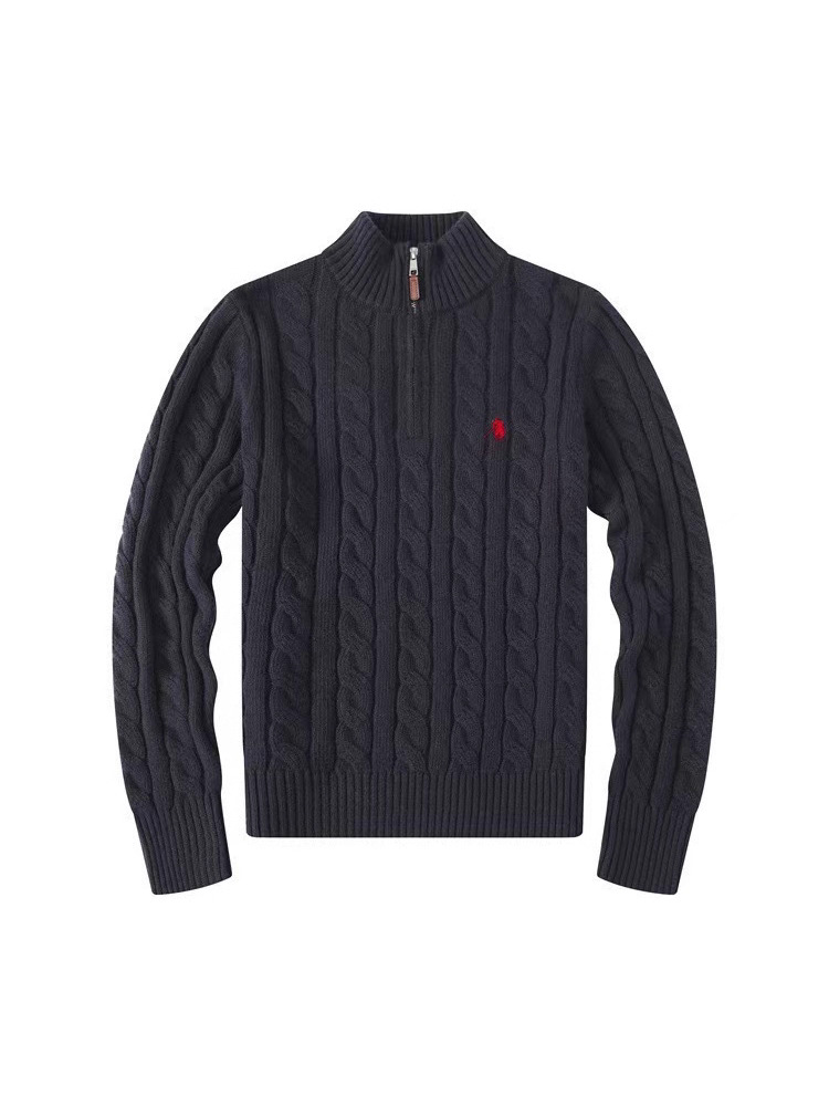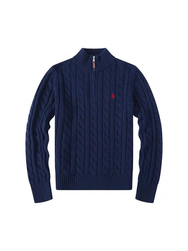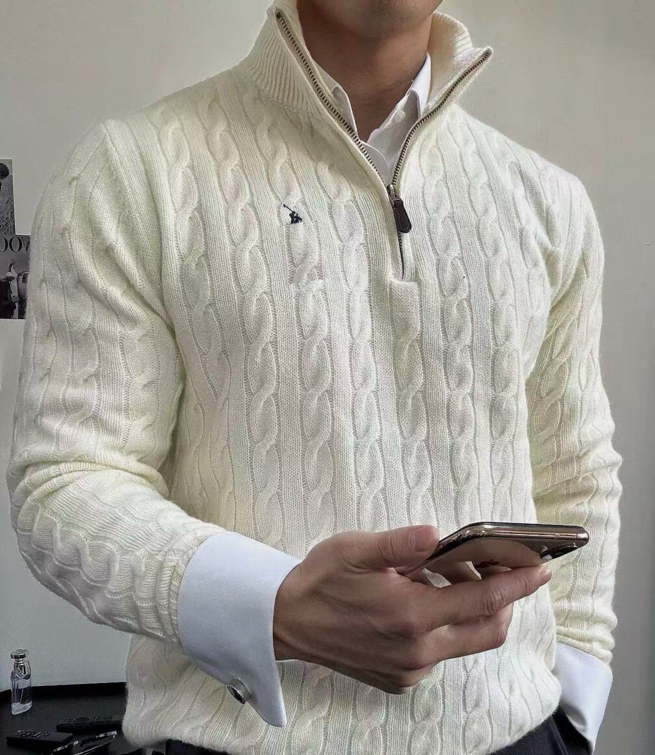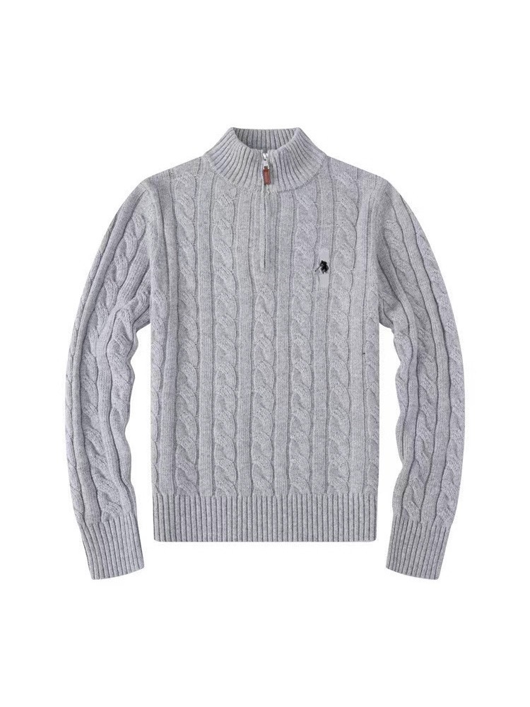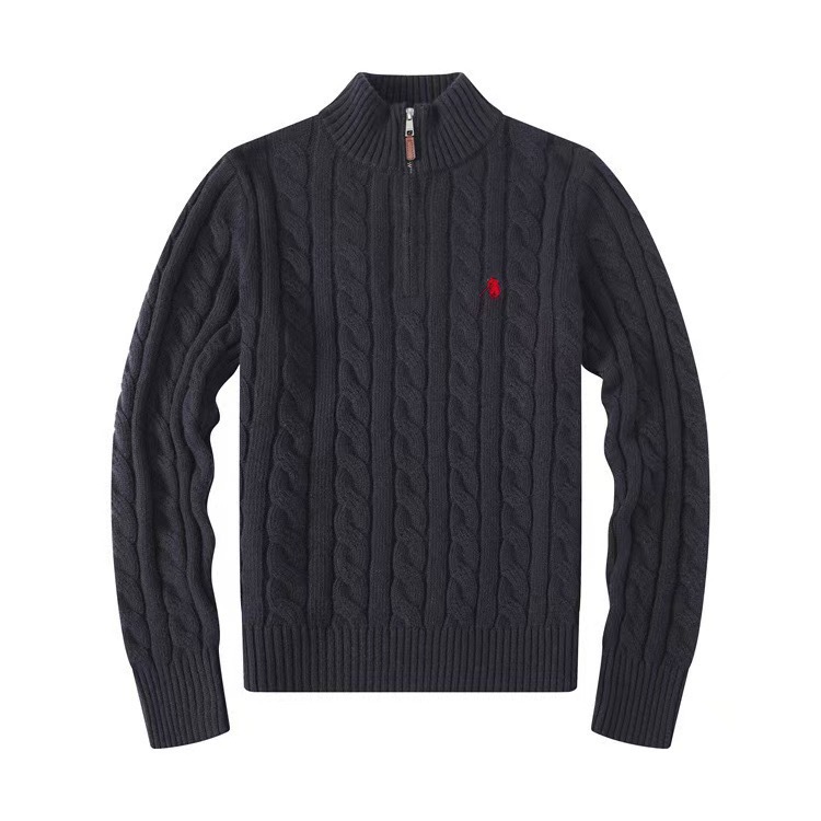Мужской шерстяной свитер на осень и зиму с логотипом пони, на молнии до середины груди, с толстой вышивкой и узором «косичка», свитер-поло, крупногабаритный трикотаж