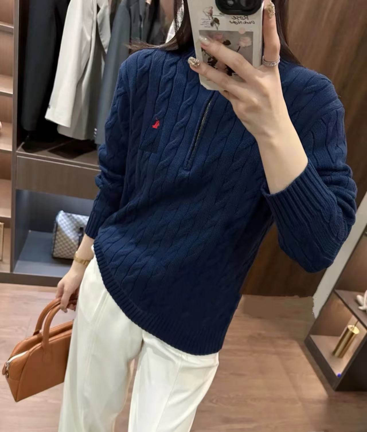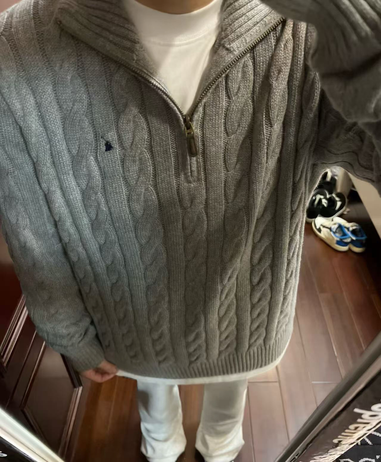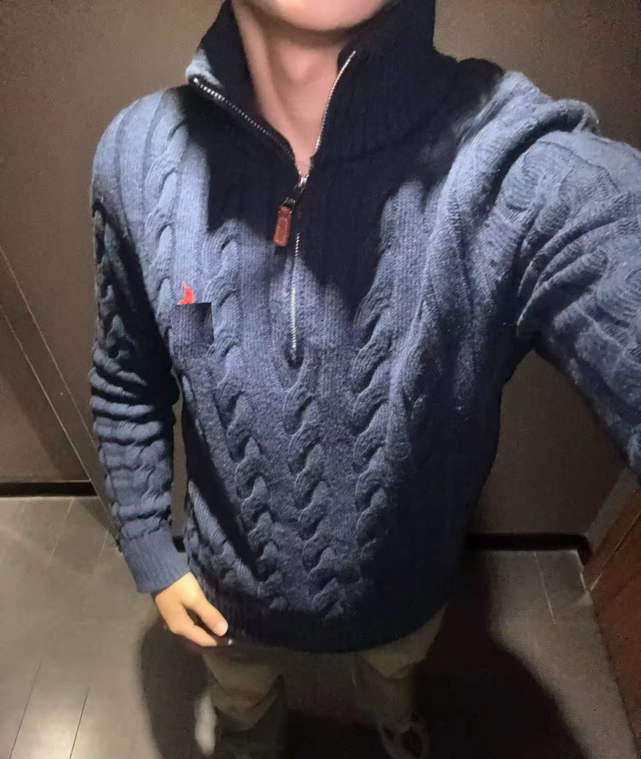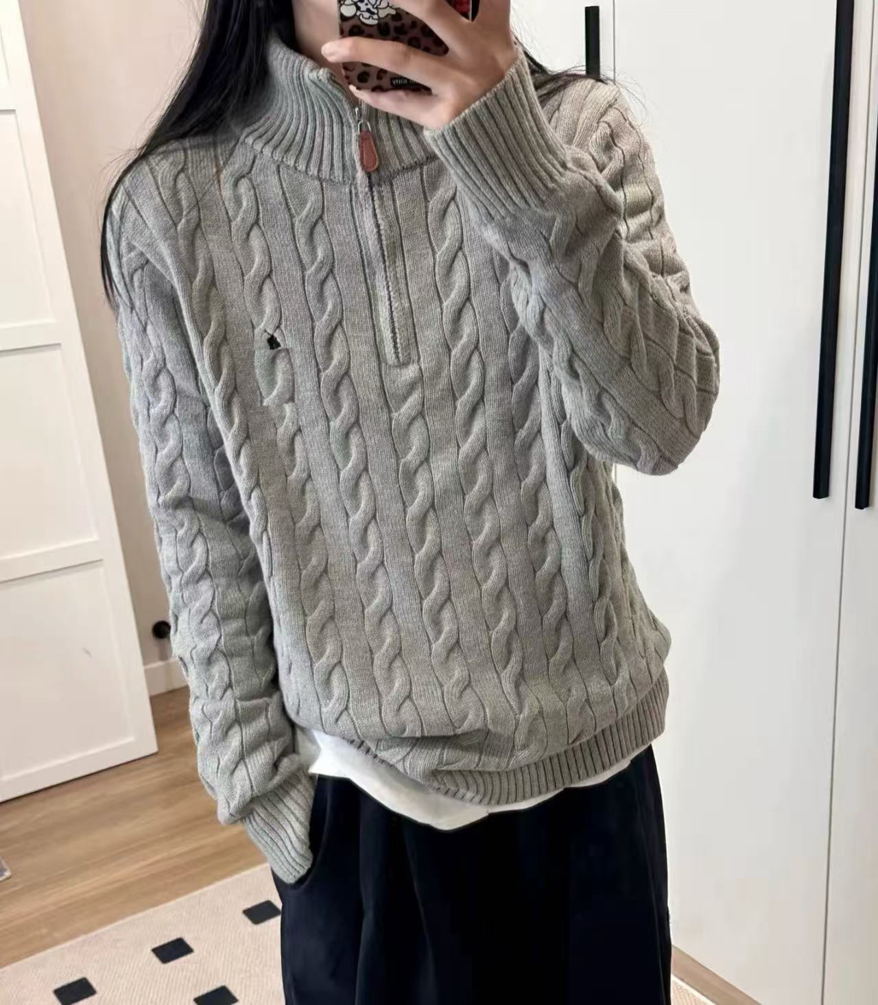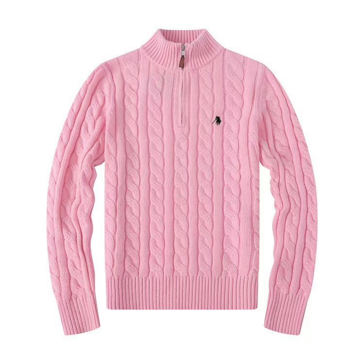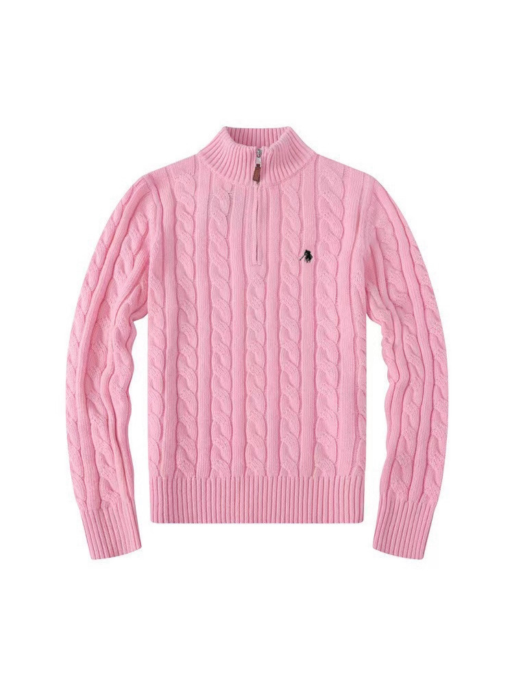 Мужской шерстяной свитер на осень и зиму с логотипом пони, на молнии до середины груди, с толстой вышивкой и узором «косичка», свитер-поло, крупногабаритный трикотаж