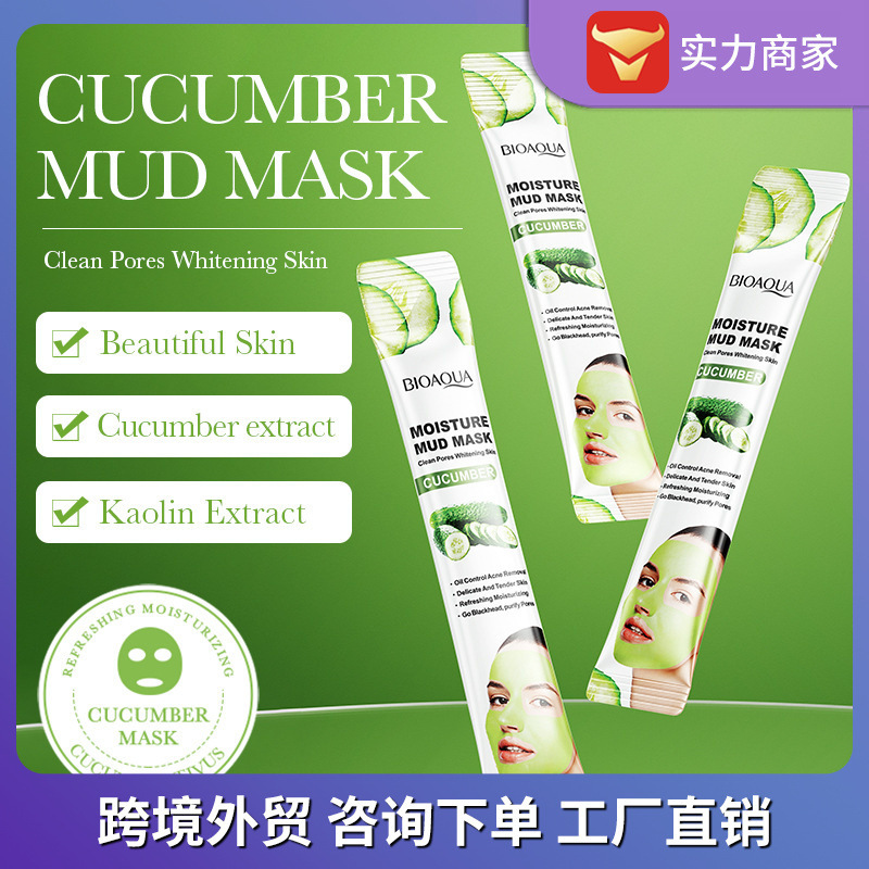 Увлажняющая грязевая маска BIOAOUA с огурцом для сияния и омоложения кожи, очищающая, оптом для внешней торговли
