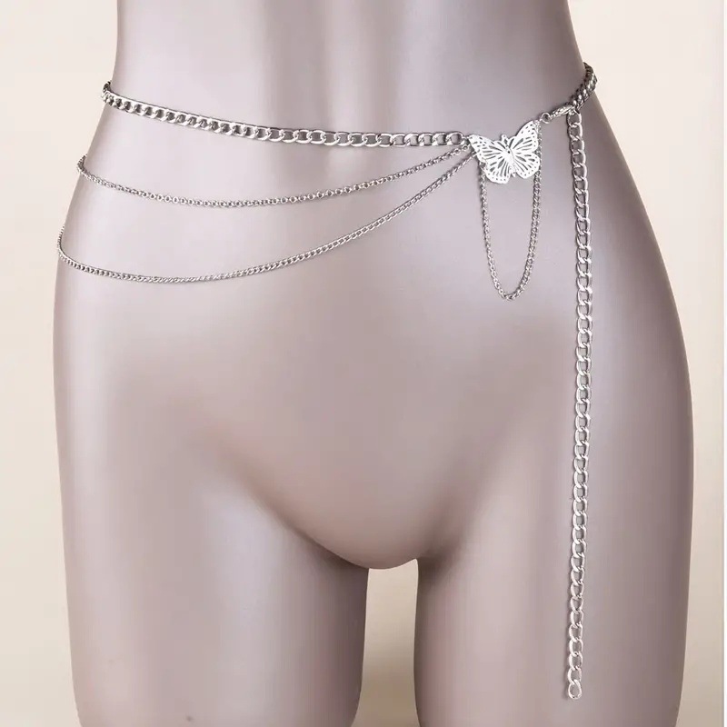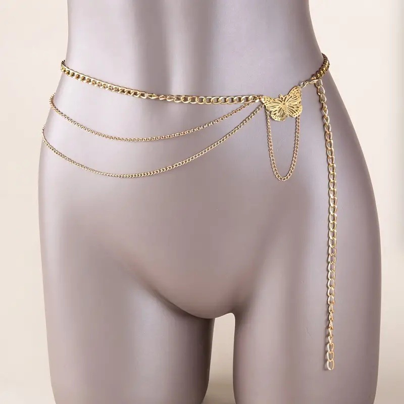 Европейские и американские трансграничные украшения, модная многослойная женская поясная цепочка с металлической цепочкой и кисточкой-бабочкой, персонализированная цепочка для тела в стиле ретро