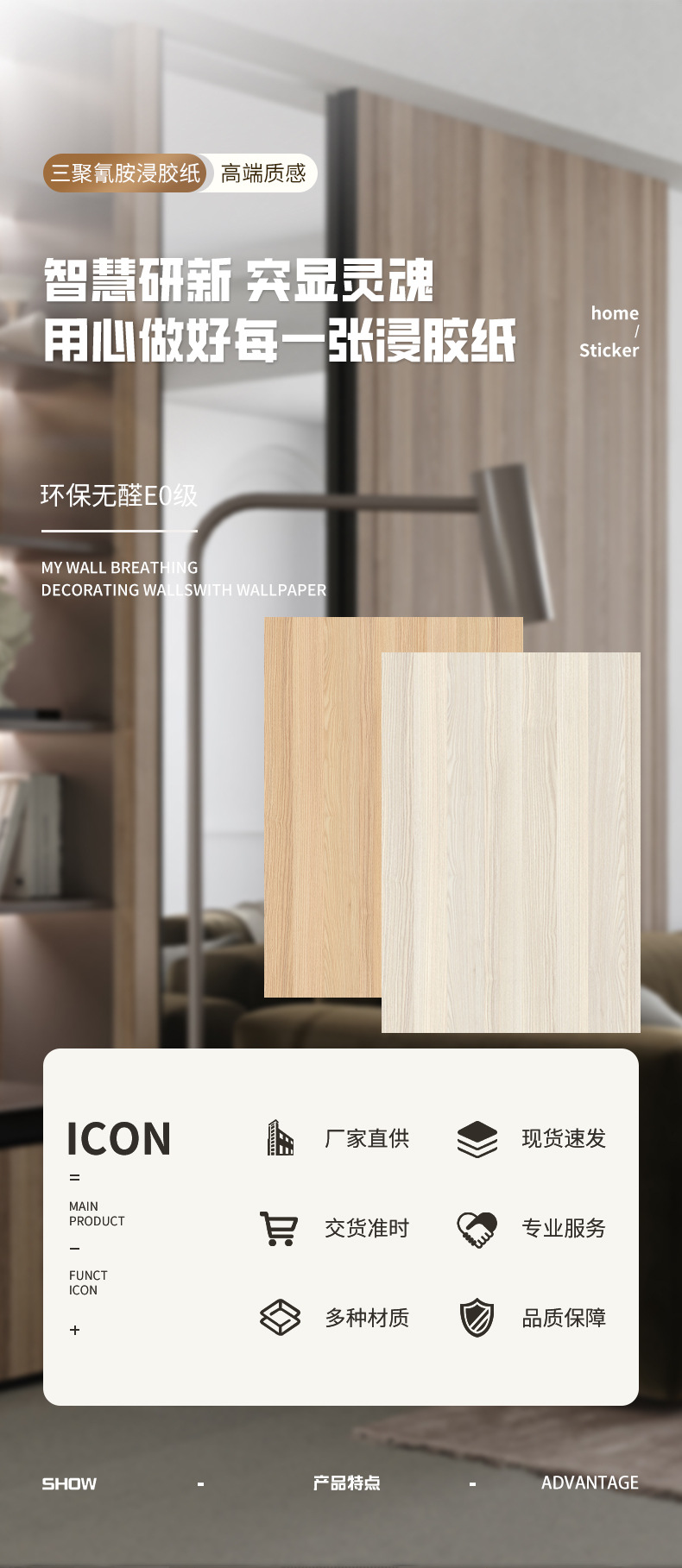 Меламиновая пропитанная бумажная доска, прессованная шпоновая бумага, имитация древесины ясеня, мебельная декоративная бумага, антибактериальная и влагостойкая.